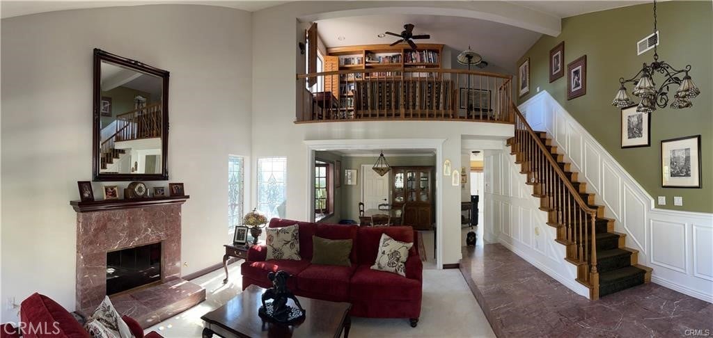 VIEW VIEW VIEW Welcome to this stunning two story view home located on a quiet cul-de-sac in a welcoming community with 4-bedroom, 3-bathroom a versatile den or library which is ideal space for a home office or studio, formal dining room which is connected to the kitchen, spacious 3-car garage, living room and family room both designed for comfort and entertaining each room includes its own fireplace ,this home features a well designed kitchen for cooking and gathering which opens to family room and dining room. Enjoy breathtaking views from your own backyard oasis with a heated pool & spa and beautifully landscaped space ideal for entertaining and year round enjoyment, this home offers an exceptional lifestyle and a perfect blend of comfort and luxury in perfect location. A true must see