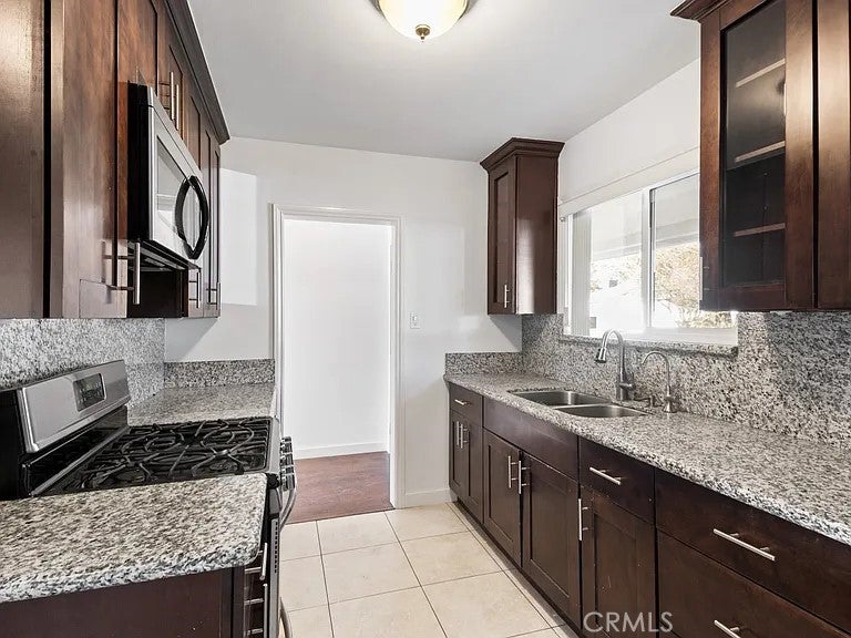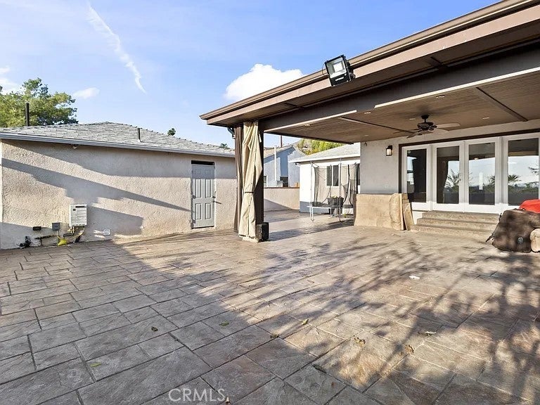 Welcome to this inviting 3-bedroom, 1.5-bathroom home offering approximately 1,470 square feet of comfortable living space. Designed with both style and functionality in mind, this residence features laminate flooring, high ceilings, central air and heat, and energy-efficient double-pane windows throughout. The expansive living room showcases a striking beamed ceiling, a decorative fireplace, and sliding double doors that lead to a covered patio—perfect for seamless indoor-outdoor living. Adjacent to the living space is a dedicated dining area and a well-appointed kitchen complete with granite countertops, stainless steel appliances, and ample cabinetry. All three bedrooms are generously sized and offer plenty of closet space. The home also provides abundant storage throughout. Step outside to a private backyard retreat featuring a covered patio ideal for outdoor dining, entertaining, or relaxing while enjoying the surrounding views. A detached two-car garage adds convenience and additional storage. Ideally located just above Glenoaks Boulevard with easy access to the 5 Freeway, this home offers both comfort and convenience in a desirable Sun Valley location.