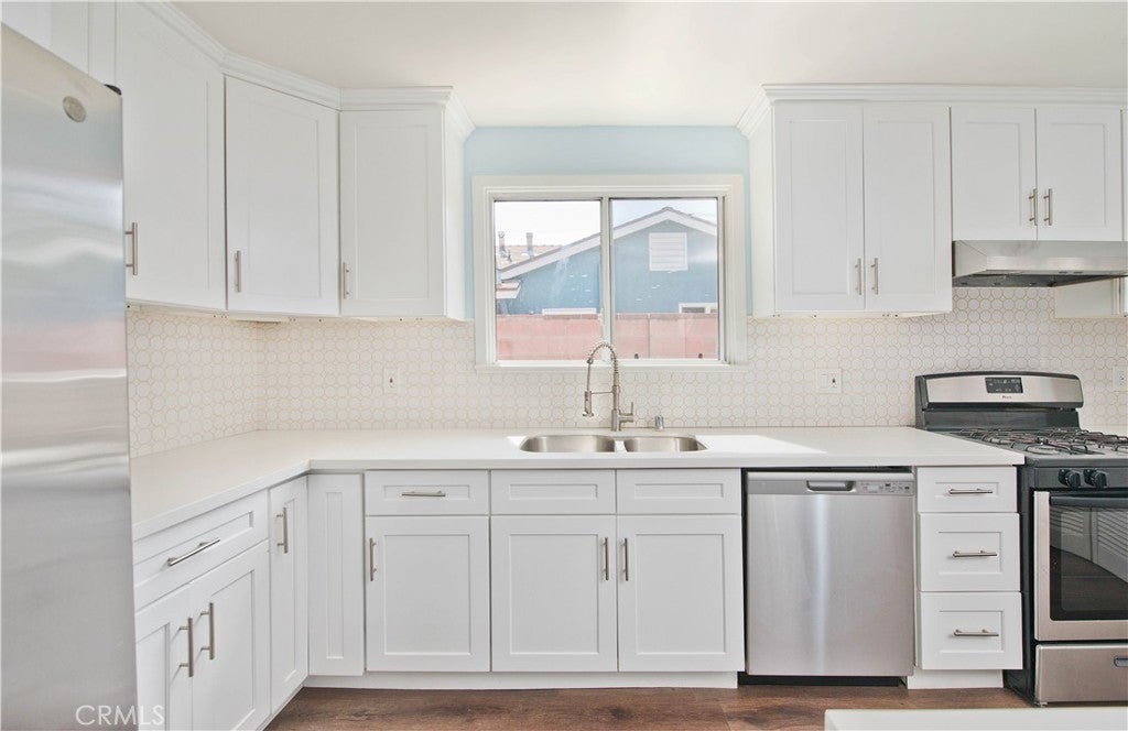 Located in a beautiful, walkable neighborhood, this move in ready home offers 3 bedrooms and 2 bathrooms with laminate flooring throughout. The remodeled kitchen and bathrooms feature updated finishes and a clean, modern feel. The backyard is spacious and includes a covered patio, providing additional outdoor living space. Covered driveway parking accommodates two cars. Conveniently located near West Hills Hospital, shopping, transportation, and schools.
