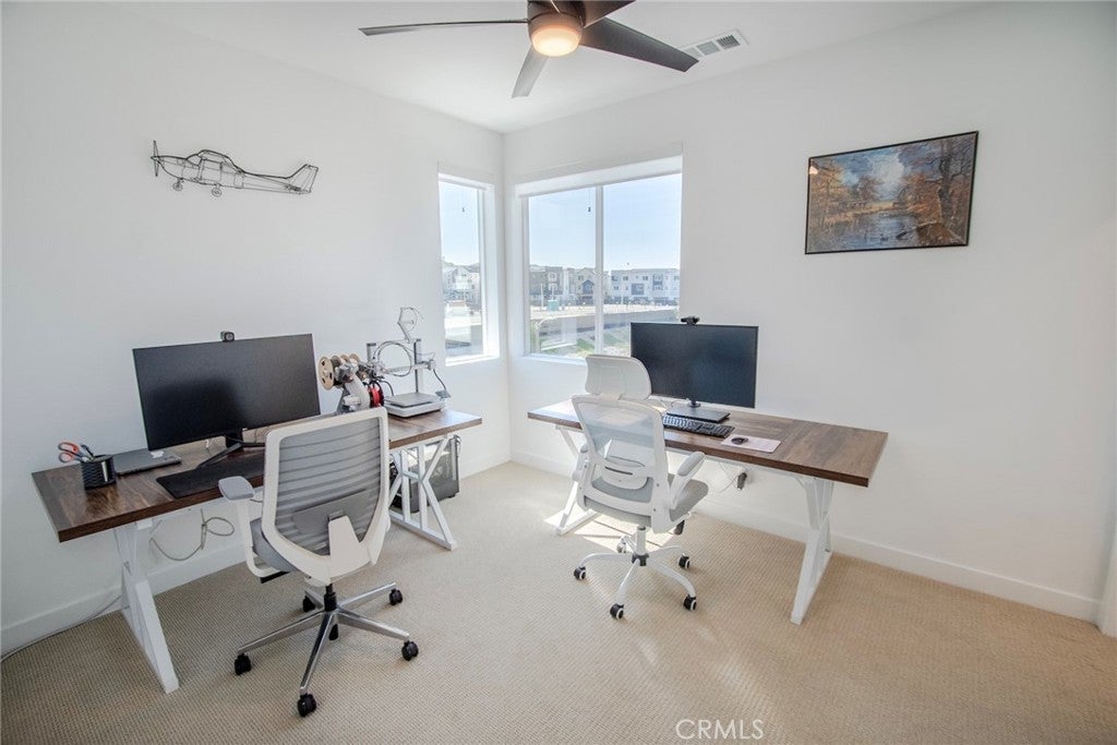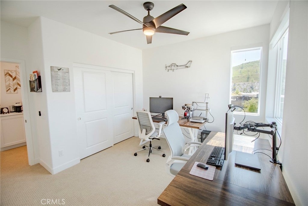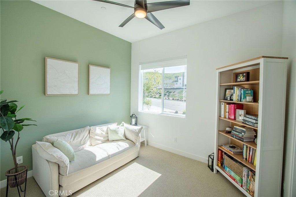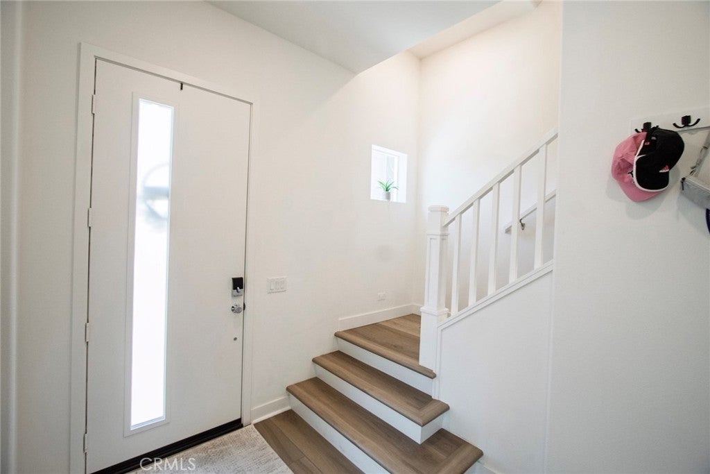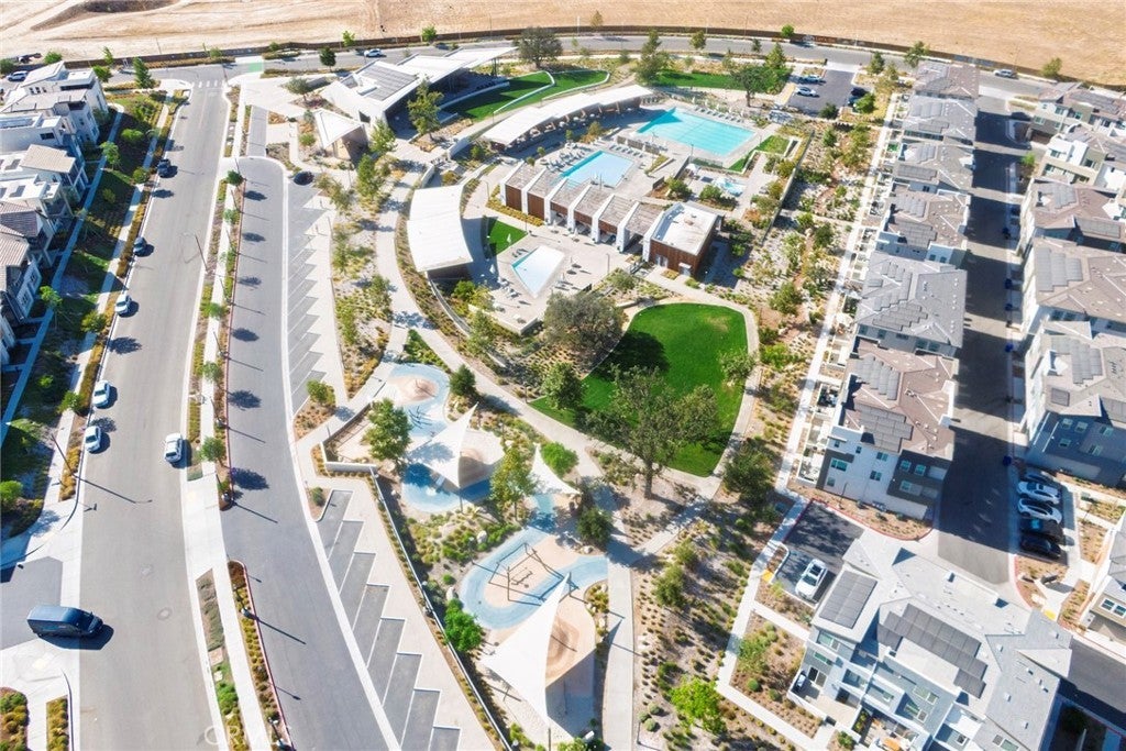 Beautiful end-unit, 3-story condo offering modern design, abundant natural light, and mountain views. The entry level features a private bedroom and full bathroom — ideal for guests, a home office, or multi-generational living — along with direct access to the attached garage. The main living level showcases a spacious open-concept great room with a large balcony overlooking the mountains, perfect for relaxing or entertaining. A generous family room and dining area flow seamlessly into the upgraded kitchen, complete with a large eat-at island, quartz countertops, soft-close cabinetry, and stainless steel appliances. A light-filled powder room is thoughtfully positioned on this level for added convenience. The third floor offers three additional well-sized bedrooms, including a spacious primary suite with an en-suite bathroom. Luxury vinyl flooring runs throughout the main living areas, adding both style and durability. Built just two years ago, this home feels fresh, clean, and move-in ready. Located in a beautifully maintained community featuring a large clubhouse, two pools, and a play area — offering both comfort and lifestyle. Solar is leased and saves your SCE bill.