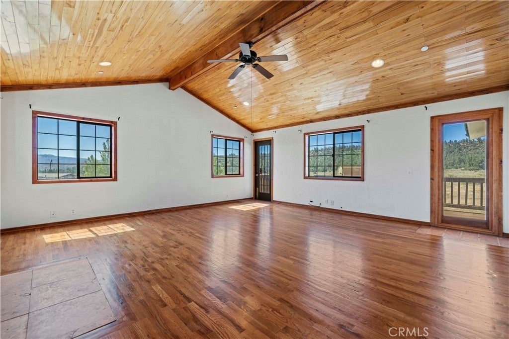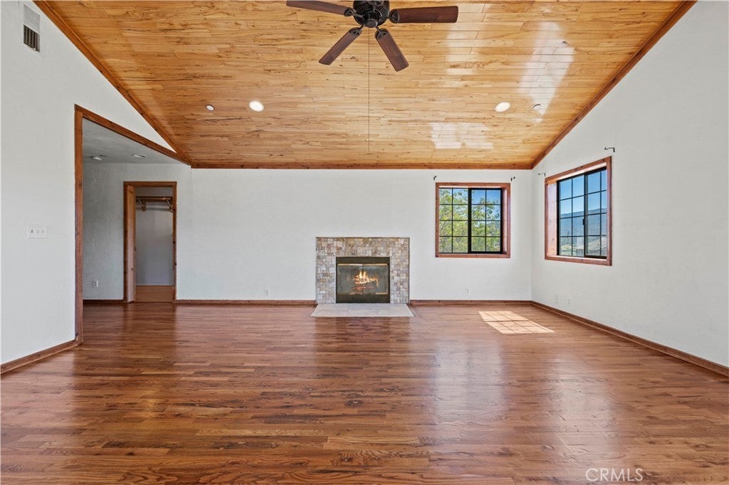 Nestled in the mountains and surrounded by natural beauty, this magnificent estate combines timeless craftsmanship with modern updates on over 5 acres bordering 600 square miles of National Forest. Recently refreshed with new exterior and interior paint and beautifully refinished hardwood floors, the single story custom home offers sweeping panoramic views and trails right outside your door. The residence features 5 bedrooms, 2.5 bathrooms, and nearly 3,600 square feet of thoughtfully designed living space. The expansive living room showcases vaulted ceilings with exposed beams, while the chef’s kitchen is equipped with a walk in pantry, double oven, marble countertops, artistic backsplash, custom cabinetry, and a striking butcher block island. Radiant heated floors warm the kitchen and dining areas, and three fireplaces add inviting charm throughout the home. The primary suite is a private retreat with vaulted ceilings accented in exotic Asian birch, a cozy fireplace, and a spa inspired bath with a cast iron tub and oversized shower. Built for both beauty and resilience, the property includes a lifetime metal roof, full sprinkler system, dual propane tanks, boxed in eaves, complete fencing with an electric gate, and a backup generator powering the entire home and well pump. Equestrian facilities include corrals and a powered tack room, offering a ready made retreat for horse enthusiasts. Located just 45 minutes from Santa Clarita, this rare estate delivers the perfect blend of seclusion, modern updates, and timeless natural beauty.