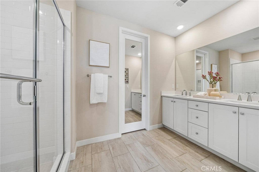 Welcome to this stunning 3 bedroom, 2 bath condo located in the highly sought-after FivePoint community of Valencia. Tucked away in an incredible, private location, this former model home showcases designer upgrades and custom touches throughout. Step inside to a light and bright open floor plan, enhanced by windows throughout that fill the home with natural light. Luxury vinyl flooring throughout the main living areas. The oversized kitchen features granite countertops, custom backsplash, stainless steel appliances and great cabinet space, all seamlessly opening to the spacious dining and living areas. Enjoy wide-open views from your private balcony, which also provides an additional storage closet. This property also includes a tankless water heater and solar! Large indoor laundry room. Rare 2 car side-by-side garage with EV charger. Residents of this vibrant community enjoy exceptional HOA amenities, including a resort-style pool and spa, modern clubhouse, weekly farmers markets, community garden and miles of scenic walking paths. Conveniently located just off the 5 Freeway, this home offers easy access to premier shopping, dining, and entertainment. This is a rare opportunity to own a beautifully upgraded home in one of Valencia’s most desirable communities.