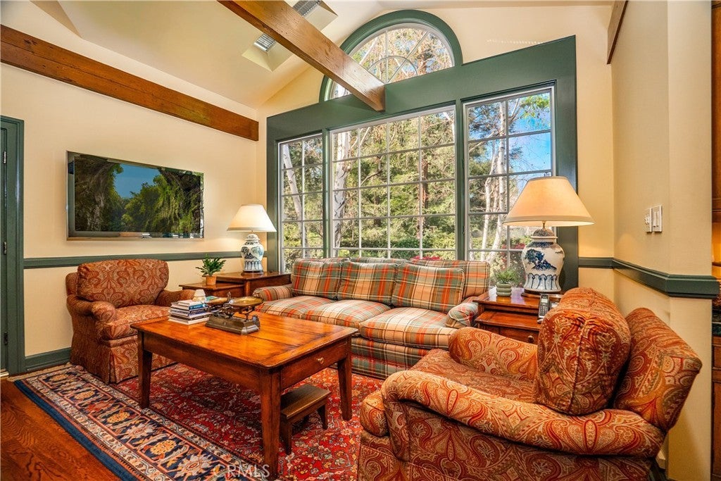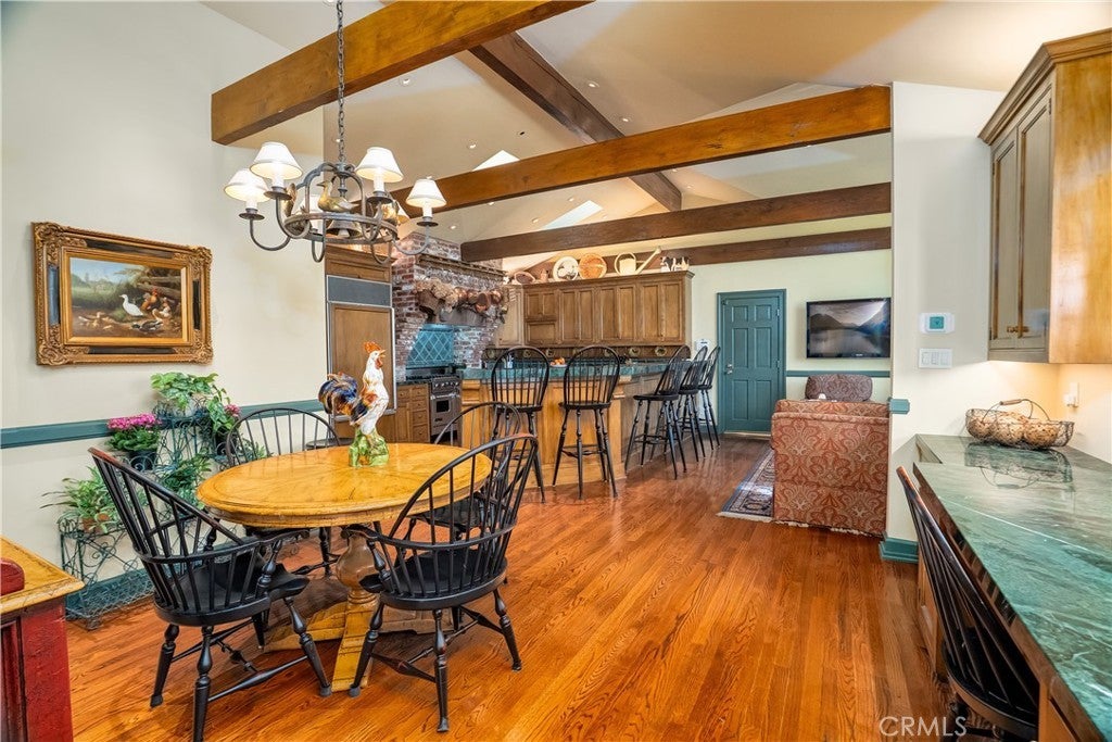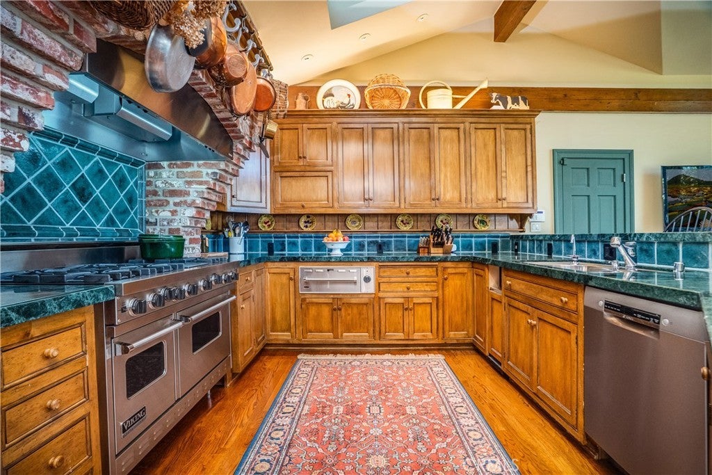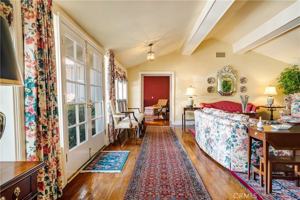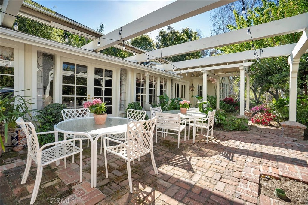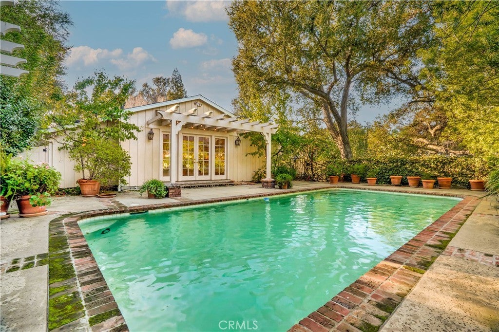 Nestled within the coveted and exclusive enclave of the Encino Rancho Estates, this enchanting 3-bedroom, 2-bathroom retreat is a rare offering that features climbing vines, rich wallpaper, and 2,848 square feet of beautifully appointed living spaces set on a generous 18,320 square foot lot, which creates a sense of scale and privacy that is increasingly hard to come by. The professionally decorated areas exude warmth and sophistication throughout. Every detail has been considered, giving the home a distinct character and charm that is increasingly hard to find. The grand living room showcases soaring vaulted ceilings and a striking floor-to-ceiling brick fireplace, creating an atmosphere that is both impressive and deeply inviting. French doors open directly onto a covered patio, seamlessly extending the space into a lush outdoor setting ideal for relaxed gatherings and evening entertaining. The traditional formal dining room offers an elegant setting for hosting with French doors that frame beautiful views of the grounds, bringing natural light and the beauty of the surrounding greenery indoors. At the heart of the home sits a large, open gourmet kitchen that is as functional as it is beautiful. Dramatic vaulted ceilings with wood beams, a sunny breakfast area, and an adjoining family room create a natural gathering space for everyday living. The kitchen is equipped with a premium Viking range stove/oven, a Sub-Zero refrigerator, and a built-in desk area, all complemented by an attached butler's pantry that adds exceptional storage and prep space. The primary suite is true haven with an enormous walk-in closet, large seating area with French doors that lead directly to a large, sun-drenched pool and backyard greenery. The effortless indoor-outdoor connection is perfect for both quiet mornings and entertaining guests. The suite includes a large primary bathroom with skylights and beautiful finishings. Gated for privacy, brimming with character, and tucked away from the hum of the city, this is not just a home but an experience. This property delivers the rare combination of prestige, privacy, and personality that today's most discerning buyers seek. Ideally situated near some of the Encino’s top-rated schools, and just minutes from upscale shops and restaurants, You’ll be impressed by the quality and condition of this estate. This is a Trust Sale-Property to be sold AS IS.