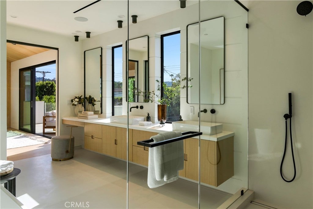 Introducing a stunning new construction home with a 1-bed, 1-bath attached ADU, situated on a privately gated lot in the desirable Colfax Meadows neighborhood of Studio City. Walls of glass throughout the open-concept floor plan flood the interior with warm natural light, creating a bright and inviting atmosphere. The showstopping chef’s kitchen, equipped with top-of-the-line appliances and a sleek waterfall island, opens effortlessly to the living room, where two oversized sliding glass doors seamlessly extend your living space outside. Enjoy a serene backyard retreat designed for entertaining or unwinding in total privacy, the space boasts a sparkling pool/spa and built-in BBQ with bar seating. Completing the main level is a formal dining room, state-of-the-art home theater, ensuite bedroom, chic powder bath and a mudroom with direct access to the two-car garage. Upstairs, you’ll find four generously sized bedrooms, three full bathrooms and a dedicated laundry room. The grand primary suite features a private balcony, custom walk-in closet and spa-inspired bathroom with a soaking tub, oversized rainfall shower and double vanity. Designed for ultimate flexibility, the attached ADU offers a spacious living room with a kitchenette, a bedroom, full bathroom and separate entrance. Connected to the main house via a hallway, this space can easily function as a rec room, office, gym or private living quarters for family/guests. Additional highlights include high ceilings throughout and a smart home system that controls the speakers, lighting, climate and a security system with cameras. This property is located within the top-rated Carpenter School District and just moments from Tujunga Village, Ventura Boulevard’s vibrant shopping and dining scene, top private schools, the Studios and so much more.