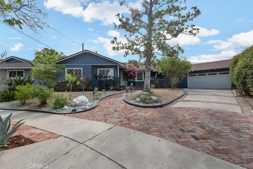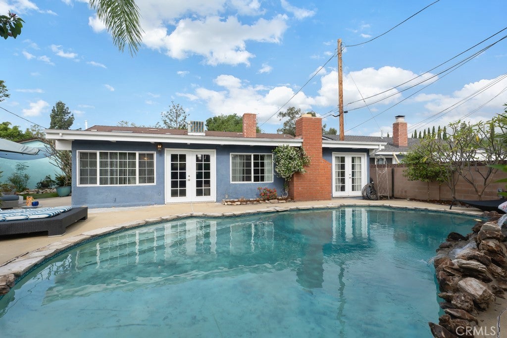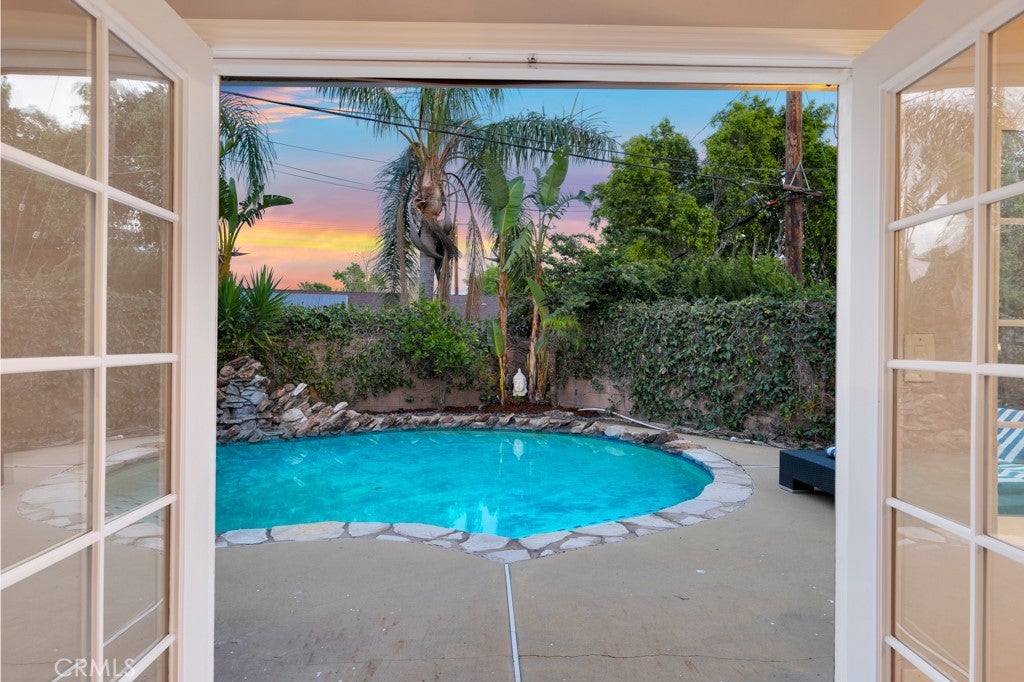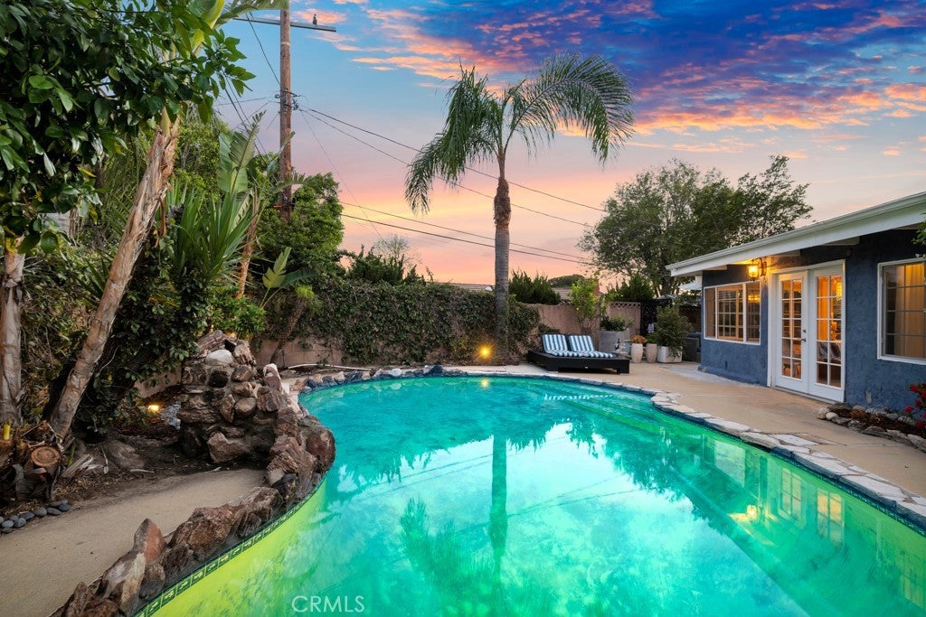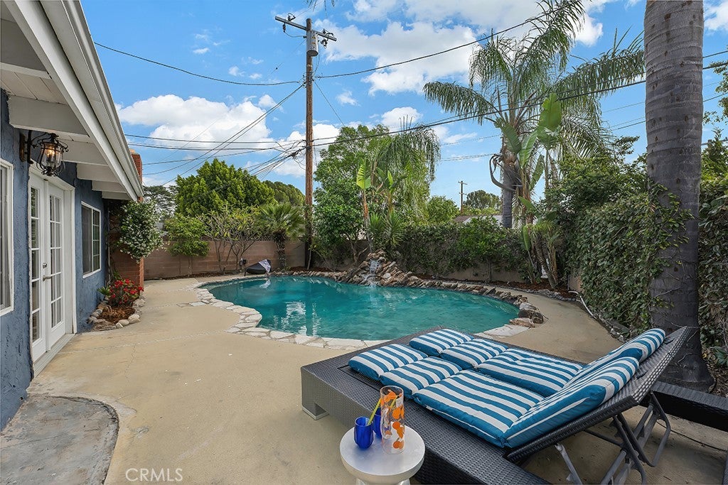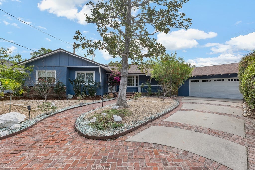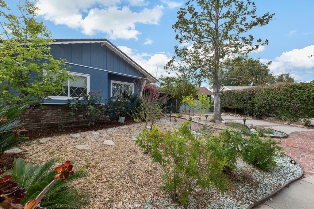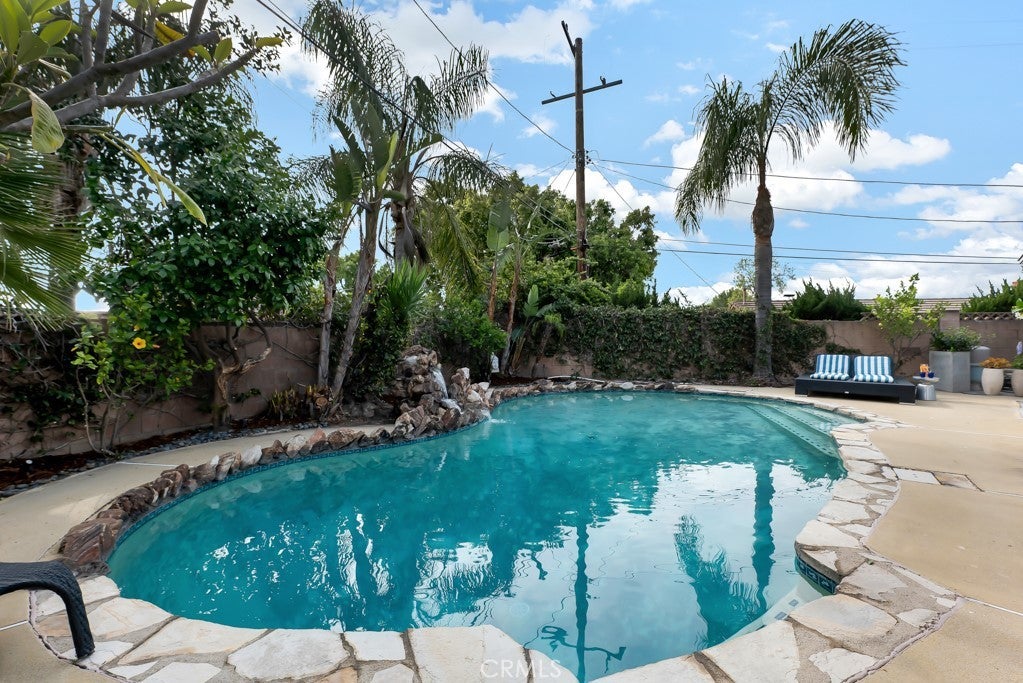 Tucked away on a quiet, tree-lined cul-de-sac in one of Granada Hills’ most desirable neighborhoods, this beautifully maintained 4-bedroom, 2-bath home offers a rare blend of privacy, charm, and resort-style living with effortless indoor-outdoor flow. Just moments from Granada Hills Charter High School, shopping, and dining, the home welcomes you with a charming entry path and expansive brick front porch shaded by a mature magnolia tree, setting the tone for the warmth and character found throughout. Light-filled interiors feature large windows and French doors, fresh updates, tasteful finishes, central HVAC, and a separate laundry room with washer and dryer included. The open-concept living and dining areas offer a fireplace, skylight, architectural details, and seamless access to the backyard, ideal for both everyday living and entertaining. The spacious kitchen is designed for function and style with vaulted ceilings, skylight, center island with seating, granite countertops, stainless steel appliances including refrigerator, dishwasher, and convection oven, and an oversized farmhouse sink overlooking the garden. The expansive primary suite provides a private retreat with a versatile bonus space perfect for a home office or wellness area, complemented by exposed wood beam ceilings, a fireplace, ambient lighting, and views of the pool and lush grounds. Step outside to a truly special setting featuring a freeform pool with waterfall, multiple seating areas, firepit, and beautifully landscaped grounds with mature greenery and a variety of fruit trees including citrus, avocado, fig, and more, creating a serene and inviting atmosphere. Additional highlights include two spa-inspired bathrooms, one with a rain shower and one with a soaking tub, a flexible bedroom currently used as a custom wardrobe space, a fourth bedroom with bay window and en-suite bath, a 2-car garage, and driveway parking. Partial furnishings may be available. This is a rare opportunity to live in a home that offers character, privacy, and a true sense of retreat—an inviting space designed for comfort, connection, and everyday enjoyment.