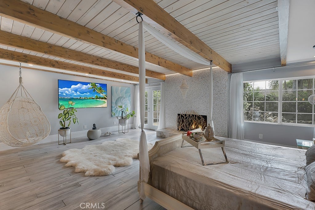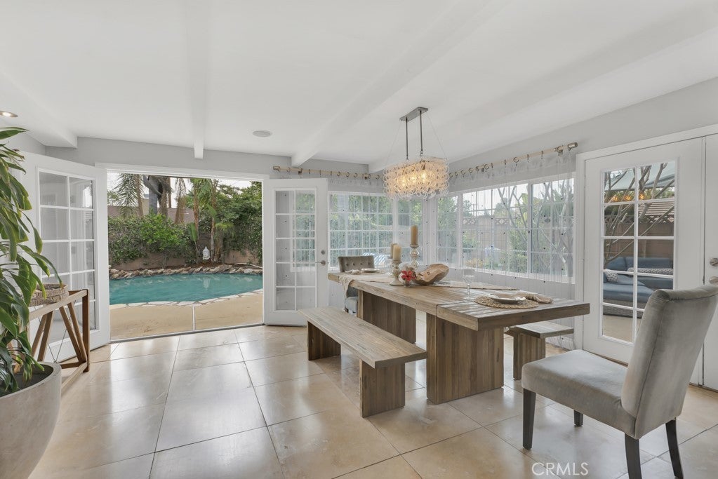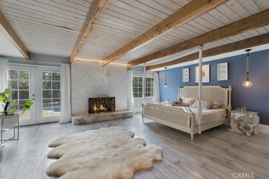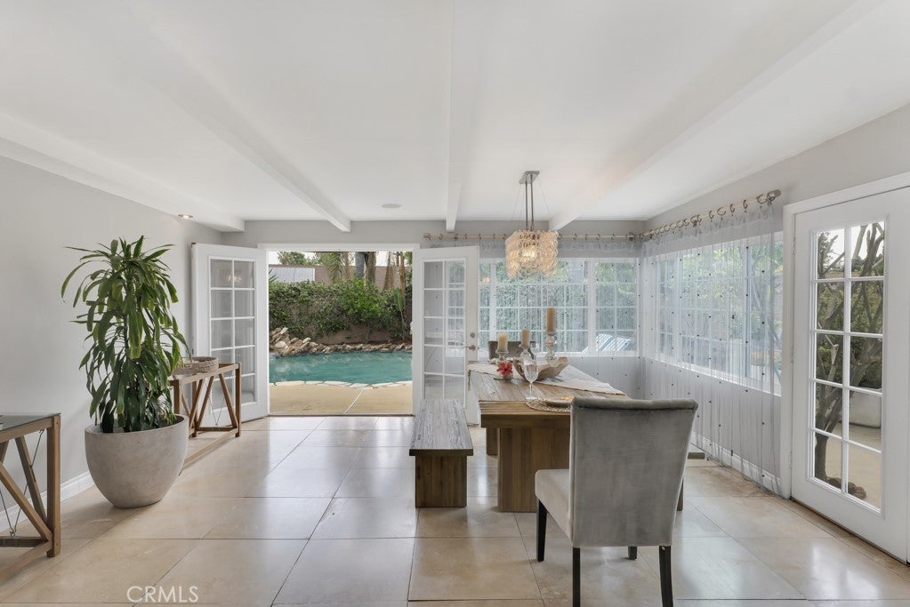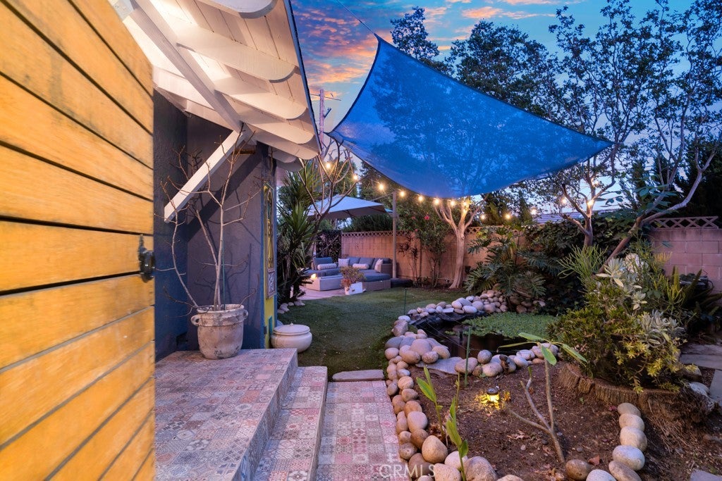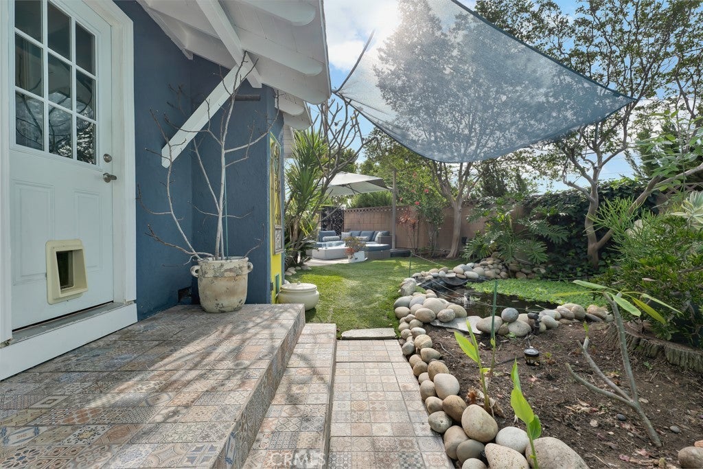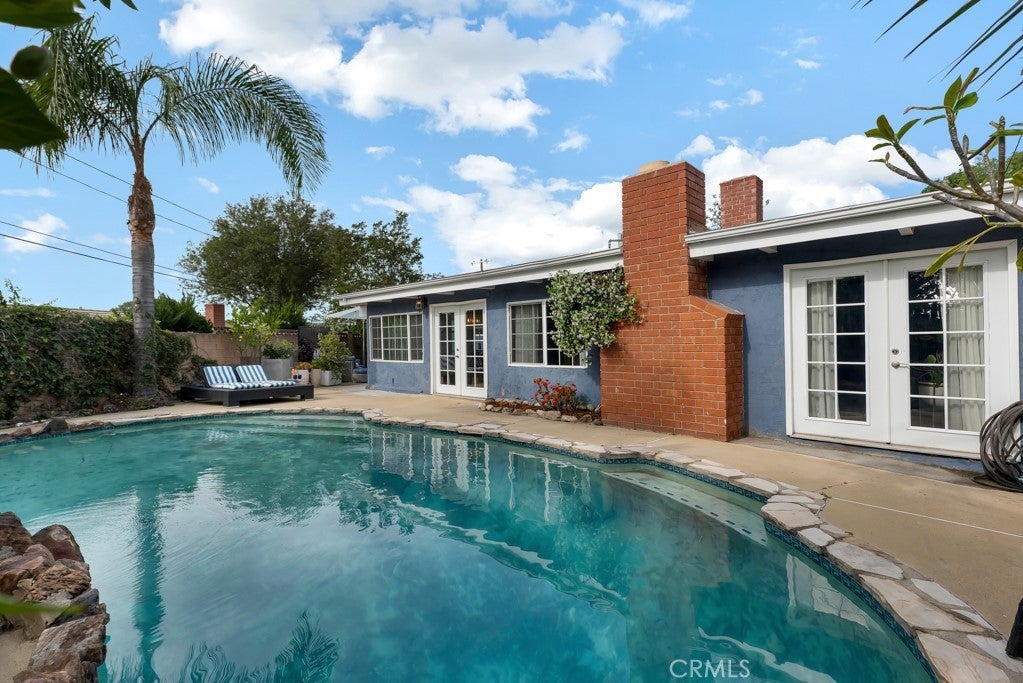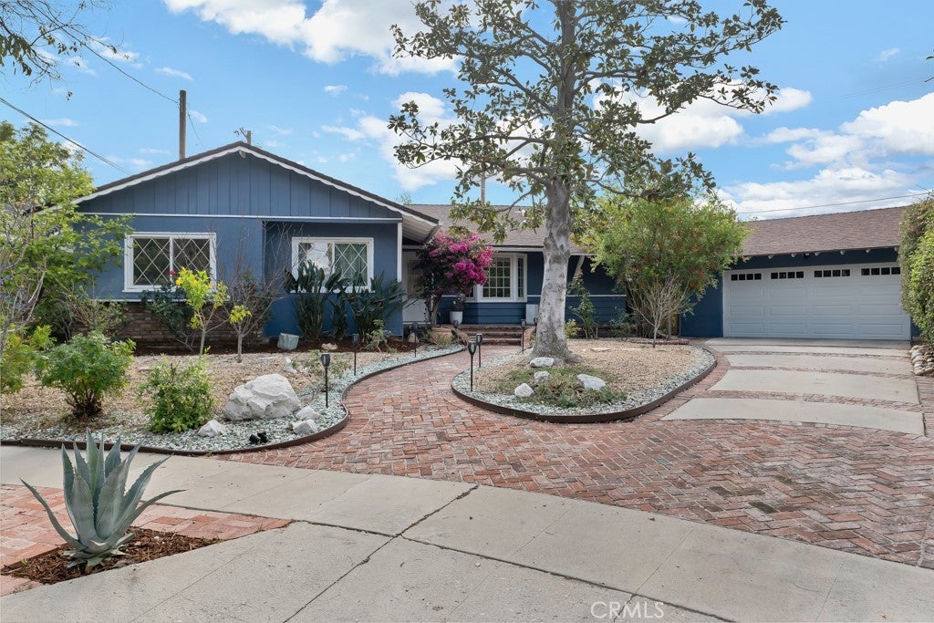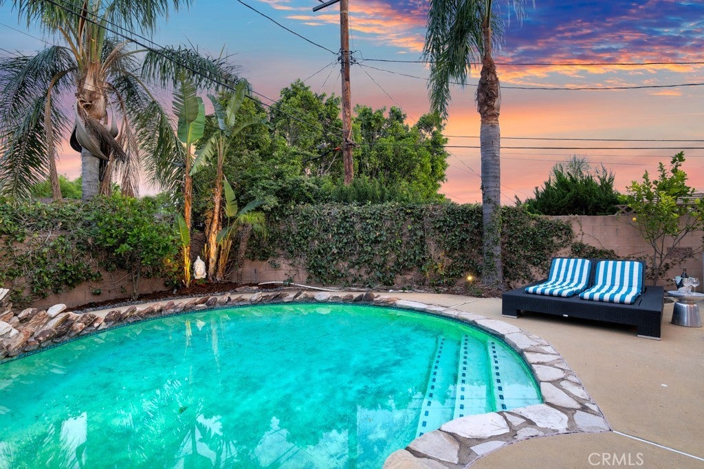 Tucked away on a quiet, tree-lined cul-de-sac in one of Granada Hills’ most desirable neighborhoods, this beautifully maintained 4-bedroom, 2-bath home offers a rare blend of privacy, charm, and resort-style living with effortless indoor-outdoor flow. Just moments from Granada Hills Charter High School, shopping, and dining, the home welcomes you with a charming entry path and expansive brick front porch shaded by a mature magnolia tree, setting the tone for the warmth and character found throughout. Light-filled interiors feature large windows and French doors, fresh updates, tasteful finishes, central HVAC, and a separate laundry room with washer and dryer included. The open-concept living and dining areas offer a fireplace, skylight, architectural details, and seamless access to the backyard, ideal for both everyday living and entertaining. The spacious kitchen is designed for function and style with vaulted ceilings, skylight, center island with seating, granite countertops, stainless steel appliances including refrigerator, dishwasher, and convection oven, and an oversized farmhouse sink overlooking the garden. The expansive primary suite provides a private retreat with a versatile bonus space perfect for a home office or wellness area, complemented by exposed wood beam ceilings, a fireplace, ambient lighting, and views of the pool and lush grounds. Step outside to a truly special setting featuring a freeform pool with waterfall, multiple seating areas, firepit, and beautifully landscaped grounds with mature greenery and a variety of fruit trees including citrus, avocado, fig, and more, creating a serene and inviting atmosphere. Additional highlights include two spa-inspired bathrooms, one with a rain shower and one with a soaking tub, a flexible bedroom currently used as a custom wardrobe space, a fourth bedroom with bay window and en-suite bath, a 2-car garage, and driveway parking. Partial furnishings may be available. This is a rare opportunity to live in a home that offers character, privacy, and a true sense of retreat—an inviting space designed for comfort, connection, and everyday enjoyment.