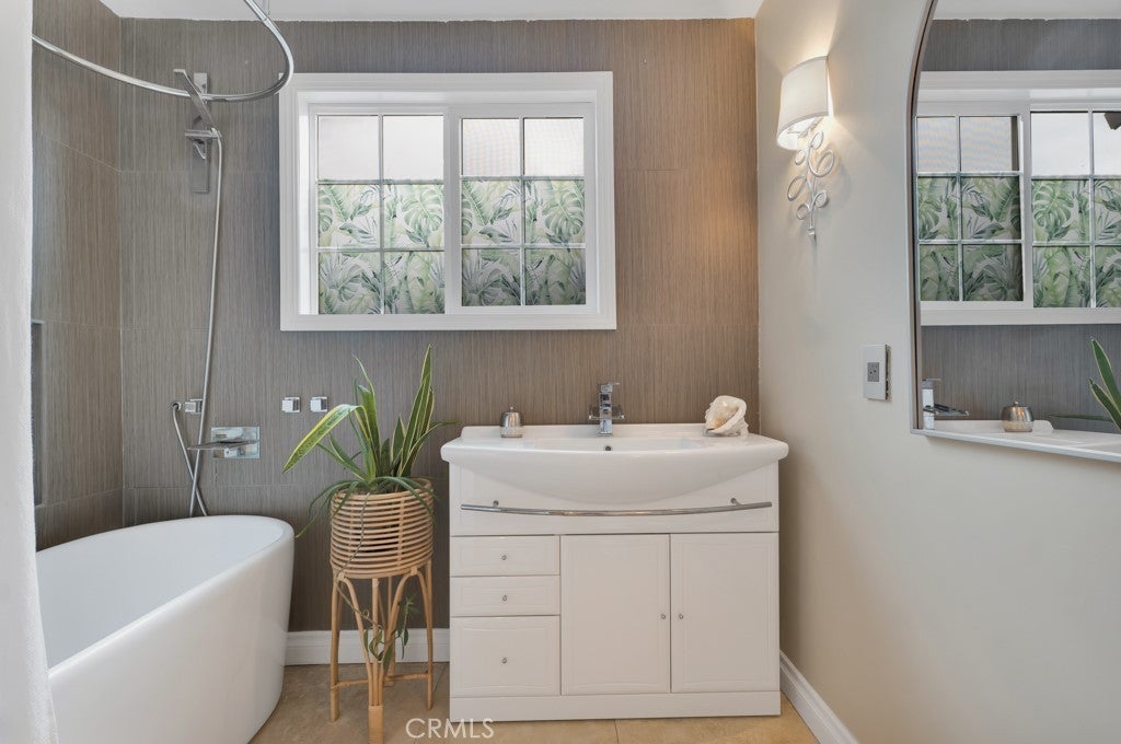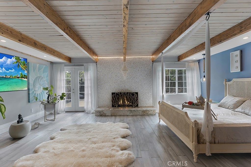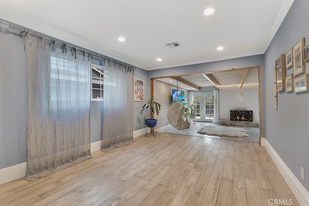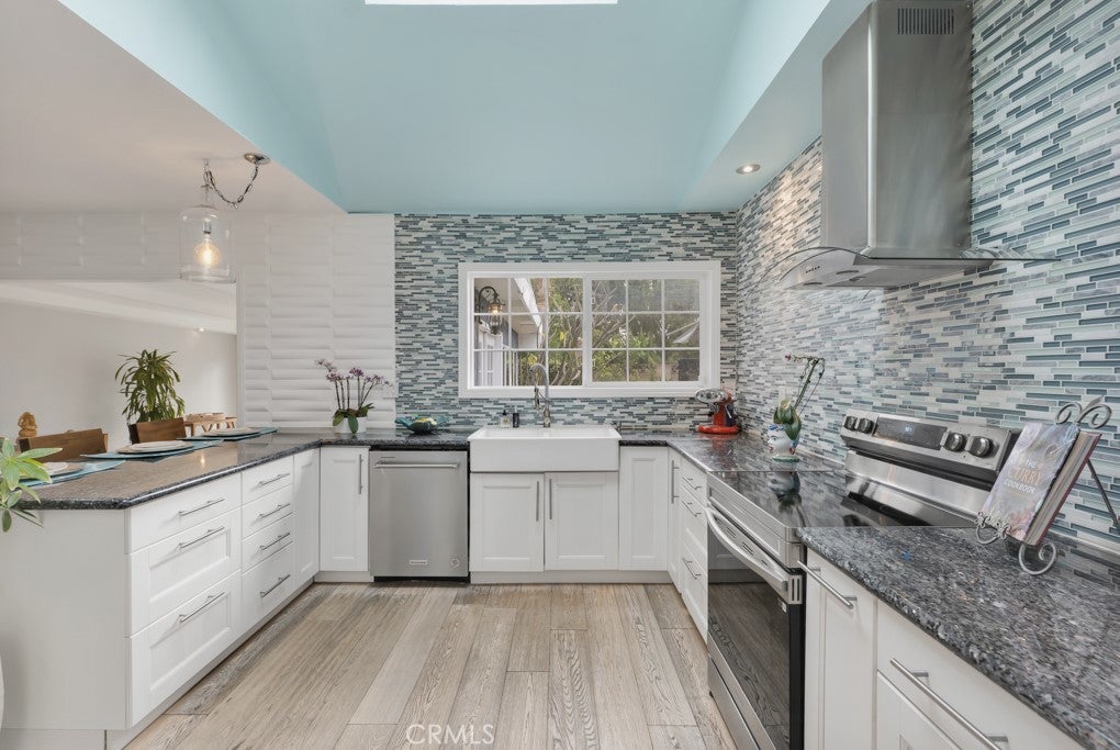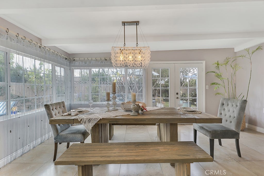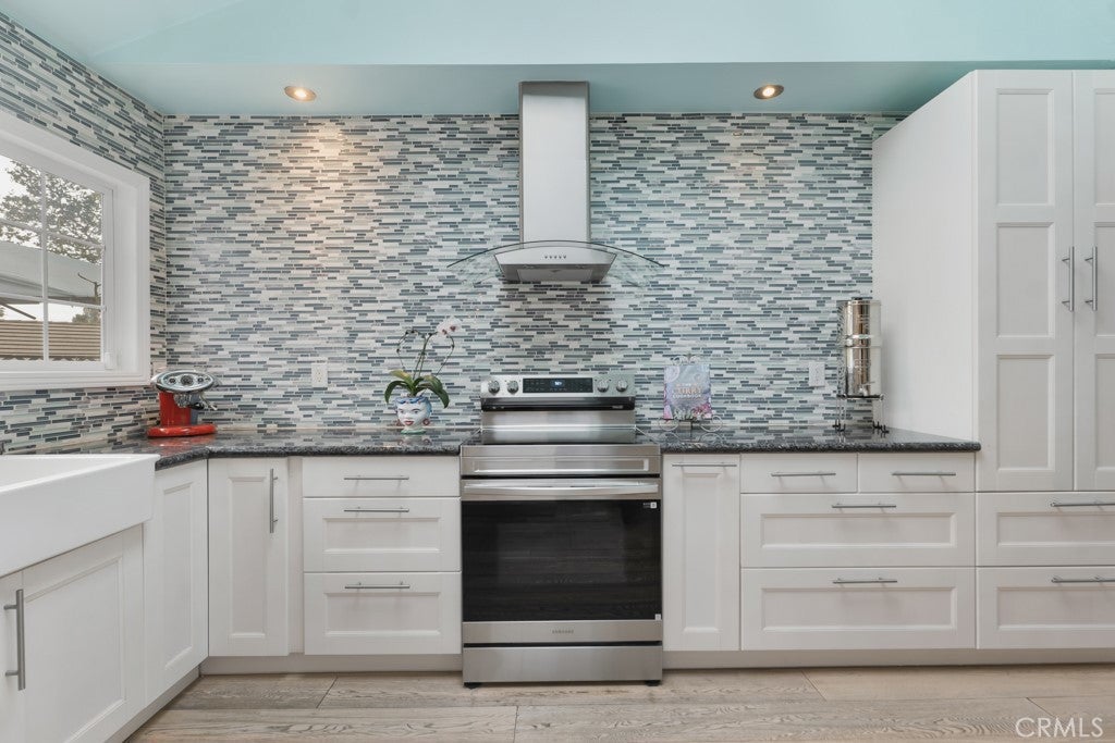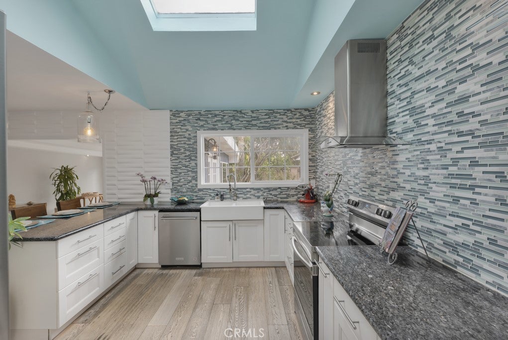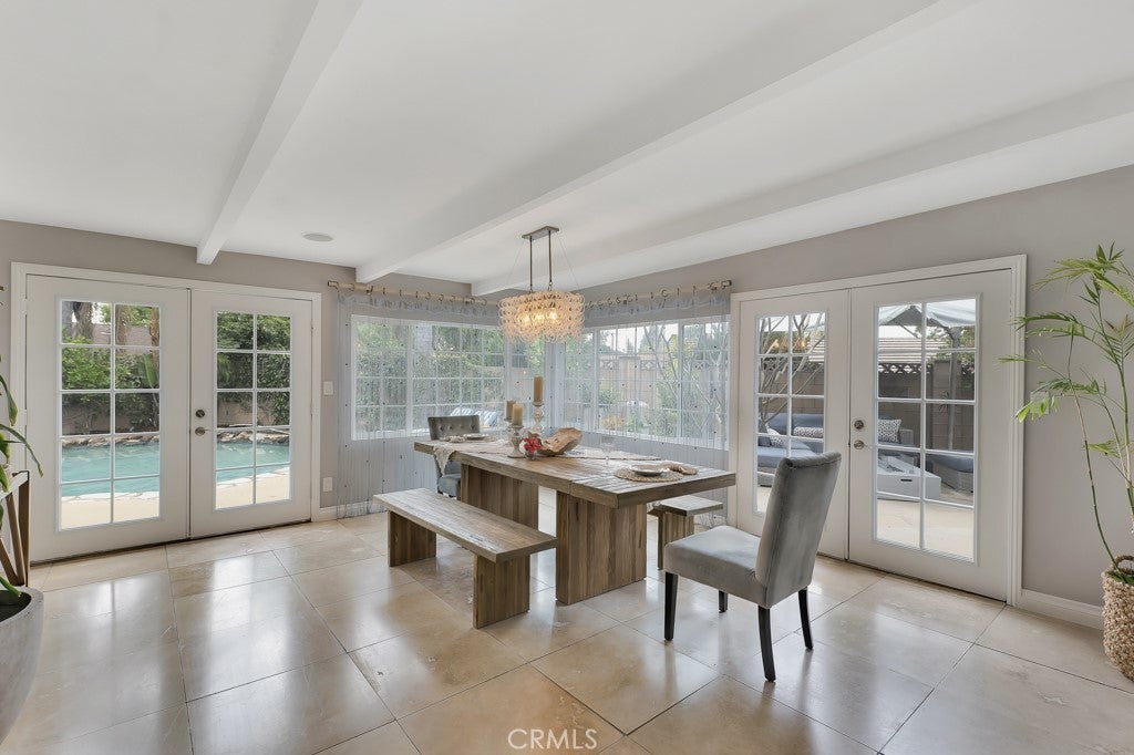 Tucked away on a quiet, tree-lined cul-de-sac in one of Granada Hills’ most desirable neighborhoods, this beautifully maintained 4-bedroom, 2-bath home offers a rare blend of privacy, charm, and resort-style living with effortless indoor-outdoor flow. Just moments from Granada Hills Charter High School, shopping, and dining, the home welcomes you with a charming entry path and expansive brick front porch shaded by a mature magnolia tree, setting the tone for the warmth and character found throughout. Light-filled interiors feature large windows and French doors, fresh updates, tasteful finishes, central HVAC, and a separate laundry room with washer and dryer included. The open-concept living and dining areas offer a fireplace, skylight, architectural details, and seamless access to the backyard, ideal for both everyday living and entertaining. The spacious kitchen is designed for function and style with vaulted ceilings, skylight, center island with seating, granite countertops, stainless steel appliances including refrigerator, dishwasher, and convection oven, and an oversized farmhouse sink overlooking the garden. The expansive primary suite provides a private retreat with a versatile bonus space perfect for a home office or wellness area, complemented by exposed wood beam ceilings, a fireplace, ambient lighting, and views of the pool and lush grounds. Step outside to a truly special setting featuring a freeform pool with waterfall, multiple seating areas, firepit, and beautifully landscaped grounds with mature greenery and a variety of fruit trees including citrus, avocado, fig, and more, creating a serene and inviting atmosphere. Additional highlights include two spa-inspired bathrooms, one with a rain shower and one with a soaking tub, a flexible bedroom currently used as a custom wardrobe space, a fourth bedroom with bay window and en-suite bath, a 2-car garage, and driveway parking. Partial furnishings may be available. This is a rare opportunity to live in a home that offers character, privacy, and a true sense of retreat—an inviting space designed for comfort, connection, and everyday enjoyment.