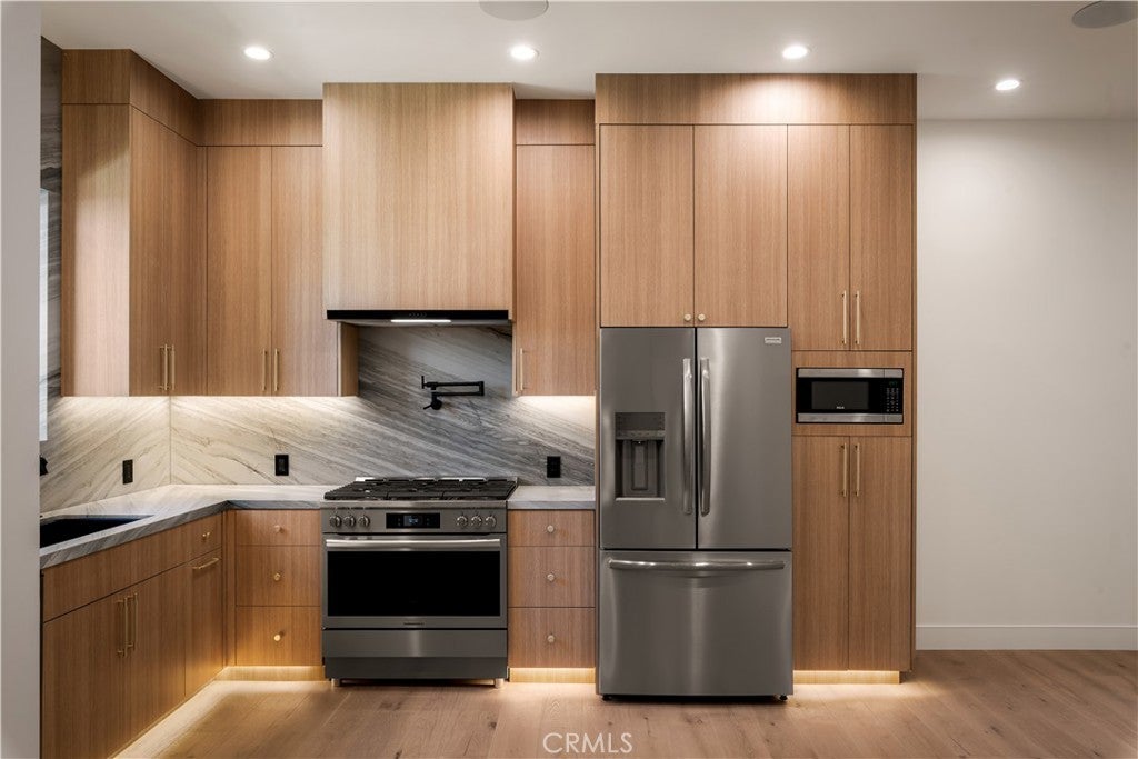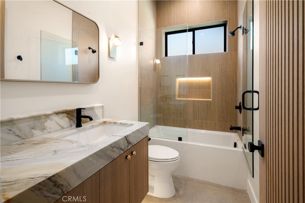 This spacious new construction ADU offers an open-concept layout with soaring high ceilings and luxury modern finishes throughout. Thoughtfully designed, the home features 8-foot white oak doors, custom cabinetry, and a private entrance for added comfort and privacy. The primary suite provides a generous retreat with a custom walk-in closet and a beautifully appointed en-suite bathroom. The second bedroom also features its own en-suite bath, complete with a vanity, shower, and built-in bench. A third bedroom offers flexible use as an additional bedroom, office, or creative space. An additional full bathroom conveniently serves guests and common areas. The main living area includes a welcoming entry, an enclosed laundry area, a full kitchen, and a cozy living room nook. The open floor plan and elevated ceilings create a bright, airy atmosphere that makes this ADU feel like a single-story home. Step outside to your private side yard, ideal for relaxing or entertaining in a peaceful setting. Located in the desirable community of Agoura Hills, close to top-rated schools, parks, scenic hiking trails, and dining. Private showings by appointment only. Tenant to obtain renter’s insurance prior to move-in.