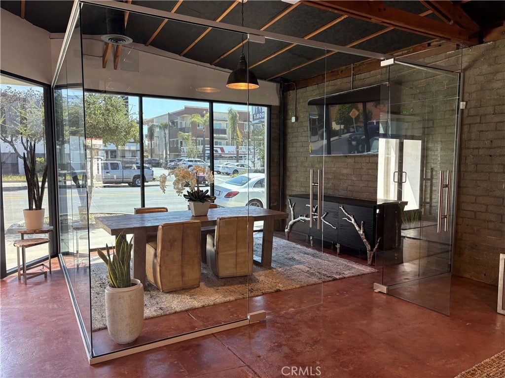 Professional office space available. This furnished multi-tenant-office building offers a modern, open layout ideal for professionals that do not have a permanent office to meet with clients, hosting business appointments, networking events or enjoy full access to a stylish, open-concept commercial workspace located on busy Maclay Ave in San Fernando. This flexible month-to-month office is ideal for realtors, creatives, remote workers, and professionals who want a comfortable, furnished environment for work or client meetings. Features include multiple lounge zones, a glass conference room, high ceilings, exposed beams, and modern décor throughout. Located minutes from the San Fernando Valley Courthouse—great for attorneys or anyone needing convenience and visibility.