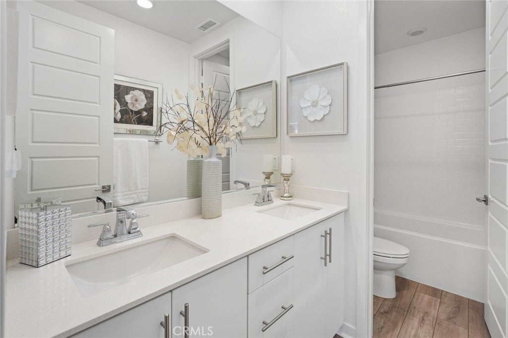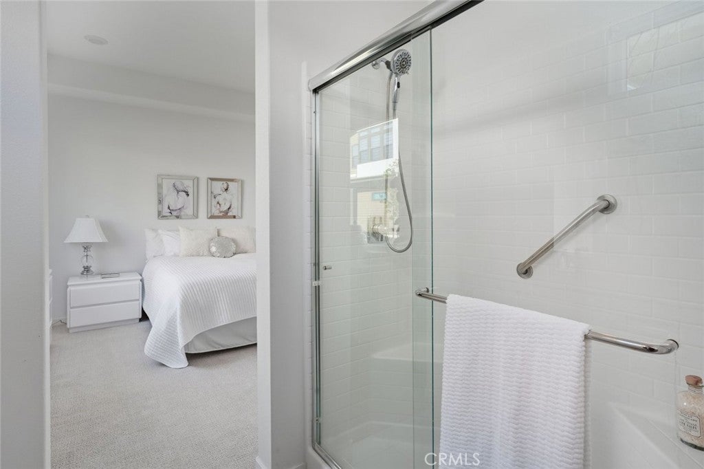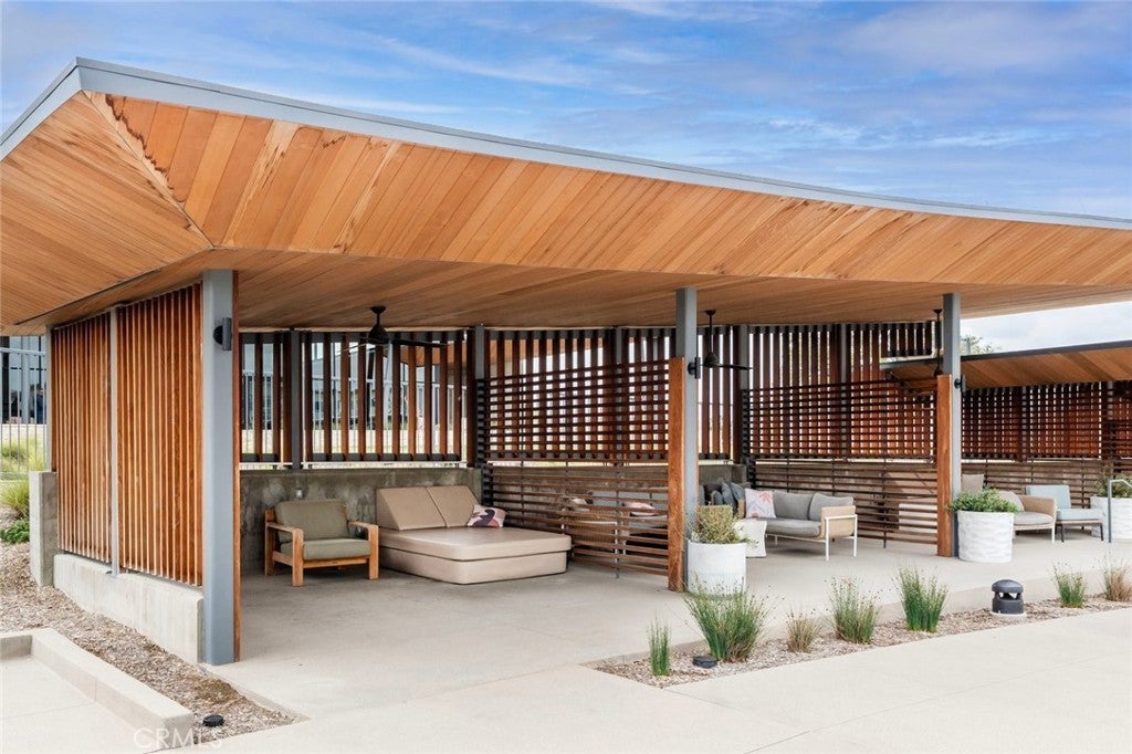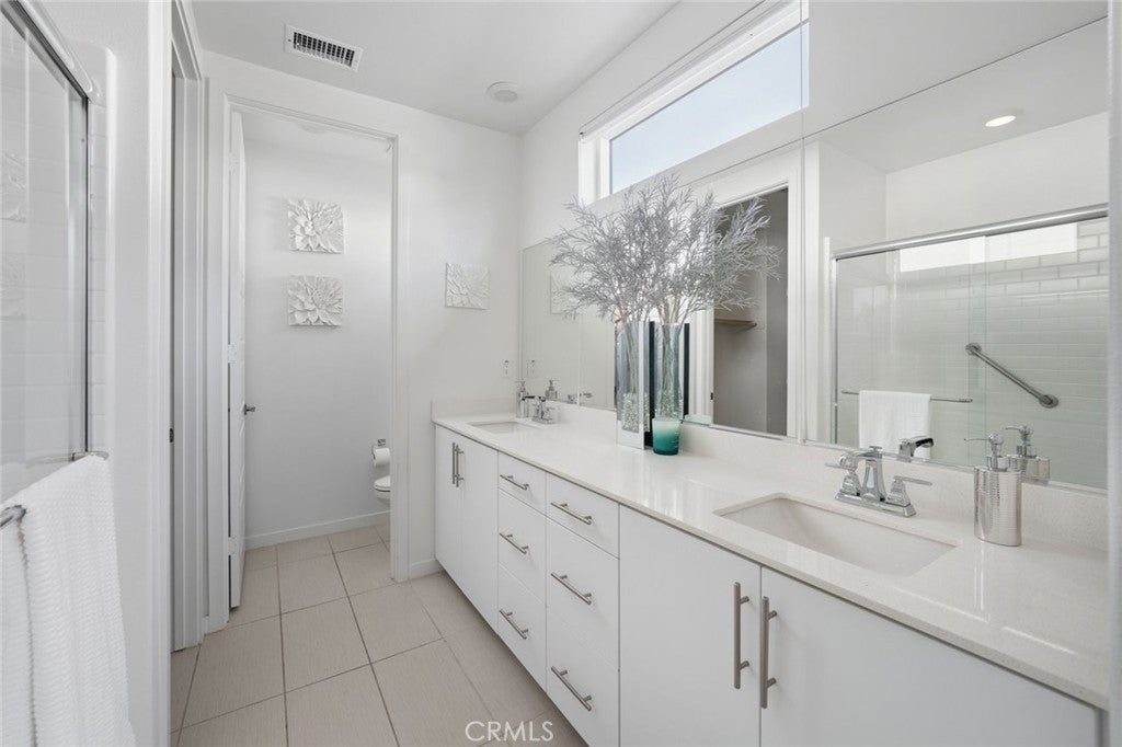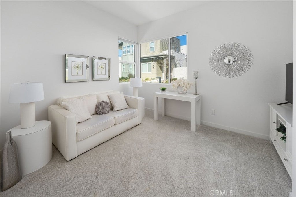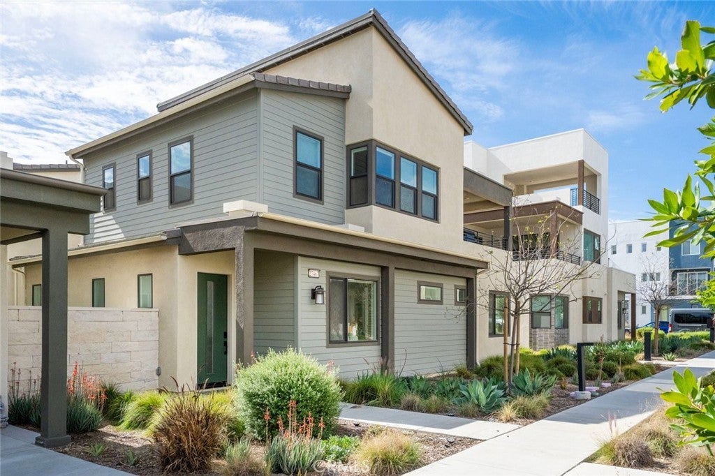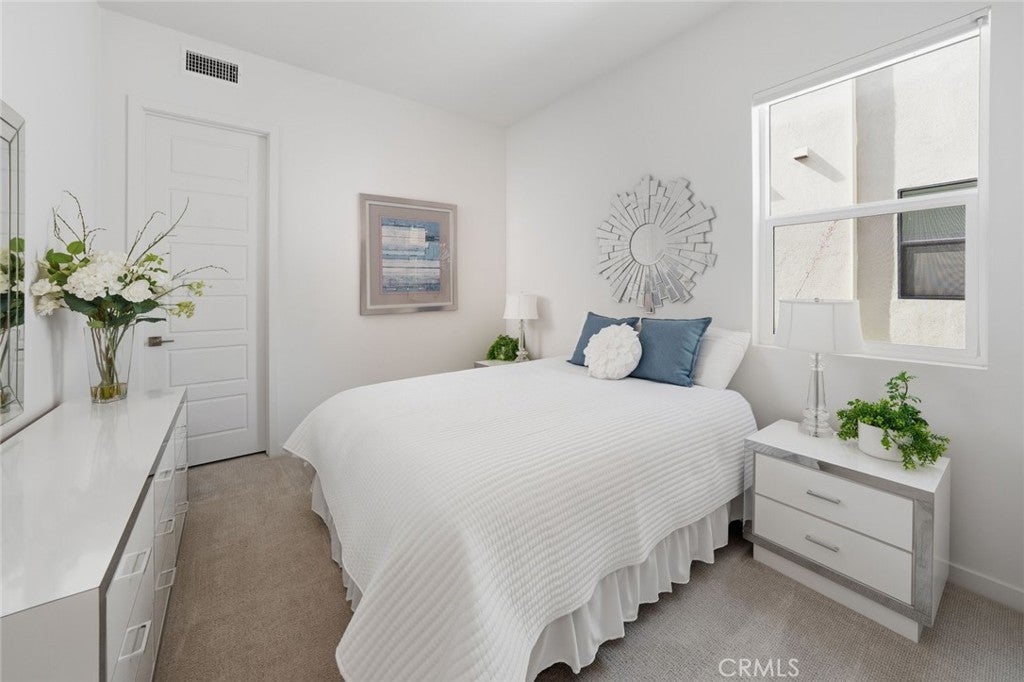 Absolutely stunning and rare 3 bed, 2 bath ground floor SINGLE STORY home in the highly sought after Rowan collection in Valencia's coveted FivePoint community. Beautifully appointed modern home featuring an open-concept floor plan with high ceilings, large picture windows, luxury vinyl plank flooring, and tons of designer upgrades. Can be purchased fully furnished! Step inside to the large living room bathed in natural light with views of the lovely courtyard through the oversized picture windows. The bright and airy living area flows seamlessly into the dining space featuring a beautiful feature wall and eye-catching chandelier. The gourmet kitchen is an entertainer's dream, showcasing quartz countertops, a huge island, designer backsplash, beautiful white cabinetry with brushed nickel hardware, a walk-in pantry, and high end stainless-steel appliances. From the kitchen, step through sliding glass doors to the charming and spacious covered courtyard - perfect for relaxing or outdoor get togethers. The primary suite offers plush carpeting, recessed lighting, custom window coverings, a generous walk-in closet, and a luxurious en-suite bathroom with dual quartz vanities and a walk-in shower. Two additional bedrooms include large closets, custom window coverings and abundant natural light. The full guest bath also features dual vanities, quartz counters, and a tub/shower combination. Additional highlights include a dedicated laundry room, attached two-car garage, and owned solar panels for enhanced energy efficiency. Residents of the FivePoint community enjoy resort-style amenities such as multiple pools, spas, cabanas, parks, walking trails, a recreation center, dog park, community garden, and a popular Sunday Farmer’s Market. Conveniently located near shopping, dining, and the 5 Freeway yet tucked away in a quiet community, this exceptional residence offers the perfect blend of elegance, comfort and convenience.