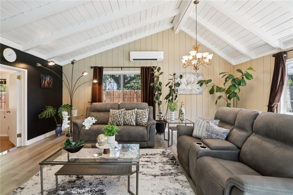 Welcome to this entertainer’s dream—a gated retreat nestled in the highly sought-after Granada Hills neighborhood, north of Rinaldi. From the moment you step inside, a serene private courtyard with a tranquil fish pond sets the tone, offering a peaceful, zen-like ambiance that flows throughout the home. This beautifully maintained residence features 4 bedrooms plus a dedicated office, 2 bathrooms, and just under 2,300 square feet of thoughtfully designed living space, all situated on an expansive nearly 11,000 square foot lot. The inviting living room is anchored by a cozy fireplace, perfect for relaxing evenings, while the spacious kitchen provides ample room for hosting and gathering. Designed with entertaining in mind, the oversized family room boasts soaring vaulted ceilings, a stylish wet bar with granite countertops, and large windows alongside French doors that flood the space with natural light and create seamless indoor-outdoor living. The primary suite offers dual closets and a private en-suite bathroom, delivering both comfort and functionality. Step outside to your own private oasis—an entertainer’s backyard complete with a sparkling oversized pool and spa, covered patio, lush landscaping, and a variety of mature fruit trees. It’s the perfect setting for hosting or simply unwinding in total privacy. Additional highlights include a solar system, newer roof, attached two-car garage with direct access, potential RV parking, and a prime location with convenient access to the 118, 405, and 14 freeways, nearby parks, and scenic hiking trails. Situated in a highly desirable neighborhood known for its excellent charter schools, this home truly has it all.