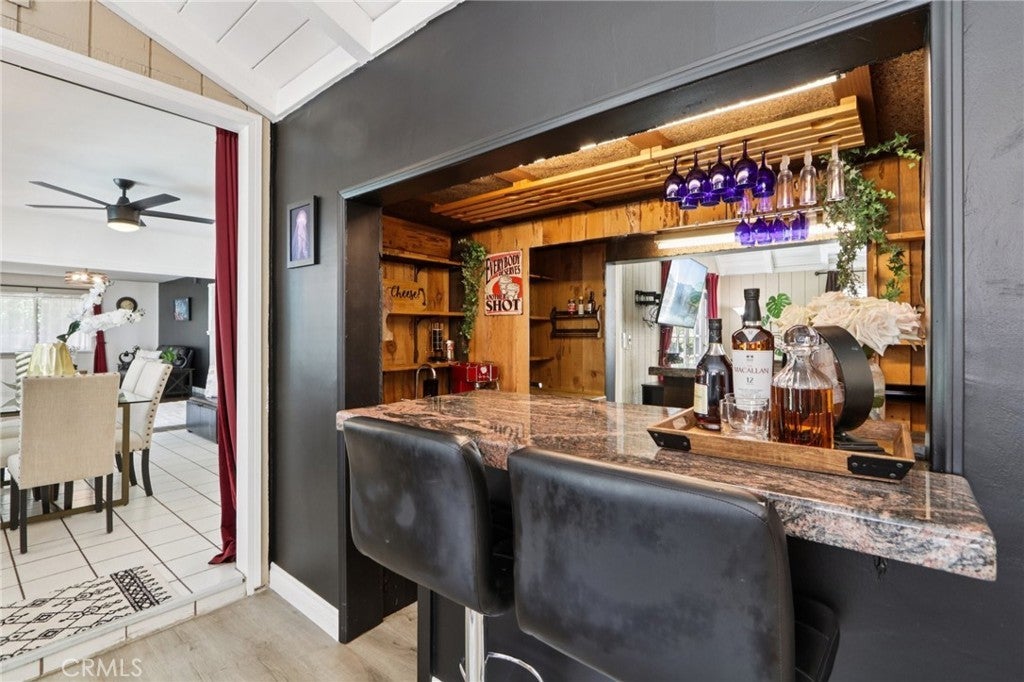 Beamed Ceilings, Wet Bar, Ceiling Fan(s), Separate/Formal Dining Room, Granite Counters, High Ceilings, Bar, Entrance Foyer