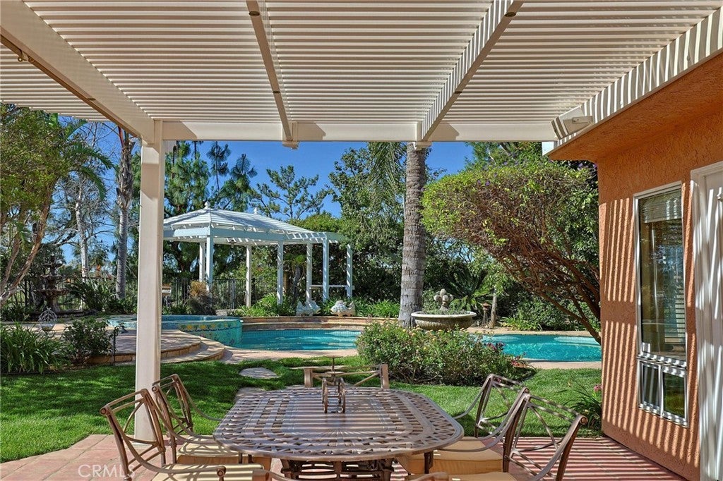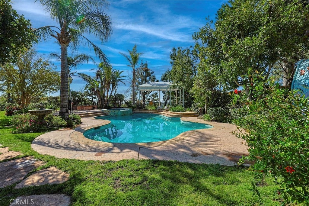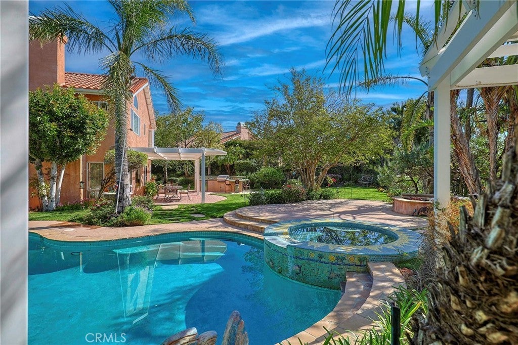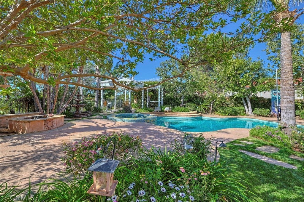 Located in the prestigious Canyon Crest neighborhood, this stunning home sits on an expansive ~16,124 sq. ft. lot and offers one of the most breathtaking backyards imaginable—complete with a lagoon-style pool and spa, fire pit, inviting conversation area, gazebo, covered patio, and an outdoor kitchen with seating, all surrounded by lush landscaping with mature trees, fruit trees (lemon, fig, pomegranate, apricot, peach), and a thriving vegetable garden. A grand double-door entry with soaring vaulted ceilings welcomes you into a spacious living room and formal dining room, ideal for both everyday living and elegant entertaining, while the expansive island kitchen flows seamlessly into the family room with serene backyard views. The luxurious primary suite features vaulted ceilings, beautiful city light views, a spa-like en-suite bath with a separate tub and shower, and generous walk-in closets, and a convenient downstairs bedroom and bathroom make this home ideal for guests or multi-generational living. Additional upgrades include recently replaced A/C and heating systems for enhanced comfort and efficiency. Just a short walk to the HOA’s private dog park and scenic hiking trails leading to Mission Peak in O’Melveny Park, and located near top-rated schools, this home offers the perfect blend of lifestyle, comfort, and entertainment, while by night the backyard transforms into a magical retreat with accent lighting, fountains, a glowing pool and spa, and built-in surround sound—truly an entertainer’s dream.