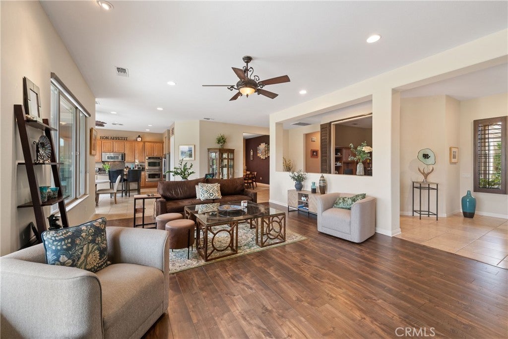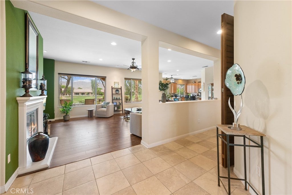 Resort-Style Living on a Premium Lot in Sun City Shadow Hills Located within the prestigious 55+ active adult community of Sun City Shadow Hills, this beautifully appointed home offers 2 bedrooms, a versatile den/office, 2.5 bathrooms, and 2,610 square feet of thoughtfully designed living space. A water-wise, desert-landscaped front yard and a welcoming entry set the tone for the comfort and quality found throughout the home. Inside, the bright, open layout is enhanced by tile flooring in the main living areas and stylish laminate in both bedrooms and the den, creating a perfect balance of elegance and comfort. The well-designed kitchen is ideal for everyday living and entertaining, featuring granite countertops, stainless steel appliances, a gas cooktop, double ovens, and generous cabinetry. The spacious primary suite serves as a private retreat, complete with a spa-inspired bathroom offering dual vanities, a step-in shower, and a relaxing soaking tub. The guest bedroom includes a convenient walk-in closet, ensuring ample storage for visitors. A dedicated indoor laundry room adds everyday convenience, while the attached three-car garage provides abundant space for vehicles and a golf cart. Step outside to the covered patio and enjoy the low-maintenance desert-landscaped backyard with serene golf course views—perfect for morning coffee, evening gatherings, or simply unwinding in the desert breeze. As a resident of Sun City Shadow Hills, you will enjoy a vibrant resort-style lifestyle with access to championship golf courses, elegant clubhouses, state-of-the-art fitness centers, sparkling pools and spas, tennis and pickleball courts, and a wide array of clubs and social activities designed to inspire connection and enjoyment.