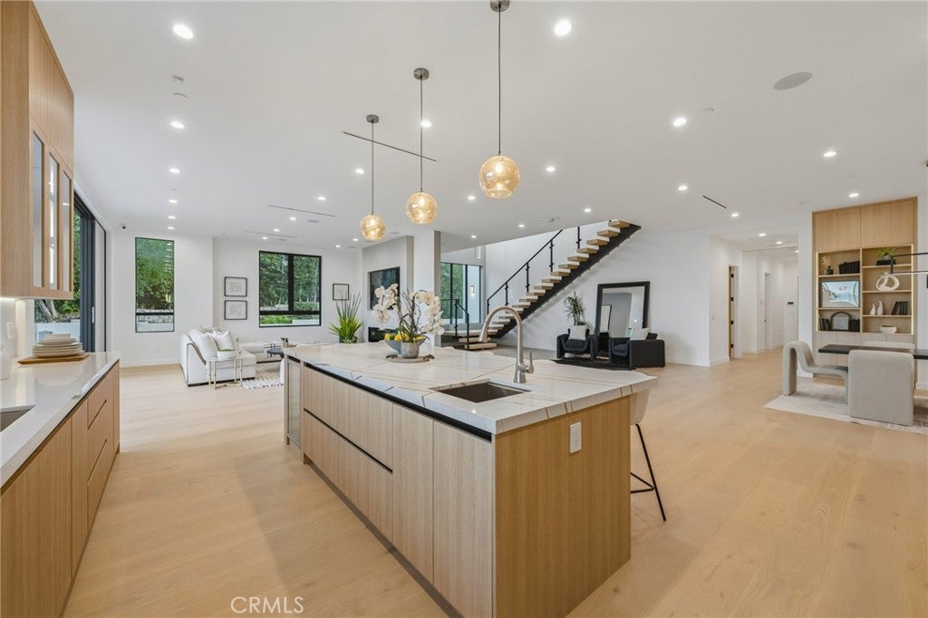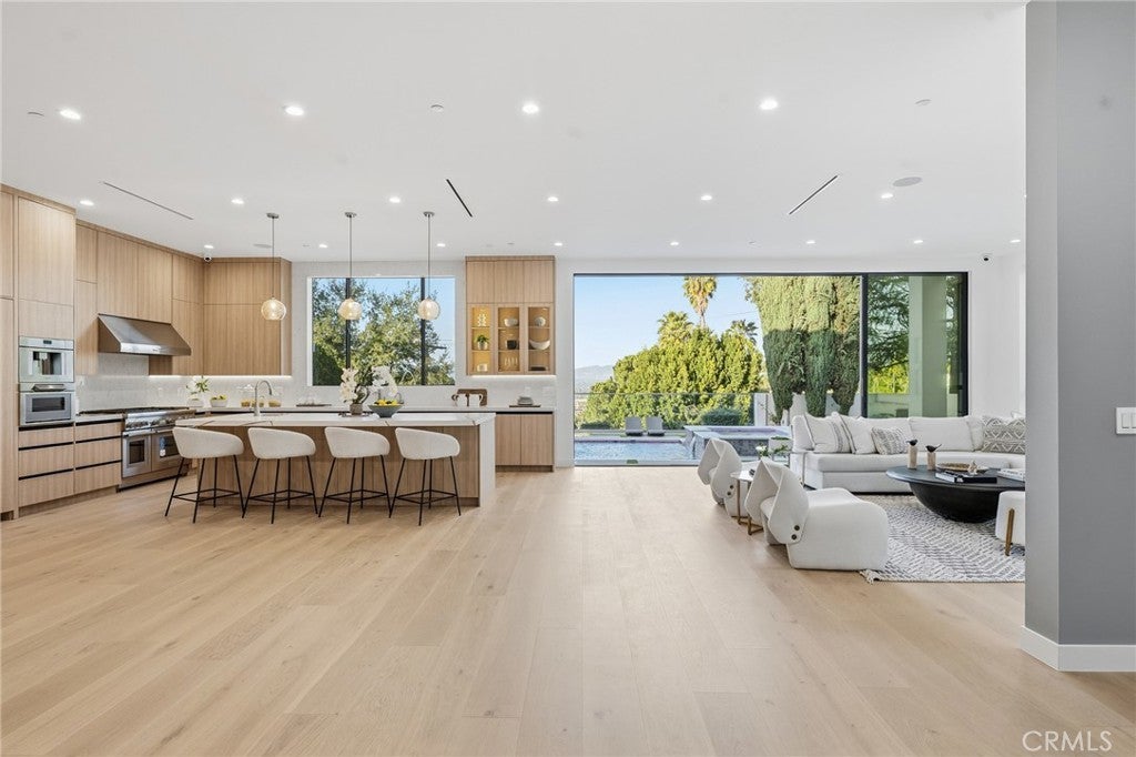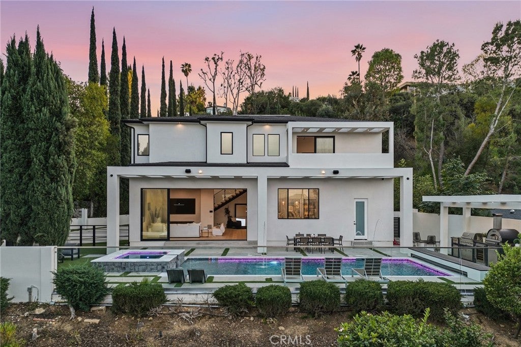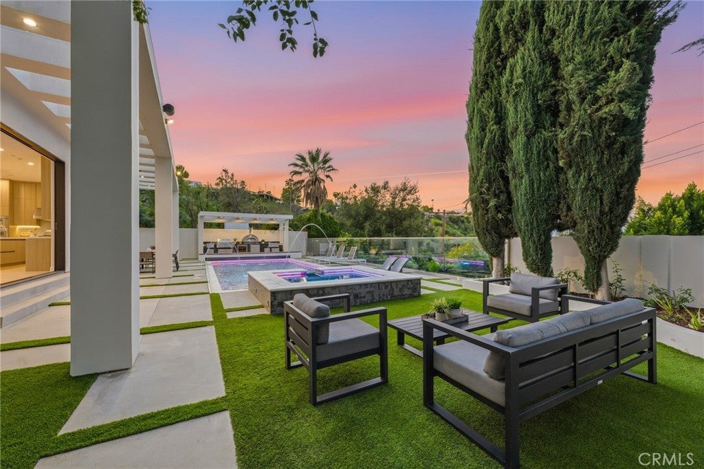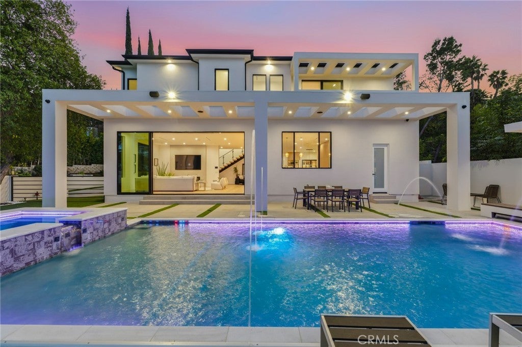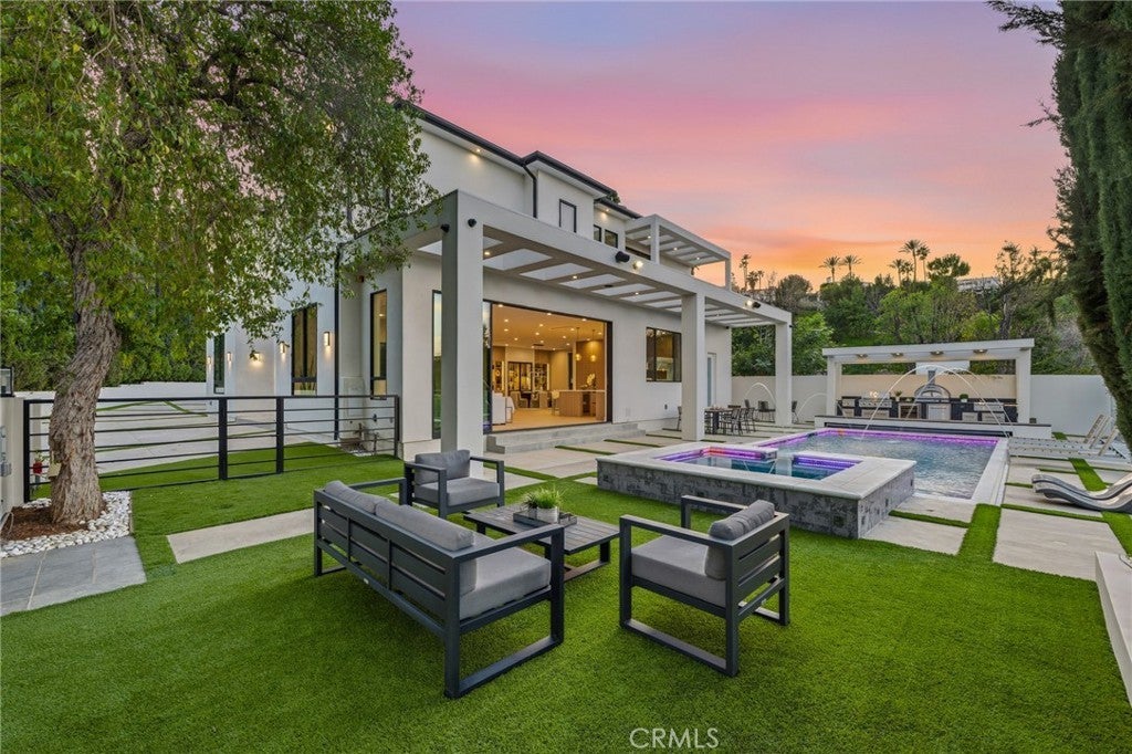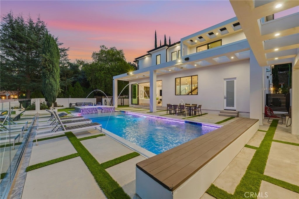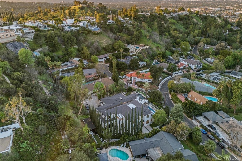 Ultra-private gated Encino compound offering rare seclusion, security, and refined design on an expansive over 18,500 Sqft lot. Fully enclosed with security fencing and mature landscaping, the property delivers complete privacy from every direction while capturing tranquil valley and green nature views. From the moment you enter through the gates, the residence feels intentionally removed from the outside world quiet, serene, and thoughtfully composed. Designed by one of Los Angeles’ most respected interior designers, the approx. 5,717 Sqft home showcases soaring ceilings, abundant natural light, and an open-concept layout that balances architectural presence with warmth and livability. High-end finishes, custom carpentry, and curated materials define every space, creating a cohesive aesthetic that feels luxurious yet inviting. The floor plan offers five generously sized bedroom suites, a private office ideal for focused work, a dedicated theater, and an oversized walk-in pantry designed for daily ease and entertaining. The primary suite serves as a private retreat with spa-inspired bath, expansive steam shower, and serene outlooks framed by lush greenery. Outdoor living is designed as a true extension of the home, featuring a resort-style pool and spa with sweeping views and total privacy, fire pit, and a fully equipped outdoor kitchen with BBQ, pizza oven, cooktop, refrigerator, and temperature-controlled beverage cooler. An additional approx. 300 SF outdoor gym and storage/doghouse add versatility. Smart home technology enhances comfort, security, and efficiency throughout. A large three-car garage and gated driveway provide ample secure parking. A rare Encino offering that prioritizes privacy, design, and lifestyle where luxury feels intentional and value is found in what cannot be replicated.