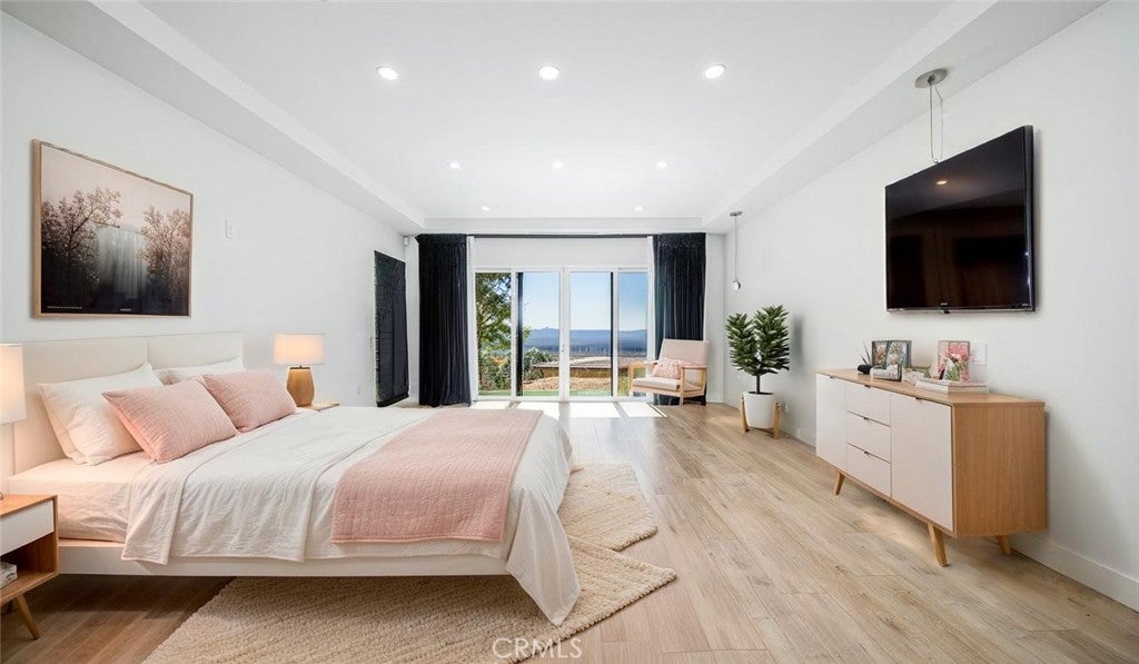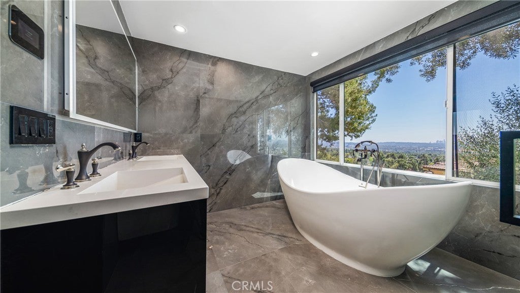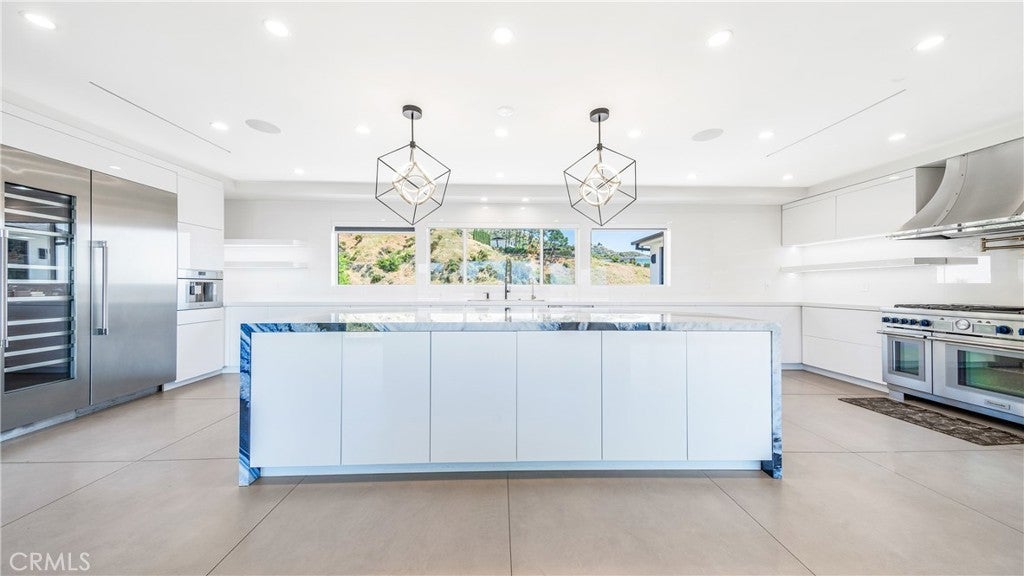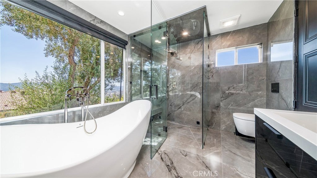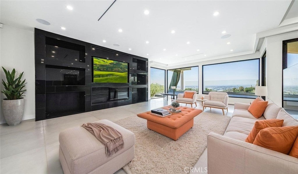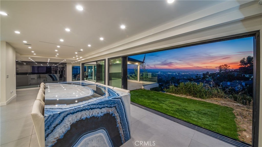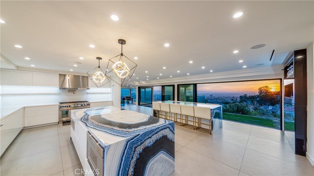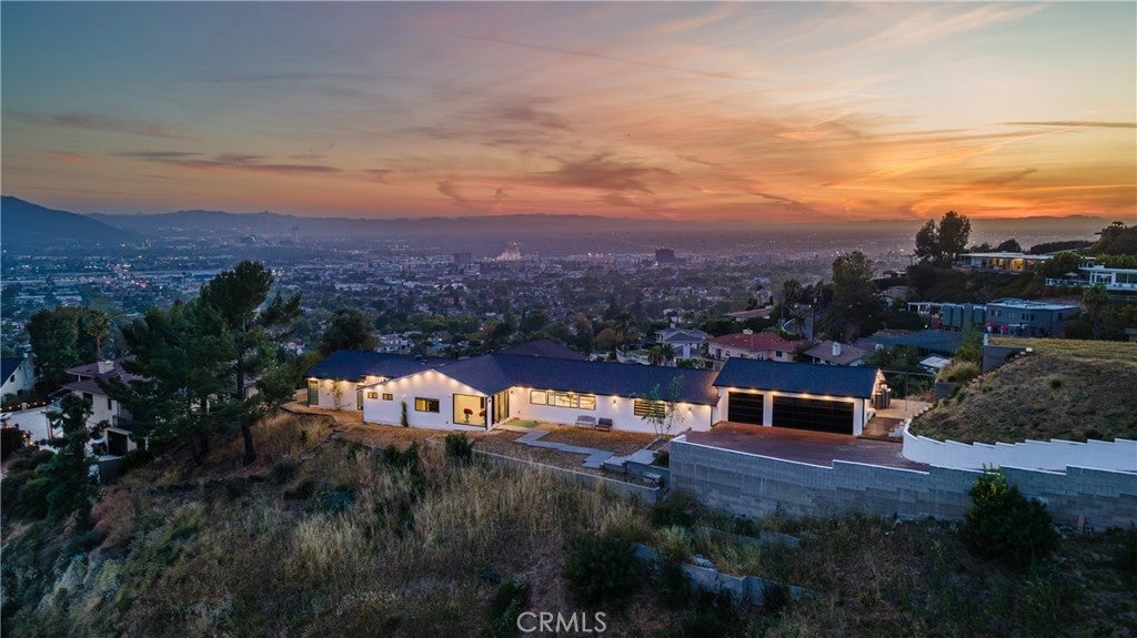 Perched atop a private one-acre hilltop lot in Burbank, this architectural masterpiece has been meticulously remodeled from top to bottom, offering 3,800 square feet of ultra-luxury living space with breathtaking 180-degree views of the city and canyon. No expense was spared in this comprehensive renovation, which includes a brand-new roof, updated electrical and plumbing, a tankless water heater, a whole-house water softener, and dual central AC systems for precision climate control. The heart of the home is a world-class chef’s kitchen featuring dual center islands with dramatic waterfall edges, a dedicated walk-in pantry, and a full suite of professional-grade Thermador appliances, including a six-burner stove, integrated refrigerator, separate freezer, and wine cooler. A separate, spacious laundry room adds to the home's thoughtful functionality. The open-concept floor plan flows into a sophisticated step-down family room anchored by a large fireplace and oversized windows. In the living room, massive sliding glass doors retract completely to bring the outside in, leading to an expansive entertainer’s patio. This outdoor oasis is equipped with integrated in-ceiling heaters, allowing you to enjoy the glittering city lights in total comfort year-round. The home offers four generous bedrooms and four and a half spa-caliber bathrooms. The primary suite serves as a massive private sanctuary with stunning city vistas, a grand walk-in closet, and a designer master bath equipped with double sinks, a deep soaking tub, and a custom steam shower. Representing the pinnacle of privacy and prestige, this estate delivers "new construction" quality and a lifestyle of elevated modern luxury.