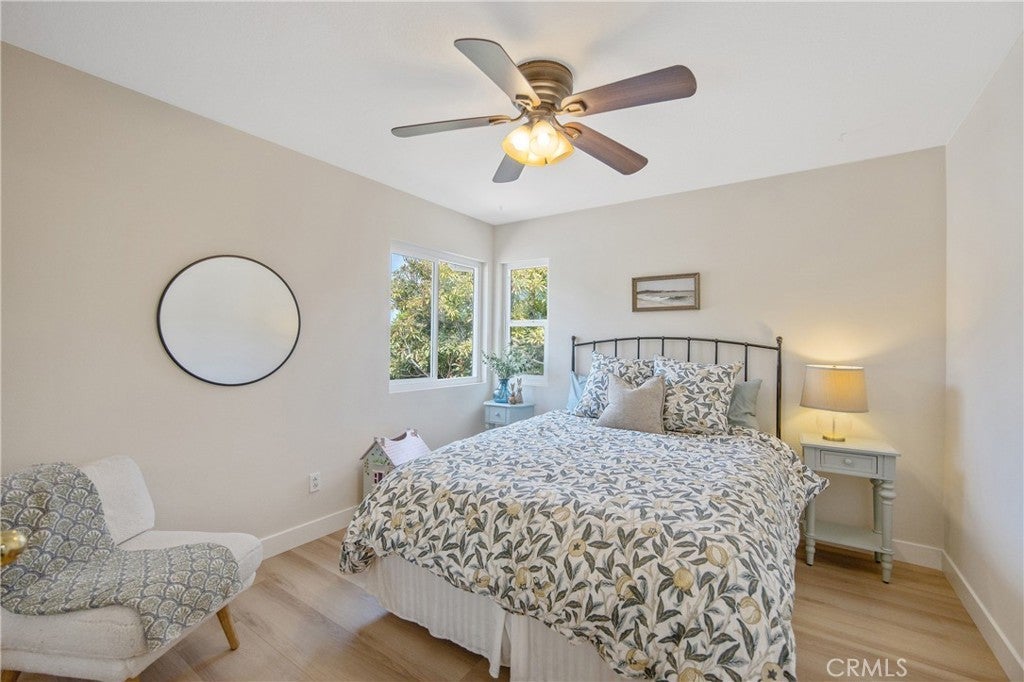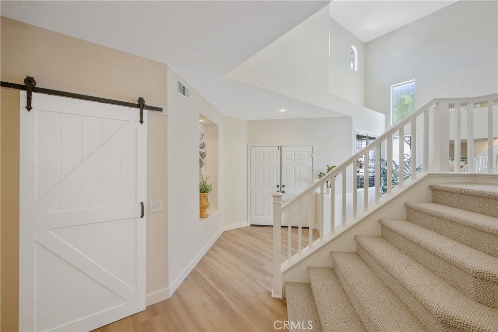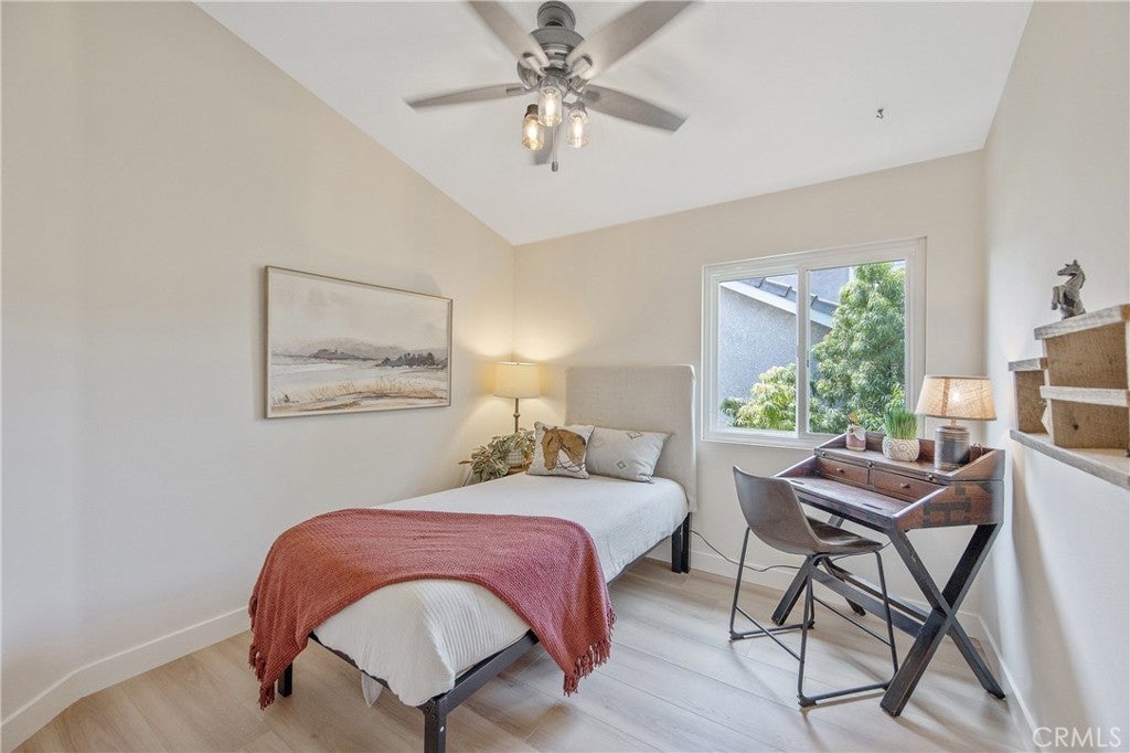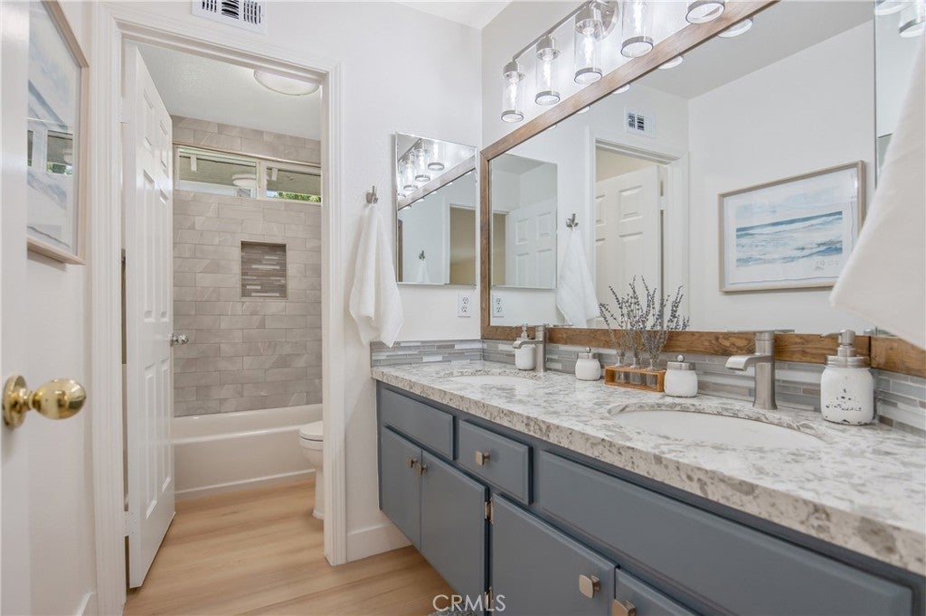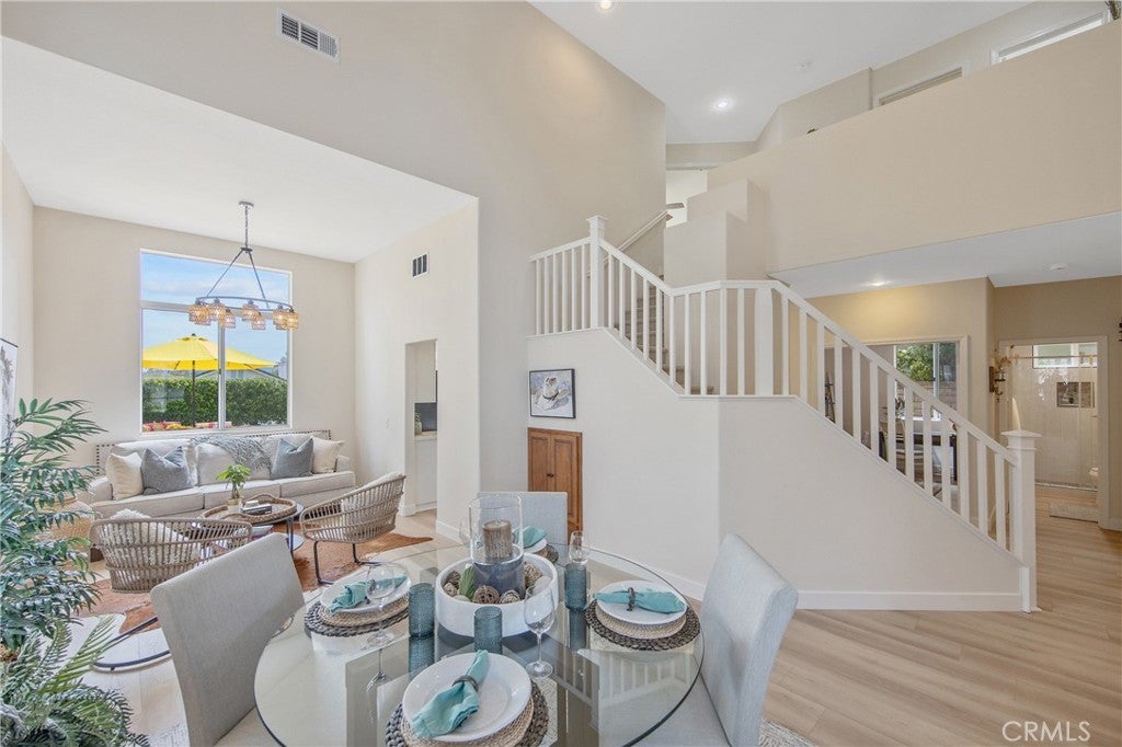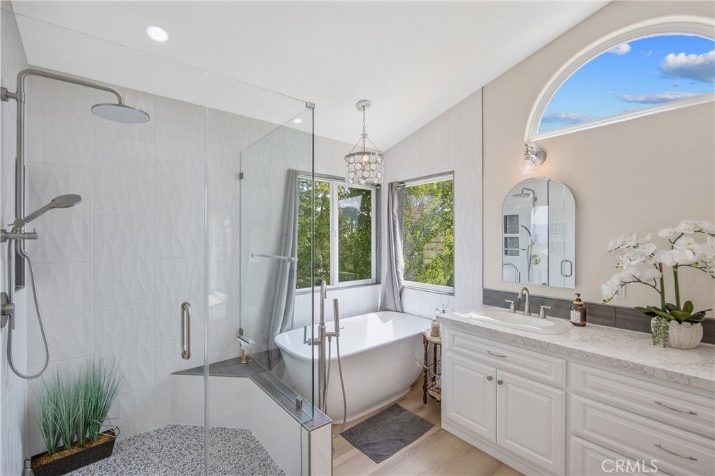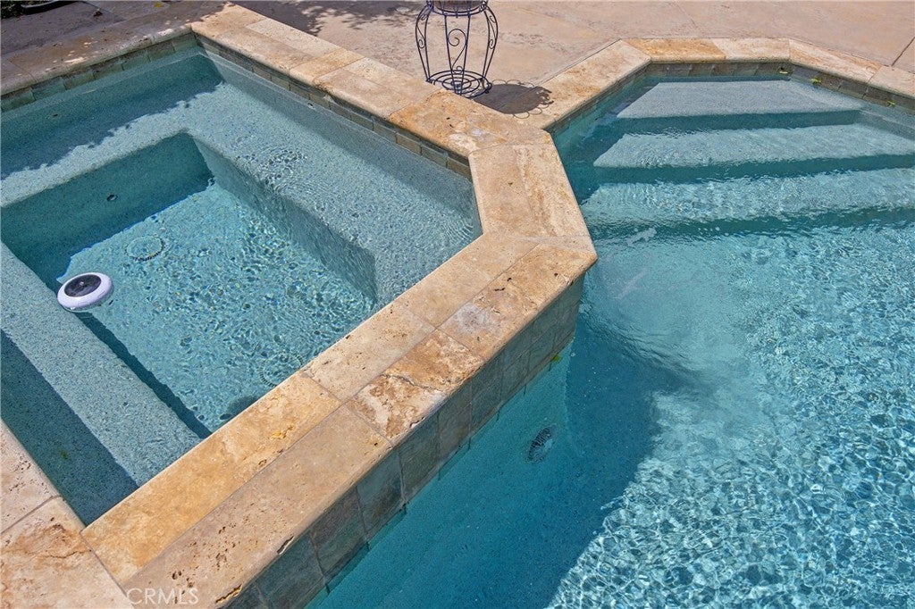 Welcome to this beautifully renovated, turnkey home nestled in the heart of Stevenson Ranch on a quiet cul-de-sac, offering privacy, stunning views, and a truly tranquil setting. This bright and airy residence features soaring vaulted ceilings and abundant natural light, creating an open and inviting atmosphere throughout. Thoughtfully updated, the home showcases new luxury vinyl plank flooring, fresh interior paint, updated baseboards, and stylish new light fixtures that bring a modern, cohesive feel. The kitchen features updated Caesarstone countertops, while all three full bathrooms have been tastefully remodeled to reflect both comfort and contemporary design. New windows throughout—including a new sliding door in the primary bedroom—enhance both natural light and energy efficiency. The flexible floor plan offers four spacious bedrooms upstairs plus an additional bedroom downstairs which is currently used as an office. Or use it as a bonus room or workout room. Downstairs also has a full bath perfect for guests or inlaws. The primary suite includes a walk-in closet and a private Trex deck—perfect for enjoying a cup of coffee on peaceful mornings and taking in the views. Step outside to your private entertainer’s backyard, complete with a custom Pebble Tec saltwater pool and spa, an in-ground fire pit, and mature landscaping that provides beauty and seclusion. Enjoy sun-filled mornings and shaded afternoons in this tranquil outdoor setting—ideal for both relaxing and hosting. Additional highlights include 32 fully paid-for solar panels, a new water heater, and a three-car garage with enclosed overhead storage. This home seamlessly blends modern upgrades, comfort, and exceptional indoor-outdoor living—ready for you to move in and enjoy.