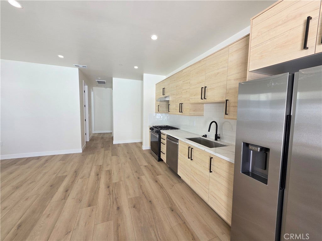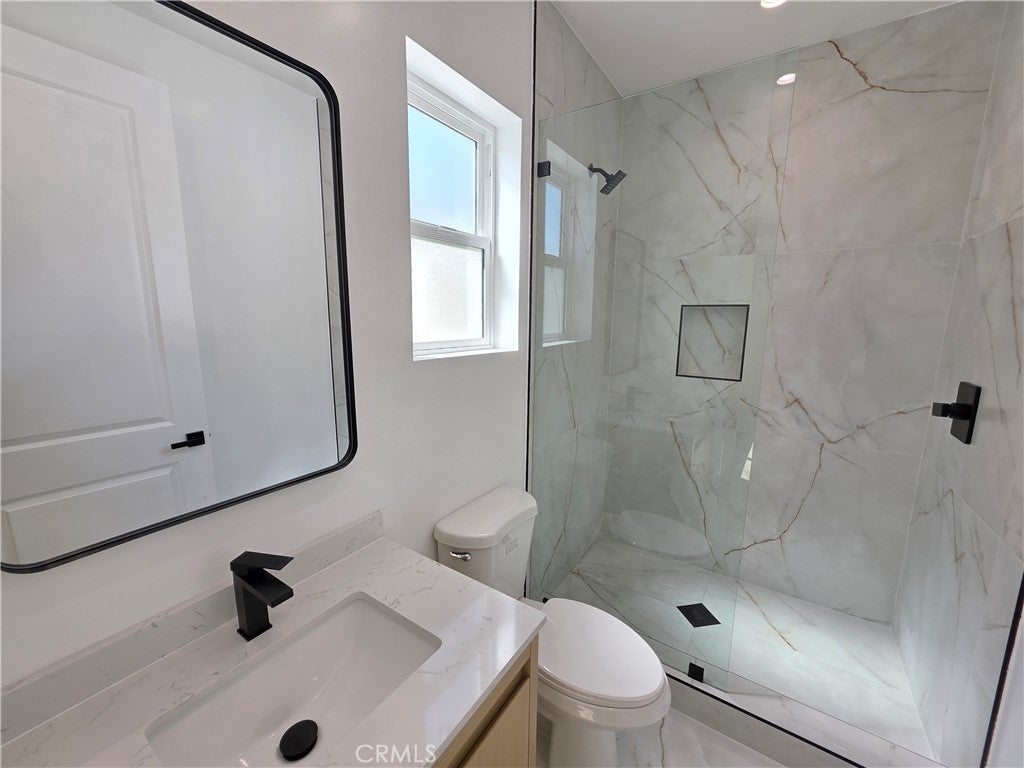New construction modern home with SOLAR, with 3 additional units on the lot, this brand-new construction offers modern living with high-end finishes throughout, featuring a bright and spacious open-concept layout with wide-plank flooring, recessed lighting, and abundant natural light. The sleek contemporary kitchen is equipped with quartz countertops, custom cabinetry, and stainless steel appliances, perfect for everyday living and entertaining. The three bedrooms offers great natural light and ample closet space, while the beautifully designed bathrooms showcases designer tile, a glass-enclosed walk-in shower, and modern fixtures. Enjoy a private gated entrance with a large paved driveway and direct access to your own oversized 2-car garage, a rare find. Built with attention to detail and designed for comfort, this home offers the perfect combination of privacy, style, and functionality, ready for immediate move-in.