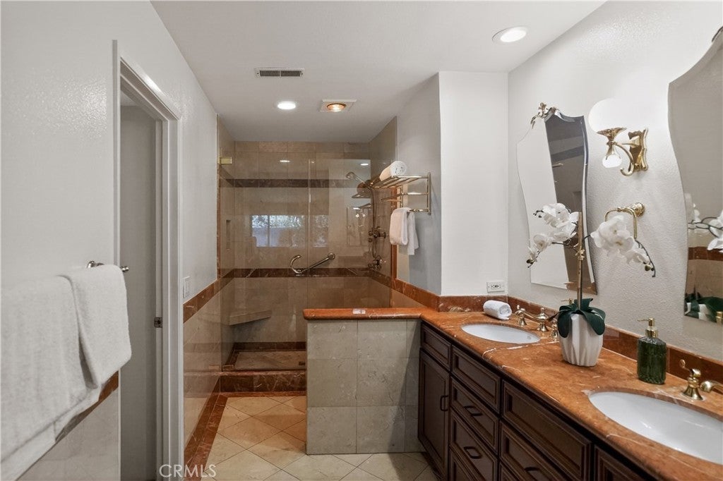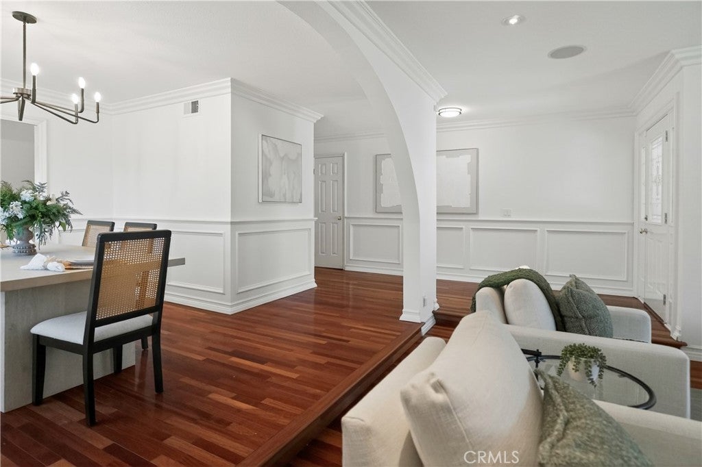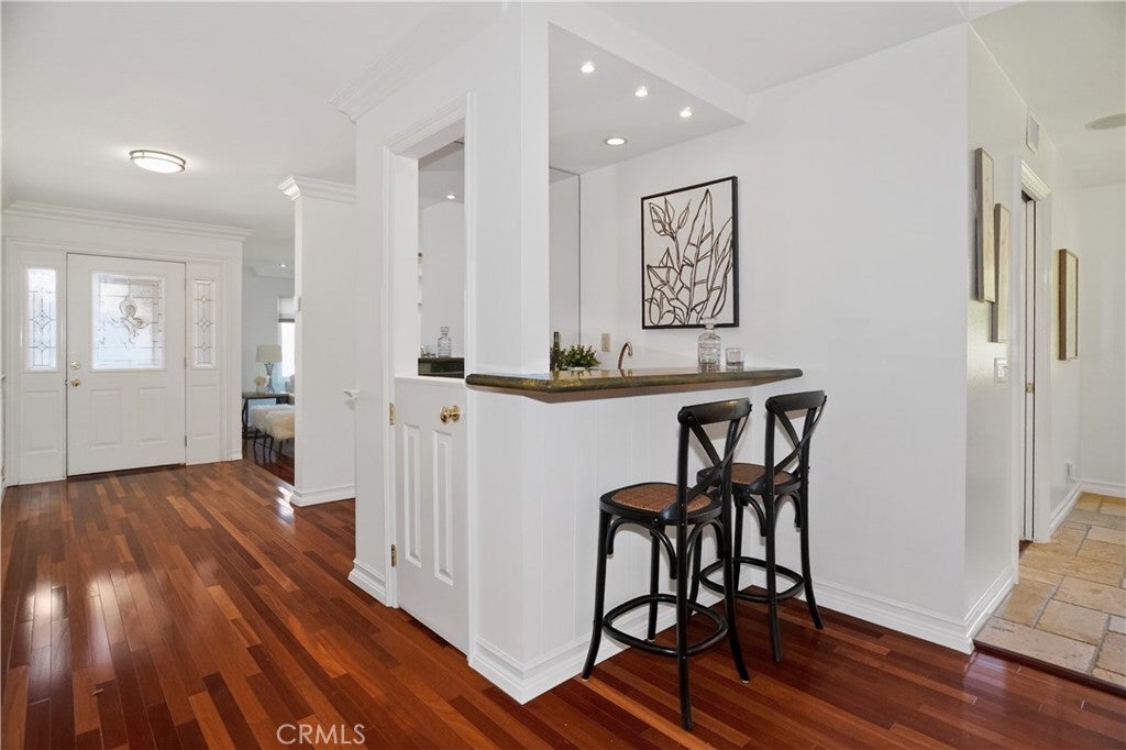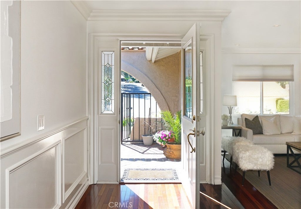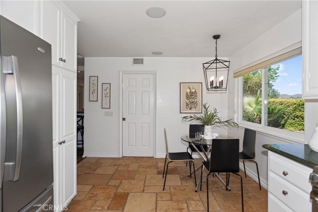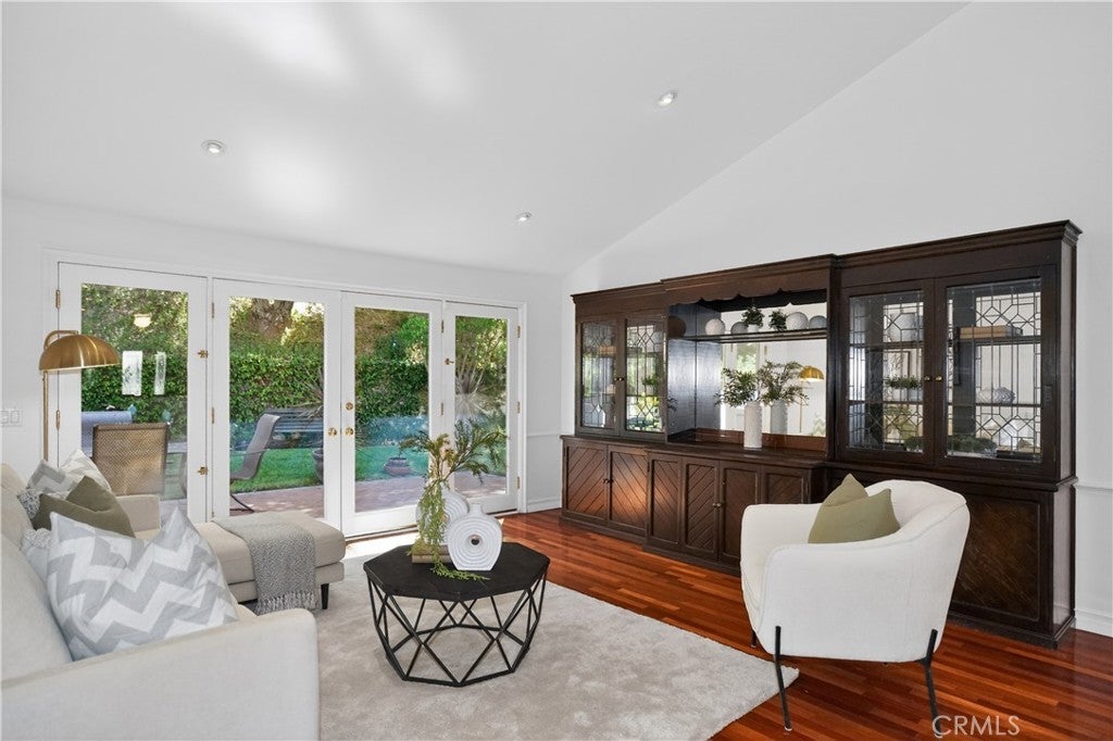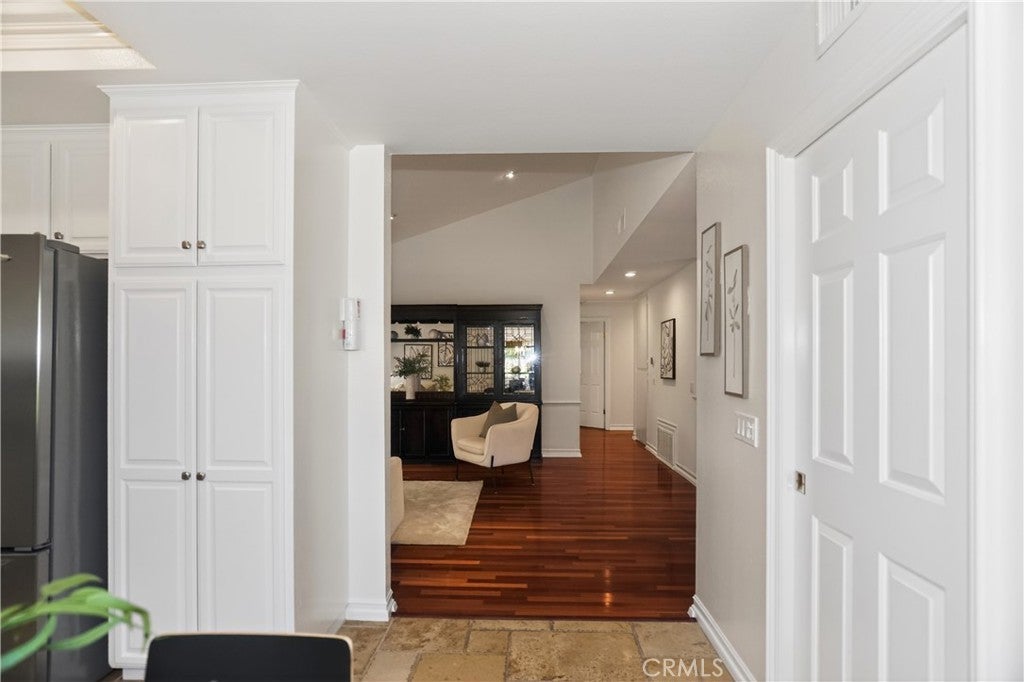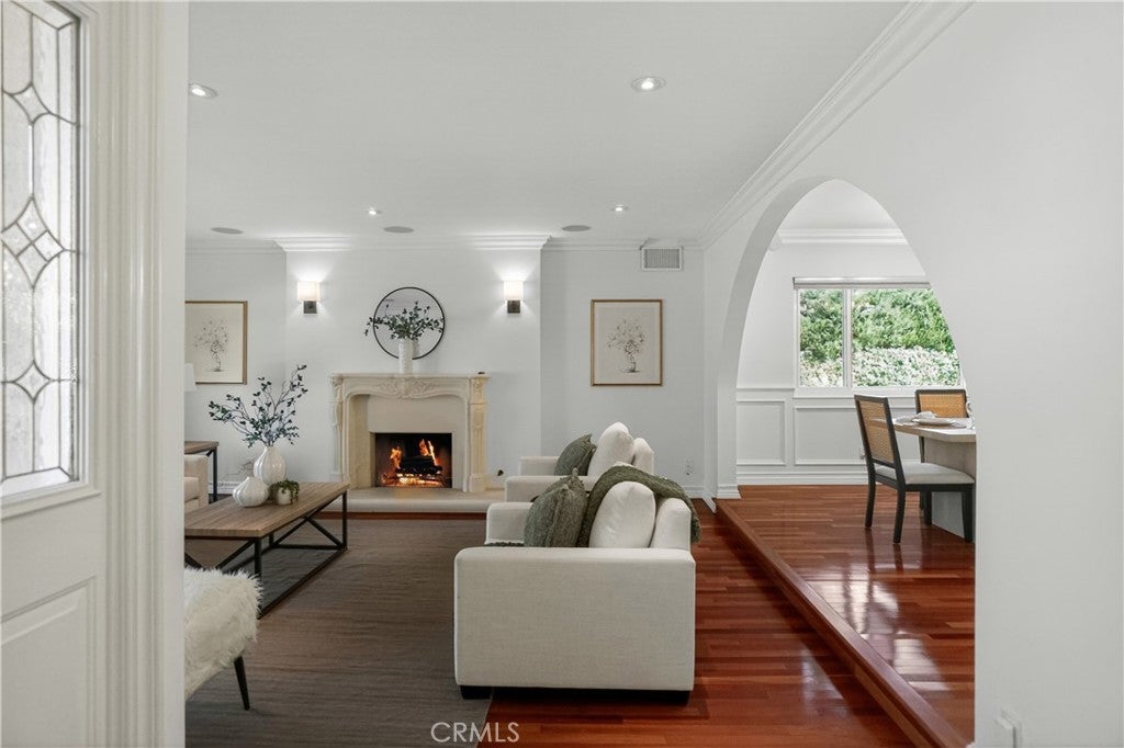 Welcome to this unique opportunity in the highly sought-after Fountainwood community of Agoura Hills. This exceptional single-story home offers over 2,100 square feet on an expanded lot exceeding 40,000 square feet—a combination of size, privacy, and potential that is seldom available. Ideally located on Carell Avenue, one of Fountainwood’s most desirable streets, the property enjoys wider spacing and no backyard neighbors, creating a level of privacy that is increasingly hard to find. From the moment you arrive, the home’s gorgeous curb appeal immediately stands out. Enter through an inviting atrium into a bright, flowing floor plan. Rich cherry wood flooring, custom moldings, baseboards, paneling, and wainscoting—crafted by a local artisan—add warmth and character throughout. The step-down living room is anchored by a striking limestone decorative fireplace, creating a sophisticated yet comfortable focal point. The kitchen features travertine floors, granite countertops, oak cabinetry, stainless steel appliances, and just outside the kitchen, a walk-in bar with counter seating—ideal for everyday living and entertaining. The spacious primary suite includes dual closets, including a walk-in, and a marble bath. Secondary bedrooms are well-proportioned, with a hall bath offering a relaxing spa tub. The backyard is where this home truly separates itself. Backing to open space, it offers exceptional privacy and tranquility. The oversized lot provides a rare opportunity to build a view deck on the hillside—unlocking what could become one of the most compelling view properties in Agoura Hills. The brick patio with awning is a perfect outdoor sanctuary, and is a blank canvas for a future pool or custom outdoor retreat. Additional features include owned solar panels (offsetting electric costs), smooth ceilings, recessed lighting, built-in garage storage, fresh paint, a tile roof, and a concrete driveway designed for long-term, low-maintenance living. Fountainwood is known for its peaceful setting, strong sense of community, and access to award-winning schools within the Las Virgenes Unified School District. Surrounded by scenic mountains, hiking and biking trails, and parks, yet just minutes to shopping, dining, the freeway, and the beach — this location offers the best of both convenience and lifestyle. The fire in the decorative fireplace was added virtually.