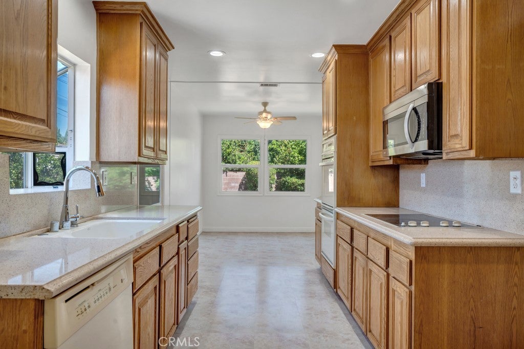 Welcome home to this beautifully updated 3-bedroom, 2-bath residence nestled in a desirable Granada Hills neighborhood. Freshly painted and filled with warmth, the home features beautiful wood and tile flooring throughout. The updated kitchen offers wood cabinetry, granite countertops, and a full suite of appliances including a double oven, stove, microwave, dishwasher, and optional refrigerator—perfect for everyday living and entertaining. Enjoy a spacious and inviting layout with a comfortable living room and a separate dining area ideal for gatherings. All three bedrooms are nicely sized, and both bathrooms have been tastefully updated. Step outside to a private backyard, perfect for relaxing or entertaining. Additional highlights include a 2-car garage and a prime location close to local restaurants, shopping, and entertainment.