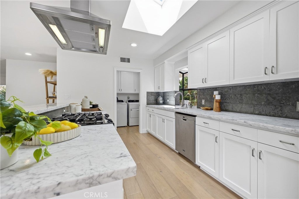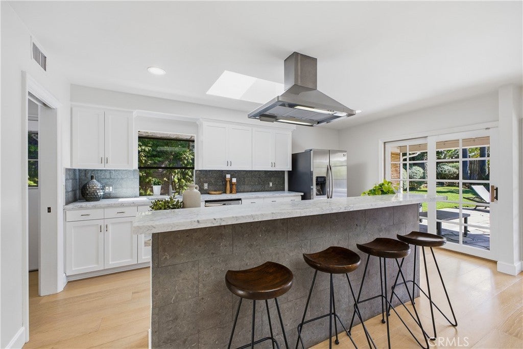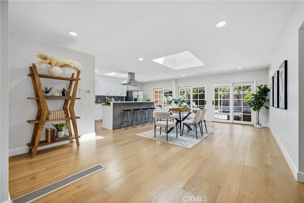 Located on a quiet cul-de-sac, this tastefully updated single-story home offers the perfect blend of comfort, style, and convenience. Designed with an open concept layout filled with natural light, the home features a formal entry, a spacious living room with a fireplace, and a family/dining area that flows seamlessly into a modern kitchen with Carrara marble countertops and stainless steel appliances. The primary suite features a walk-in closet and en-suite bath with a spa tub and separate shower. Step outside to a private backyard oasis with a sparkling pool with waterfall feature, a spa, two grassy areas, and a large covered patio, perfect for year-round entertaining. Recent upgrades include new hardwood floors, skylights, roof and insulation, sewer line, remodeled bathroom and replastered pool and spa. Convenient access to the Westside and Fryman Canyon, this home offers relaxed California living in a prime Studio City location.