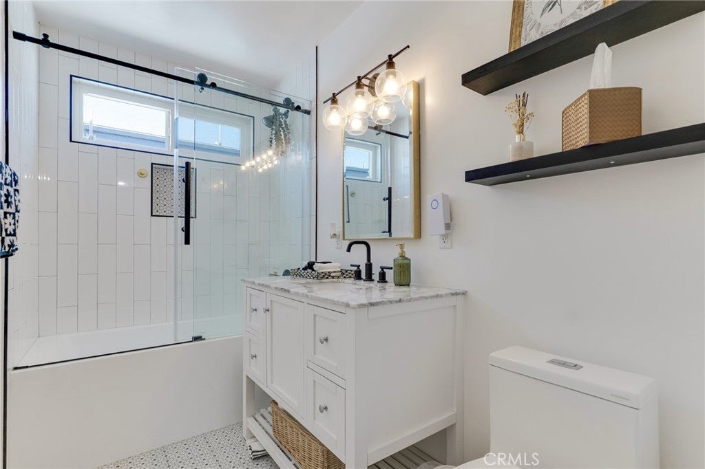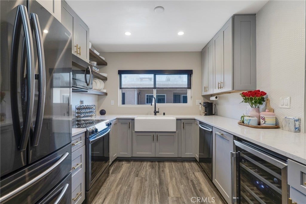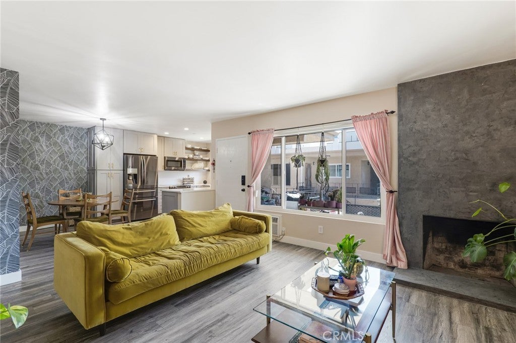 Perched on the top floor and overlooking a peaceful, landscaped courtyard, this beautifully upgraded residence offers the perfect blend of comfort, style, and location. Flooded with natural light through newer windows, the home features updated flooring and a thoughtfully remodeled kitchen designed to impress—complete with brand new sleek stainless steel appliances, recessed lighting, quartz countertops, an apron-front sink, a designer tile backsplash, and built-in wine fridge. The kitchen truly shines with abundant counter space and generous cabinetry, including rotating corner cabinets with built-in lazy Susan's and a dedicated spice rack drawer for effortless organization. The expansive living room provides a warm yet sophisticated setting, highlighted by a stylish limewashed floor-to-ceiling fireplace that is fully functional—perfect for cozy evenings or entertaining. Each room is equipped with its own AC unit for personalized comfort, while the living room and second bedroom feature blackout curtains for added privacy and restful sleep. The primary suite is a true retreat, boasting a generously sized bedroom, a fully remodeled en-suite bathroom with a striking glass-enclosed black tile shower and spa-inspired stone flooring, as well as dual vanities with his-and-hers sinks and mirrors. The oversized closet is exceptionally well-designed with two levels of storage, including a dedicated section for shoes and handbags. A second spacious bedroom offers its own large closet and access to a versatile enclosed balcony with tile flooring—perfect for extra storage, a greenhouse, or a cozy home office. Both bedrooms are generously sized and offer flexible living options. This unit has an enclosed patio that is AC controlled. Additional highlights include a modern in-unit washer and dryer, and a highly desirable location just minutes from the vibrant dining and shopping scenes along Ventura Boulevard, as well as the popular neighborhoods of Studio City, Sherman Oaks, and the NoHo Arts District. Enjoy easy access to the 101 and 170 freeways, walking distance to grocery stores, restaurants, and a nearby doggy daycare. Plus, you’re just a short drive from Universal Studios Hollywood and Burbank. Fully remodeled high end 2+2 unit you will not be disappointed. Great area next to a lot of happening places in Studio City. Washer and Dryer in Unit.