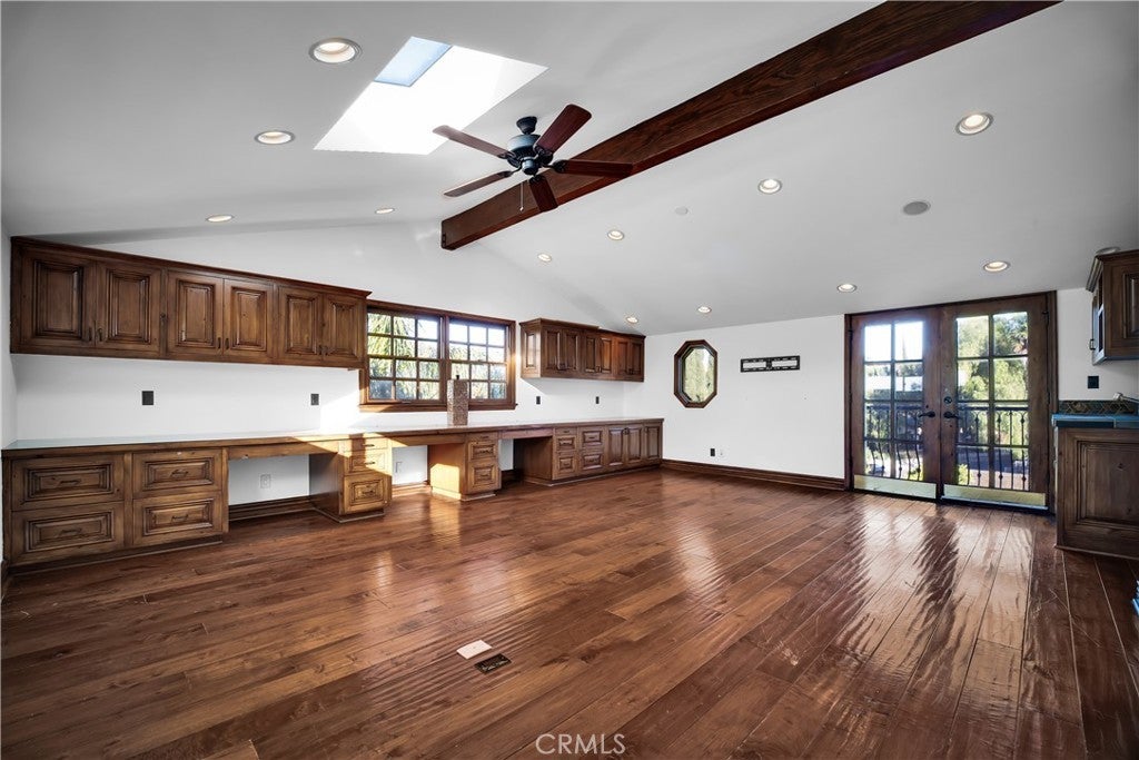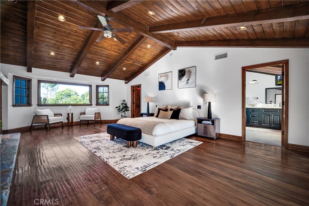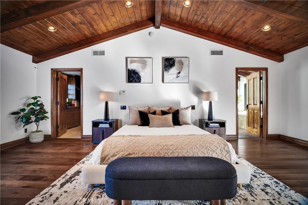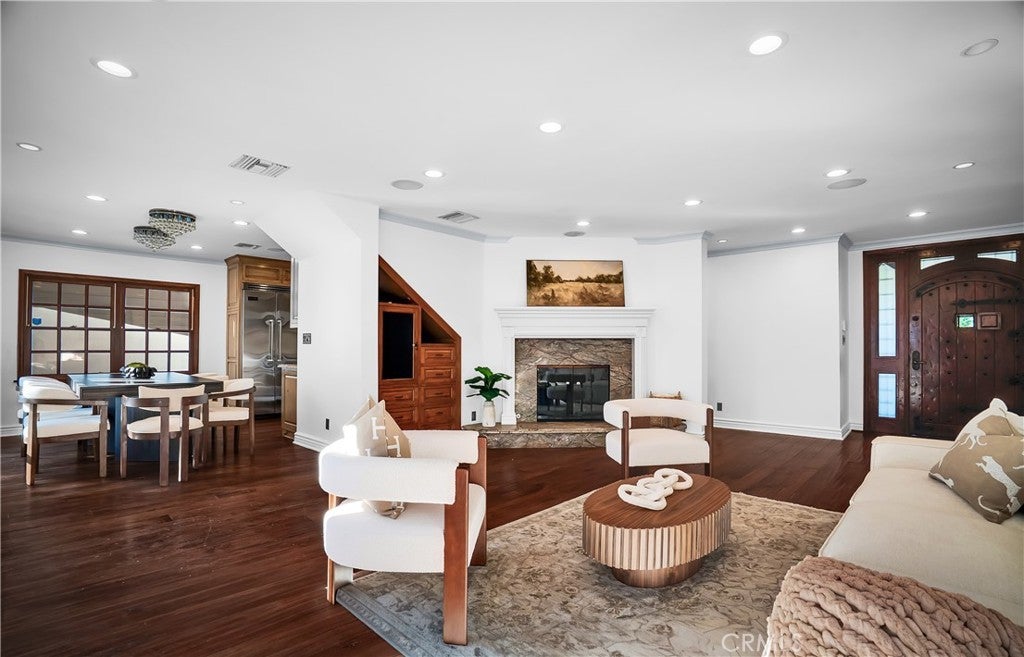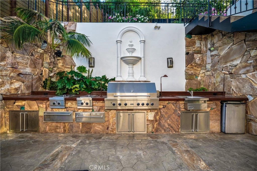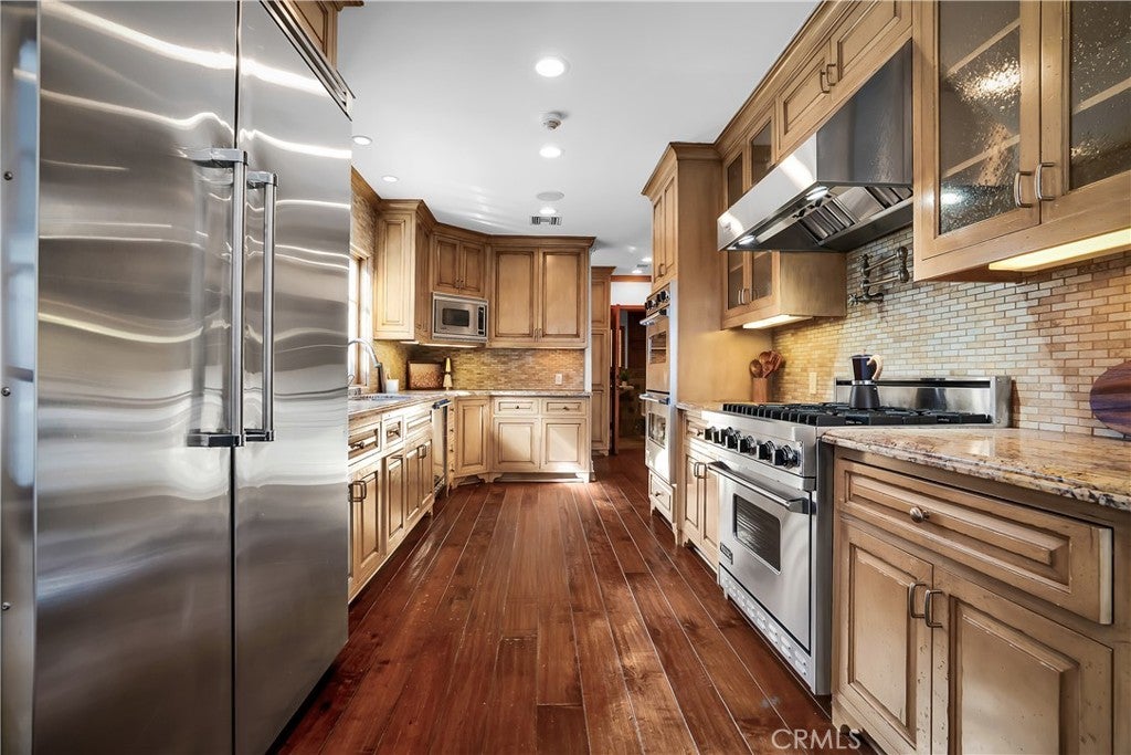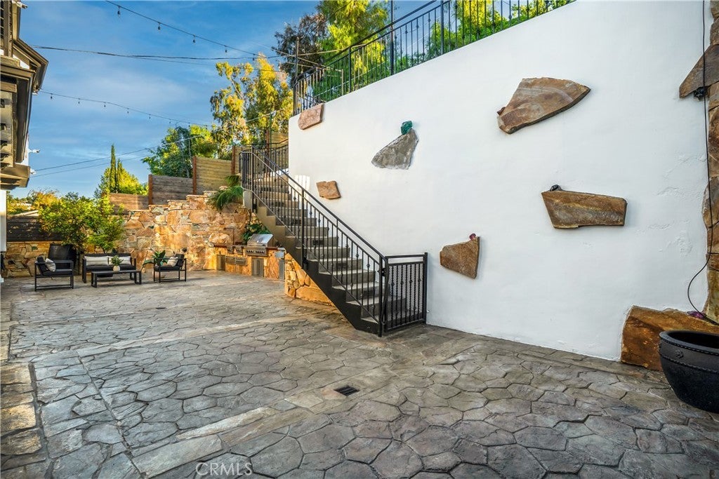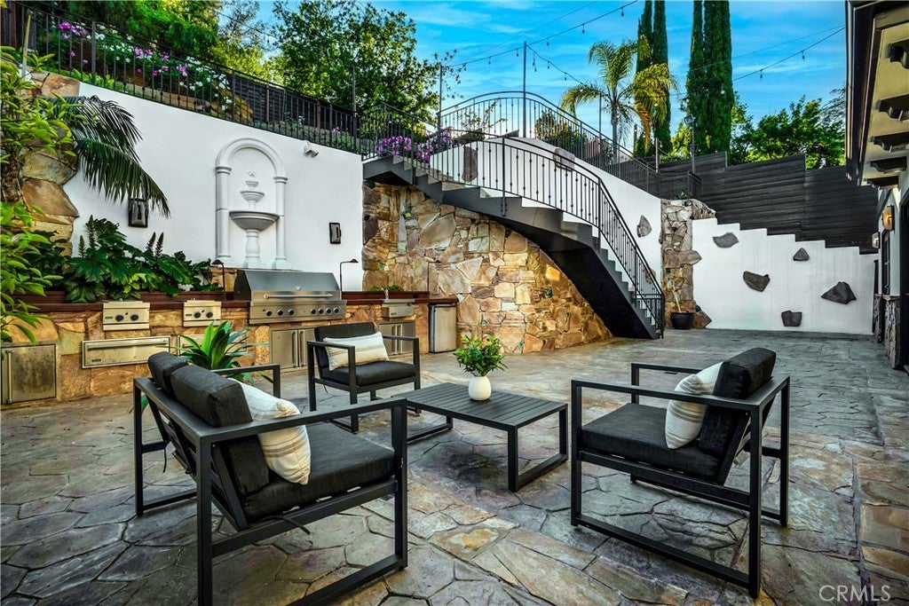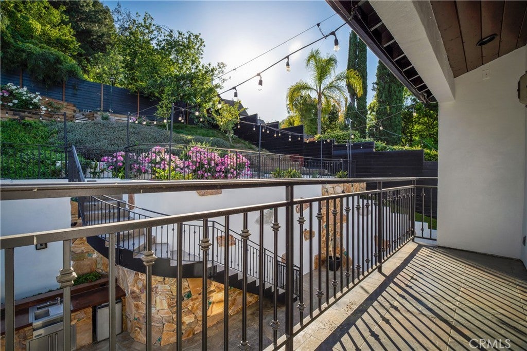 Welcome to this exceptional residence located South of the Boulevard in one of Woodland Hills’ most desirable pockets. Offering 5 bedrooms plus 2 versatile bonus rooms, this expansive home is designed for refined living and effortless entertaining. One of the bonus spaces is perfectly suited for a private theater, game room, or custom retreat the possibilities are endless. The light-filled living room opens seamlessly to a private, resort-style backyard featuring a built-in BBQ island and a multi-level design with an upper deck capturing stunning valley views ideal for both entertaining and relaxation. A formal dining area flows into a beautifully appointed kitchen showcasing premium Viking appliances. Additional features include a walk-in wine cellar, a spacious 3-car garage with built-in attic storage, and abundant storage throughout. Recently refreshed with interior and exterior paint, and complemented by newly installed, fully paid-off solar. Rich Brazilian wood flooring and high-end craftsmanship elevate the home’s overall aesthetic. Ideally positioned near premier shopping, dining, convenient 101 freeway access, and just a short drive to Malibu beaches via scenic Topanga Canyon.