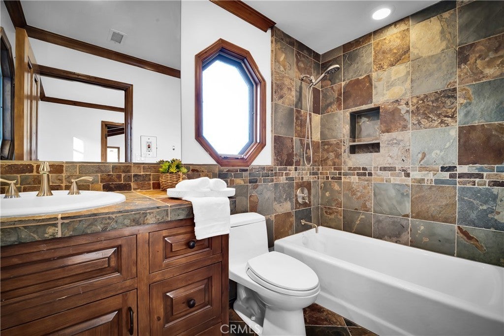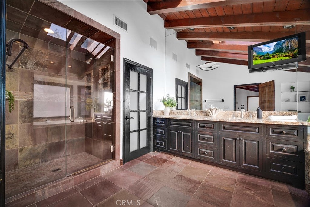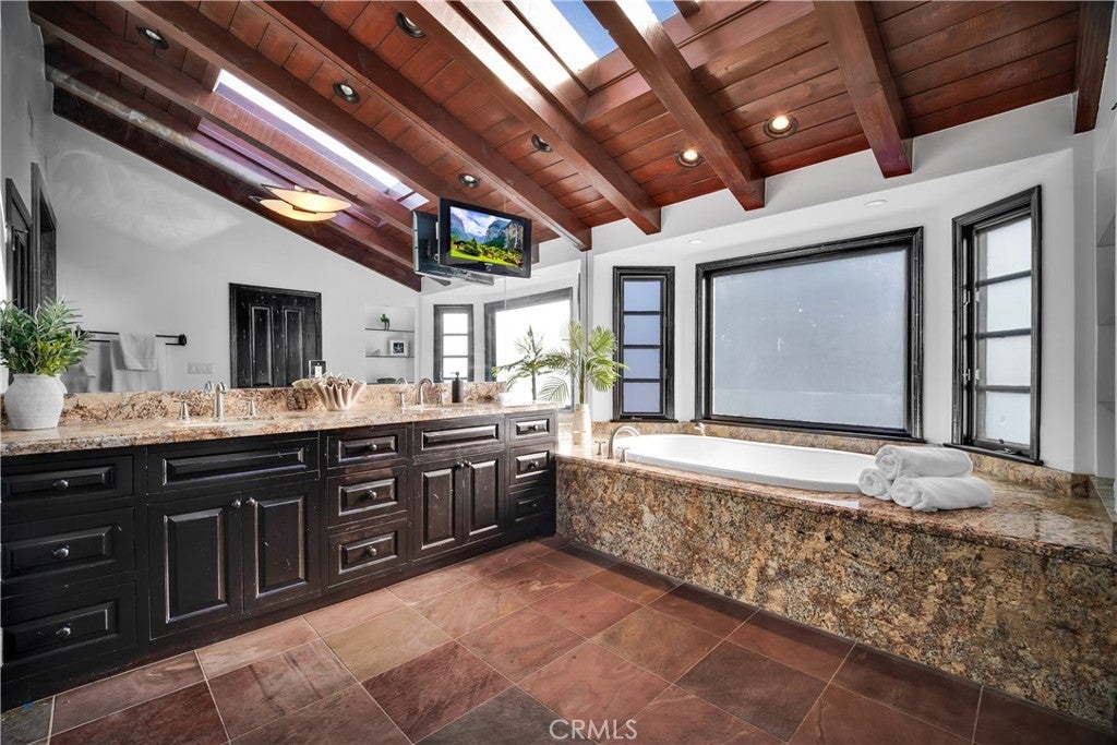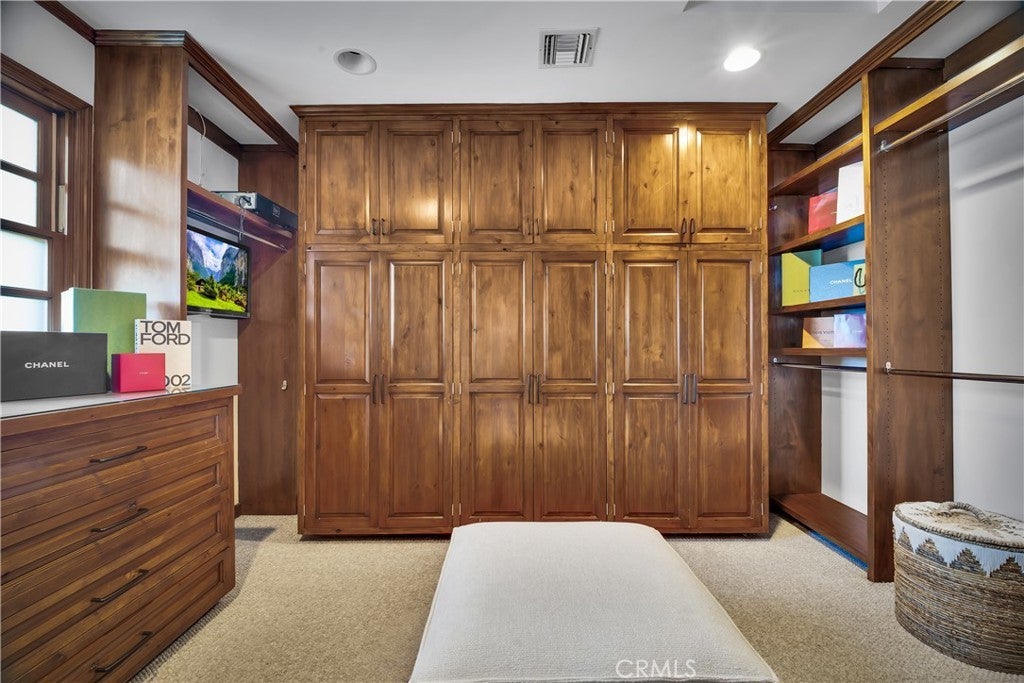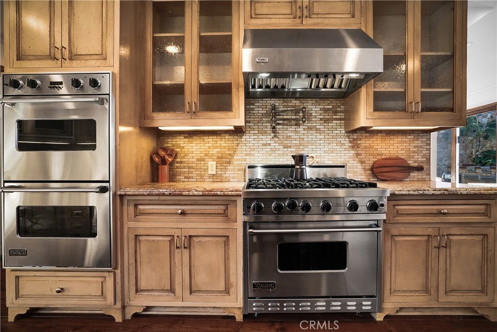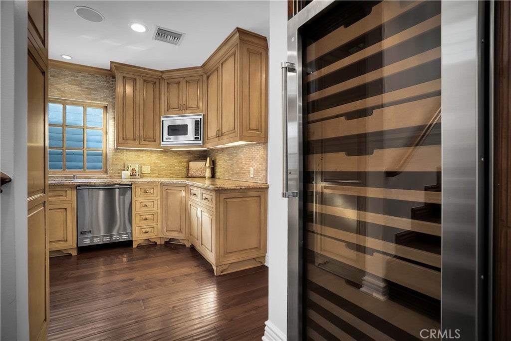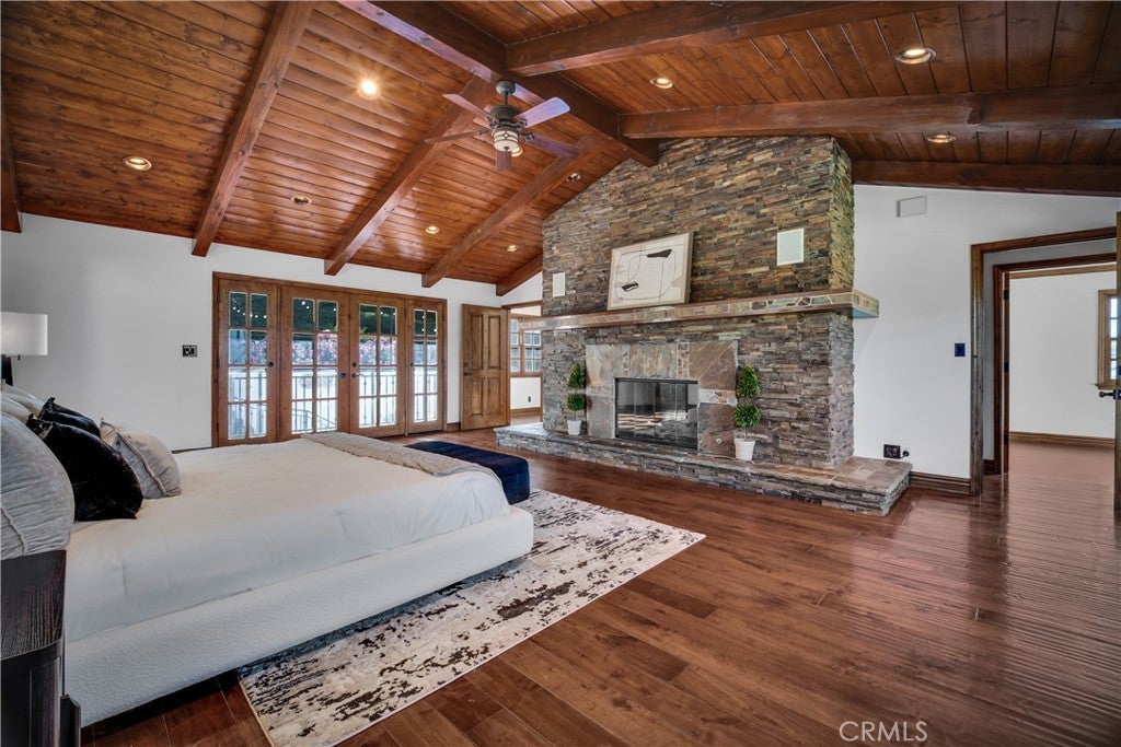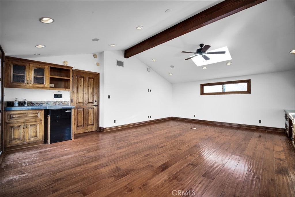 Welcome to this exceptional residence located South of the Boulevard in one of Woodland Hills’ most desirable pockets. Offering 5 bedrooms plus 2 versatile bonus rooms, this expansive home is designed for refined living and effortless entertaining. One of the bonus spaces is perfectly suited for a private theater, game room, or custom retreat the possibilities are endless. The light-filled living room opens seamlessly to a private, resort-style backyard featuring a built-in BBQ island and a multi-level design with an upper deck capturing stunning valley views ideal for both entertaining and relaxation. A formal dining area flows into a beautifully appointed kitchen showcasing premium Viking appliances. Additional features include a walk-in wine cellar, a spacious 3-car garage with built-in attic storage, and abundant storage throughout. Recently refreshed with interior and exterior paint, and complemented by newly installed, fully paid-off solar. Rich Brazilian wood flooring and high-end craftsmanship elevate the home’s overall aesthetic. Ideally positioned near premier shopping, dining, convenient 101 freeway access, and just a short drive to Malibu beaches via scenic Topanga Canyon.