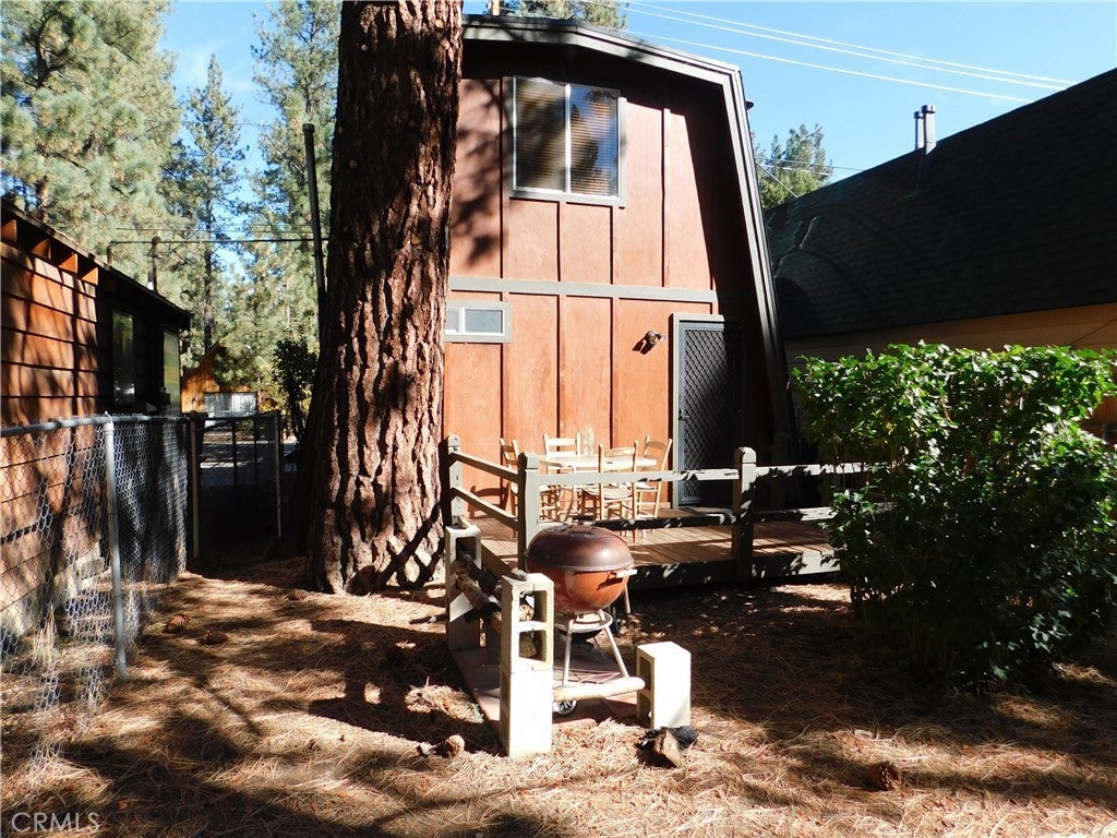 Beautifully maintained gambrel cabin located on a quiet street in Big Bear City. This home has been meticulously maintained by the current owners for the last 20 years. This home has been a very successful short term rental and would make for a perfect opportunity to walk right in and start your own short term rental business as all furnishings, decorations, housewares and refrigerator are included in the sales price at no value. Or maybe a full time rental (which are in great demand right now) or use it for a perfect getaway home to enjoy all that Big Bear has to offer including 4 seasons of fun. Some of this homes most recent major improvements include: New roof in 2021 $18,000.00, New water heater in 2022, A Tuff Shed was added to back yard in 2017 that remains in like new condition and measures 15x8, Rinnai forced air wall heater was added approx. 15 years ago and works great, Exterior stain and paint approx. 5 years ago. Other great features include: Stone fireplace with log lighter, front and rear decks, peaceful back yard, bbq area, fenced yard, concrete driveway offers 2 off street parking spots. Opportunities like this one are rare so hurry and make it yours today, before someone else does. One of the sellers has a real estate license in California and Arizona.