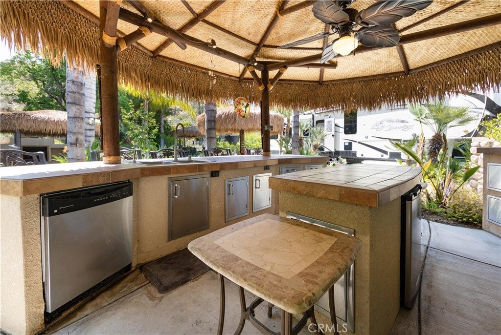 Gargantuan price check, Gargantuan Lot with a Private Waterfall & 3 Ponds with Streams running right down the middle of the property. Water World with Lots of Shade Trees, backs to a hill (Very Private), 4 large New Palapa covers housing an Oven, Built-in Lion BBQ, Stove Top, 2 Fridges, Pizza Oven, Fireplace, Dishwasher and Storage. Washer/Dryer Island with folding area, Bar Caddy, frige and Wine Cooler with Island.... So much Entertaining can happen on this property, bring your green thumb and get some peace and tranquility. One of the most unique Properties in the Park Lots of opportunity here and financing is available! This is a truly special space in a premier RV Resort located in SoCal minutes from Temecula Wine Country and close to San Diego, Oceanside and Palm Springs! Don't miss this one - priced competitively! Rancho California RV Resort offers a 14 hole PAR 3 executive golf course that is free for owners, (5) pools & jacuzzi areas, tennis courts, pickleball courts, laundry rooms, dog park, horseshoe lawn, exercise room, (2) clubhouses, hiking trails, grocery market all inside gated community that is guarded 24/7. *A MUST SEE*