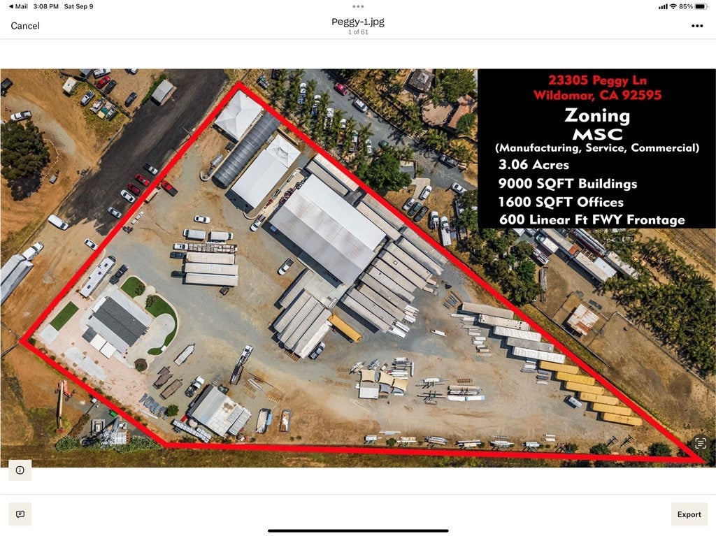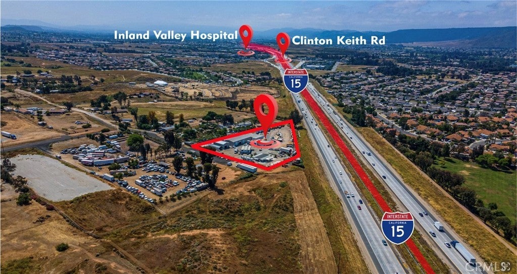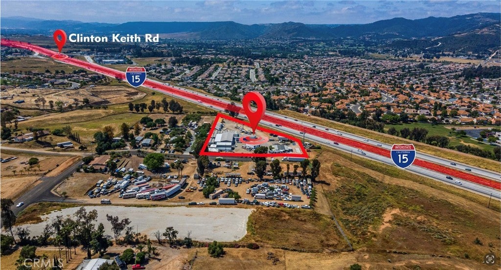 MSC ZONING!!! Located on the 15 FWY between Wildomar Trail and Clinton Keith with 600’ +/- of Freeway Frontage. Approx 9000 sqft of building space and 1600 sqft of remodeled office space. All flat and usable fully fenced 3+ acres with income producing tenants. Property is on well and septic.
