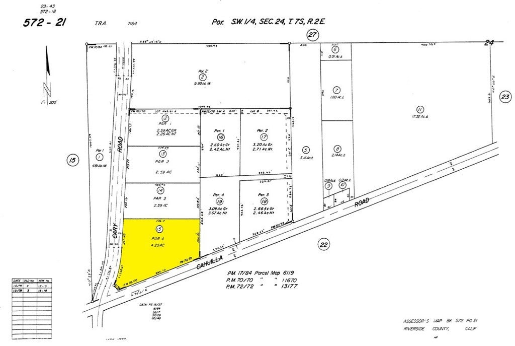 Explore the endless possibilities with this expansive 4.25-acre vacant lot located at 0 Cary Rd in the scenic area of Anza, CA. With its APN 572-210-015 and GPS coordinates at Latitude 33.54404 and Longitude -116.73454, this undeveloped parcel is a treasure waiting to be discovered. Featuring road frontage on Cary Rd, the lot offers easy access and a multitude of development opportunities. Whether you're an investor looking for a solid land investment, a developer aiming to create a new community, or a dreamer planning to build a secluded retreat, this property provides the ideal backdrop for your vision. ****No soils reports, surveys, etc., have been done. Buyer and buyer's agent to verify all information with the city or county for allowable uses and requirements and rely on their own investigations. **Buyer responsible for checking zoning, utilities, permits and exact property boundaries. ****