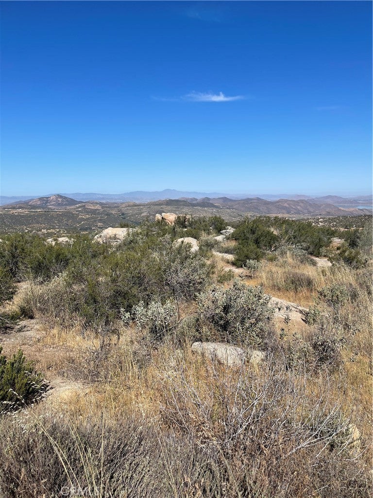 Gentle rolling 4.82 acres with breath taking views of Diamond Valley Lake and Lake Skinner, not to mention views of Hemet, Temecula and surrounding valleys. Perfect for large custom/manufactured home with airplane views. Has frontage on Tanager Way, Falcon Road, Oriel Road, Utilities in Falcon Road.