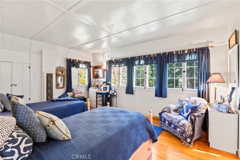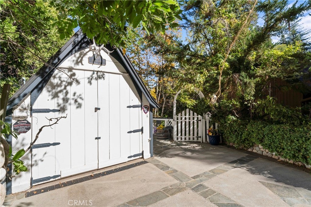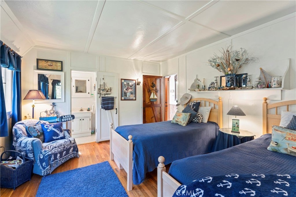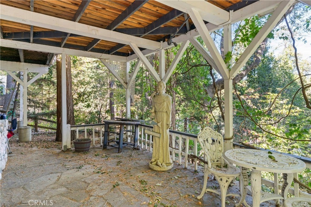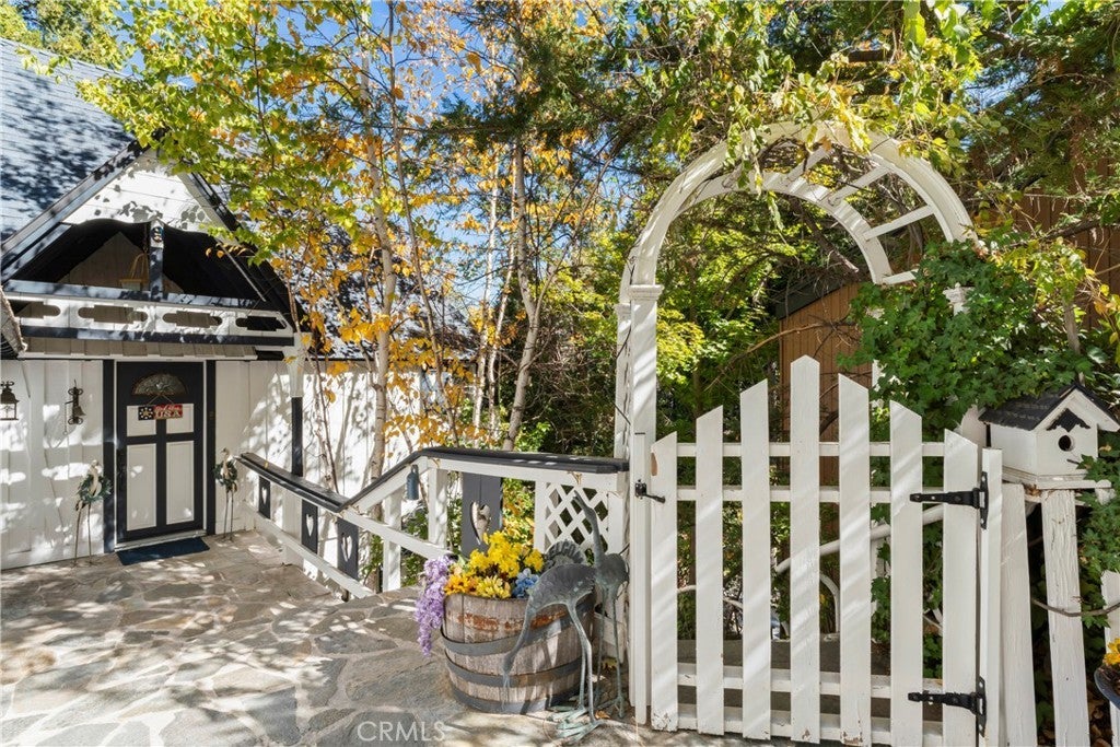 NEW PRICE!!!!! This Historical Classic Vintage Lakefront Home with take you on a magical tour with each room having an Alluring Theme. This enchanting property features three bedrooms, each with its own en suite bath ensuring comfort and privacy. The primary bedroom is conveniently located on the main floor, while two additional bedrooms are on the top floor. This Beauty also won the Lake Arrowhead Home Tour. The Amazing French Normandy ceiling and classic beams adds warmth throughout, complemented by charming French Windows. Stunning Hardwood floors with Hand Carved Mantel over Fireplace. Enjoy the large private deck accessible form both the dining and living rooms, perfect for relaxing or entertaining. Plus there is a small dog run for your furry friends. The downstairs studio offers a full bath and separate entry, with lake views and a short walk away to beautiful landscaping down to your brand new half a double dock. Discover the true Enchantment of Lake Arrowhead on the Water.