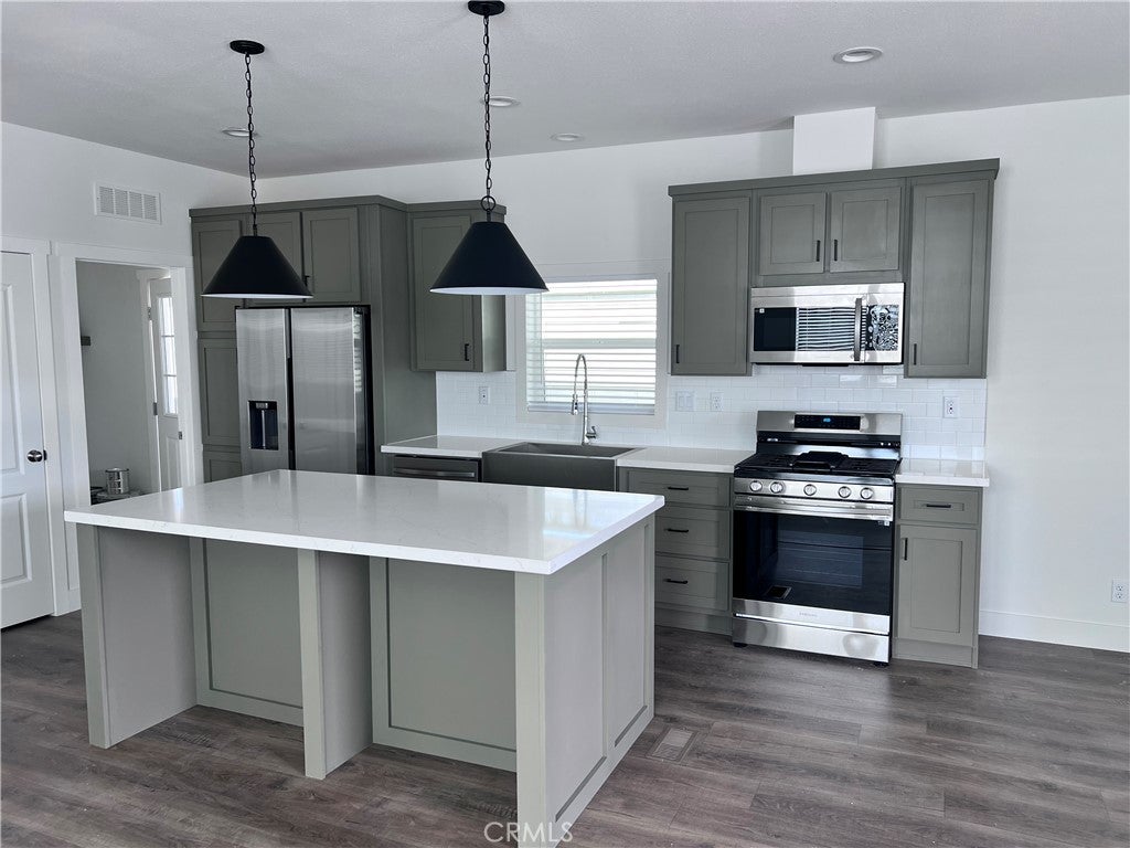Beautiful Brand NEW ALL Manufactured home 3 bedrooms 2 bath. Open kitchen with a big kitchen island, side pantry & big living room area. This home comes with stainless steel appliances, side by side refrigerator dishwasher, stove, over the range microwave, central a/c and heating. Window treatment in all windows. high windows, high ceilings. Nice big front porch with brick skirting and a nice planter, two car, carport with awnings. The home is located in the best all age community in Hemet with a large clubhouse, swimming pool, sport court, laundry facility, playground, gym, and a gated community to be locked at night.
