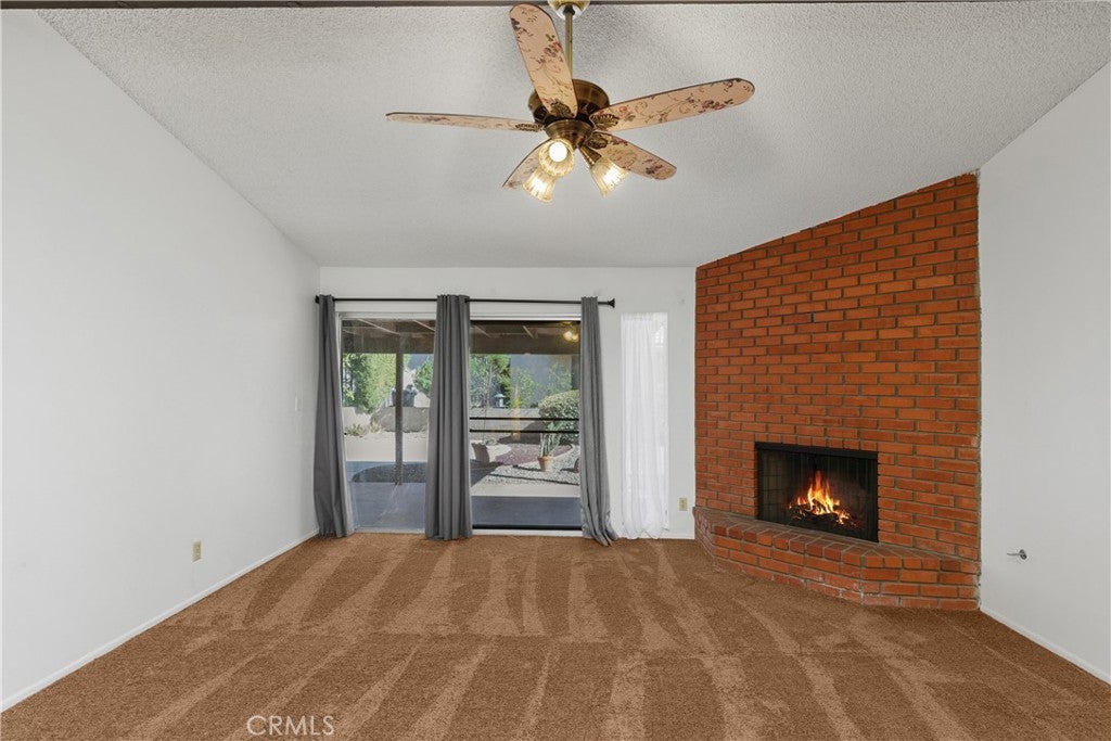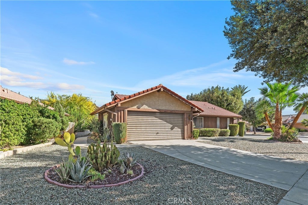 PRIME CORNER LOT HOME in Seven Hills 55+ Golf Resort Community! Enjoy expanded outdoor living and excellent visibility with this charming two-bedroom, two-bathroom home. The low-maintenance front landscaping, complete with mature palms and stone accents, provides immediate curb appeal. Inside, the floor plan is spacious and inviting. The main living area centers around a classic brick fireplace in the family room, with direct access to the private, fenced backyard and covered patio. Perfect for seamless indoor/outdoor entertainment. A separate, spacious dining room features a sliding door leading to the side yard. The kitchen offers ample space with an abundant wood cabinetry and a nice backyard view. The two bedrooms are located on the right side of the home. The primary bedroom boasts a ceiling fan, carpet, and a large walk-in closet. Both bathrooms are designed for comfort, featuring grab bars. Additional storage is available in the hallway and secondary bath. Features include dual-pane windows, a two-car garage (with laundry hookups), and driveway parking. Community residents enjoy golfing , have access to clubhouse, outdoor pool, and spa all with an unbelievable low annual HOA. Located close to dining and town amenities. Call now to tour this incredible opportunity for resort-style 55+ living!