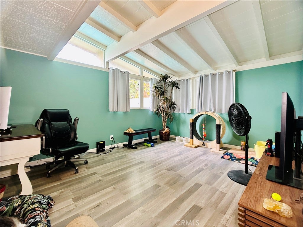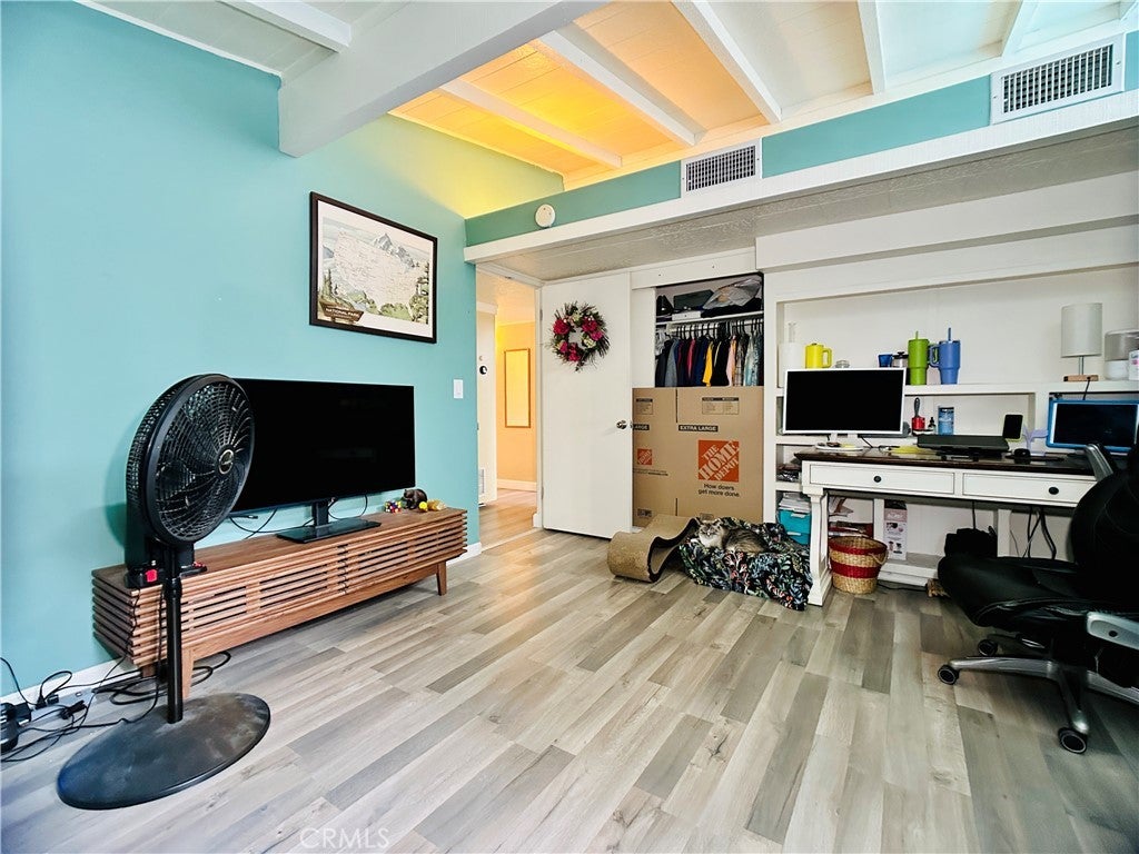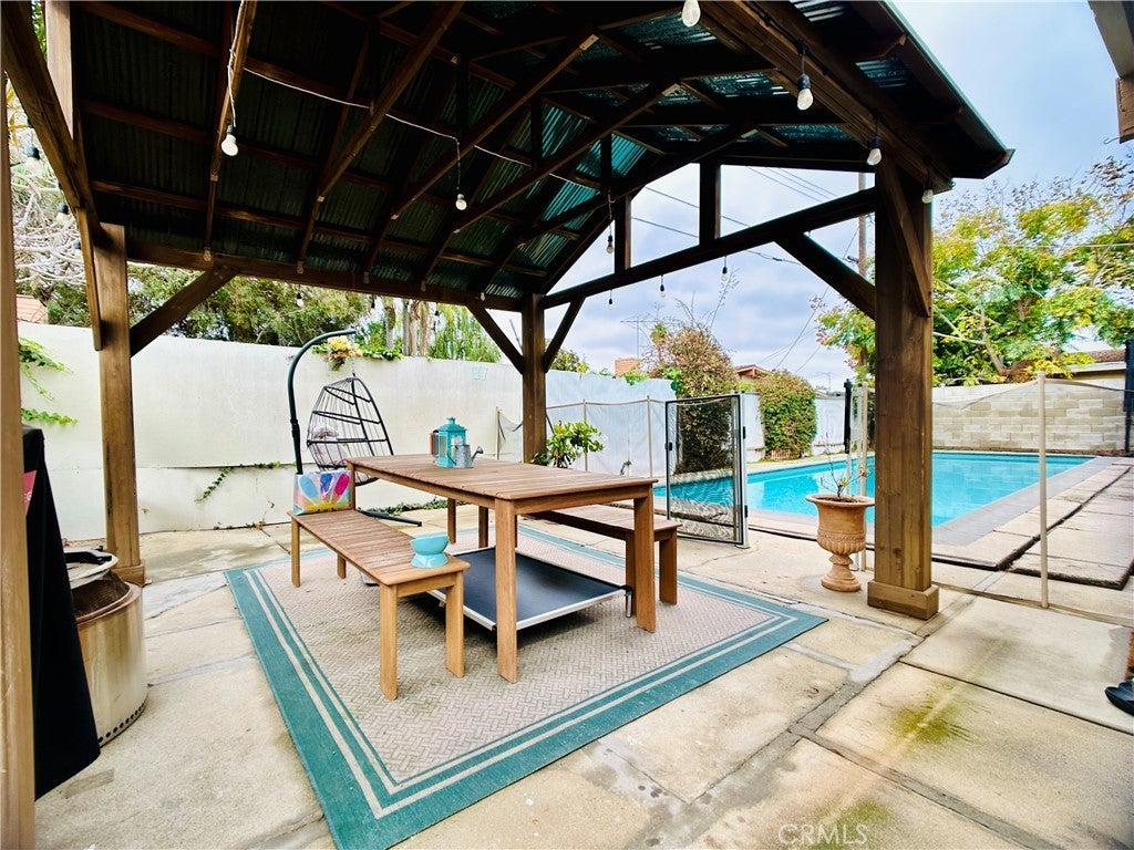 This stunning single-story pool home is located on a quiet residential street in Anaheim. Tons of natural light filter into this beautiful mid-century modern home, developed by Ross Cortese, with a Cliff May design. The property boasts vaulted ceilings with open beams in nearly every room. As you enter, you are greeted by a beautiful floor-to-ceiling fireplace in the family room, which flows effortlessly to the dining room and beautifully appointed kitchen. Another living area, or sunroom, awaits you on the other side of the kitchen. Here you'll also find the laundry area and the hall to the two secondary bedrooms and full hall bath, recently remodeled. Finally, the main suite is richly appointed with an en suite bath and multiple closets. You'll find a pool and gazebo area ready for enjoyment year-round in the backyard. An attached two-car garage rounds out this beautiful property, which will not last. Please make an appointment to see it today!