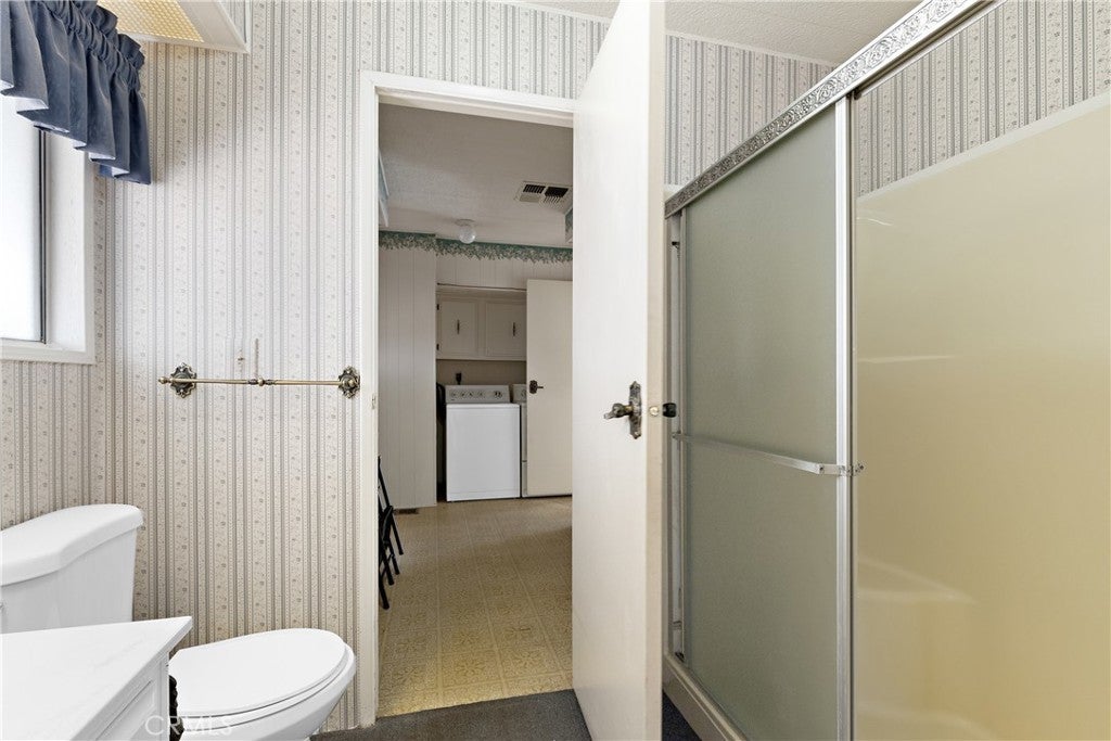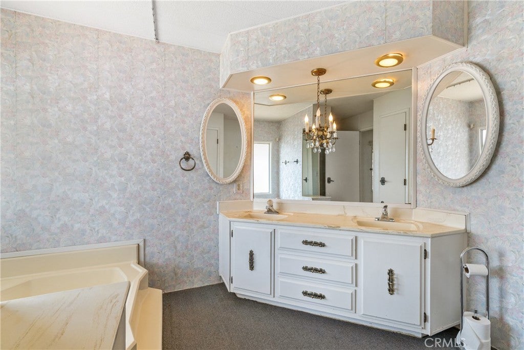 Roomy 2 bedroom 2 bath mobile home with light interior located in Eden Roc Villa 55yr+ senior park. Living/dining combo with built-in china hutch. Kitchen has gas stove, dbl oven, dishwasher, and extra counter space open to family room. Master has dual-sink vanity, garden tub, built in shelves. Guest bath has large low-step-in shower. Forced heat and air plus energy-saving evaporative cooler. Ceiling fans. Covered patio. Security bars. Carport. Washer, dryer, refrigerator, shed included. All section 1 termite work has been completed. Just needs a little love and care.