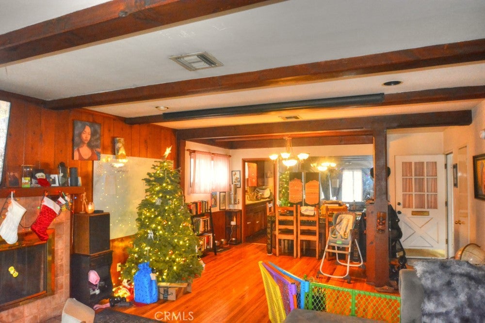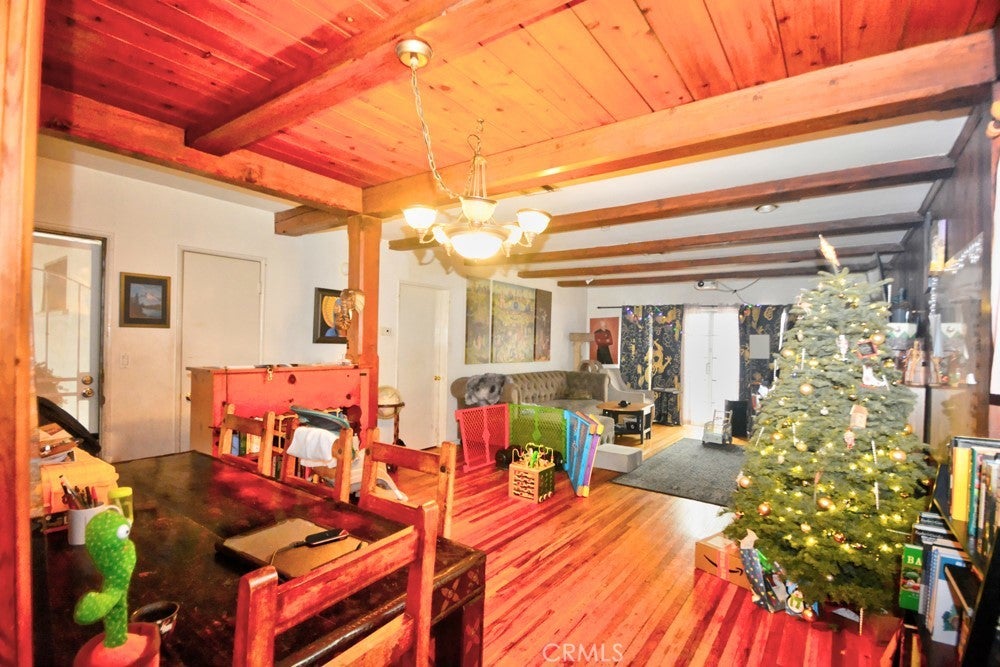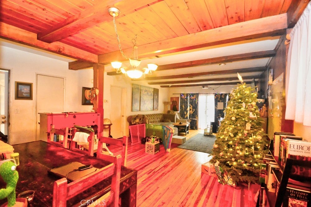Beamed Ceilings, Breakfast Area, Ceiling Fan(s), Ceramic Counters, Separate/Formal Dining Room, Open Floorplan, Pantry, Recessed Lighting, Bedroom on Main Level, Main Level Primary