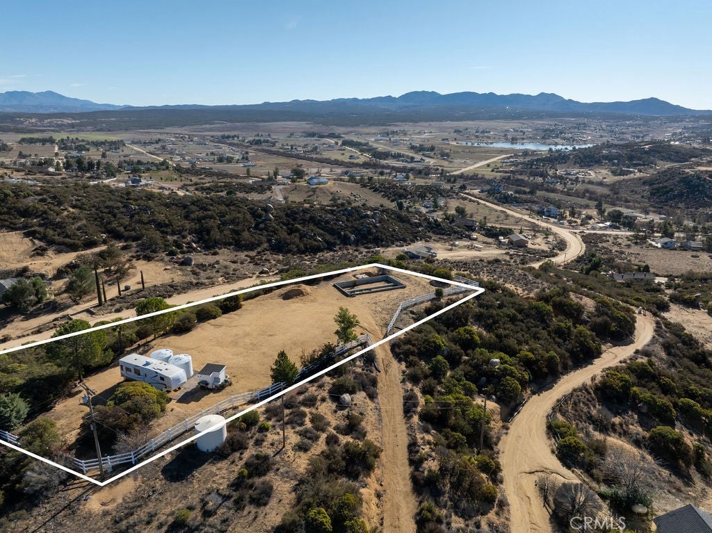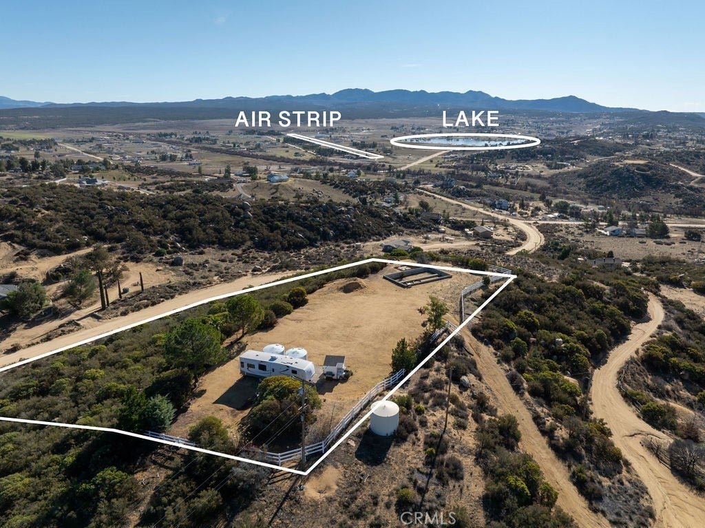 Welcome to your dream homesite! This lot, perched atop of a hill complete with a graded pad, offers an unparalleled opportunity to build your perfect retreat, surrounded by nature's beauty. Nestled in a private gated community, this property boasts breathtaking views of both a serene lake and majestic mountains, providing a picturesque backdrop for your future home. This property is equipped with essential utilities, including 2 5,000-gallon water tanks, well shed with heated lamps, septic tank (not connected), and electricity, streamlining the building process for your convenience. Property is approximately 70% fenced in with new vinyl fencing and a gate for property entry. Enjoy the mature peach trees or fresh rosemary as an added bonus! Situated in a secure gated community, ensuring privacy and exclusivity for residents. Take advantage of the community's outstanding amenities, such as a private 3500 x 100 ft airstrip for aviation enthusiasts, a 55 acre private lake with dock and boat launch (no gas motors), a sparkling community pool for relaxation, a playground for the little ones, picnic cabanas and horse trails for equestrian pursuits. This is not just a homesite; it's an invitation to create a lifestyle. Imagine waking up to the tranquil sounds of nature, taking in the sunrise over the lake, and spending your evenings surrounded by the serenity of the mountains. Whether you envision a weekend getaway or a permanent residence, this lot offers the canvas for your dream home.