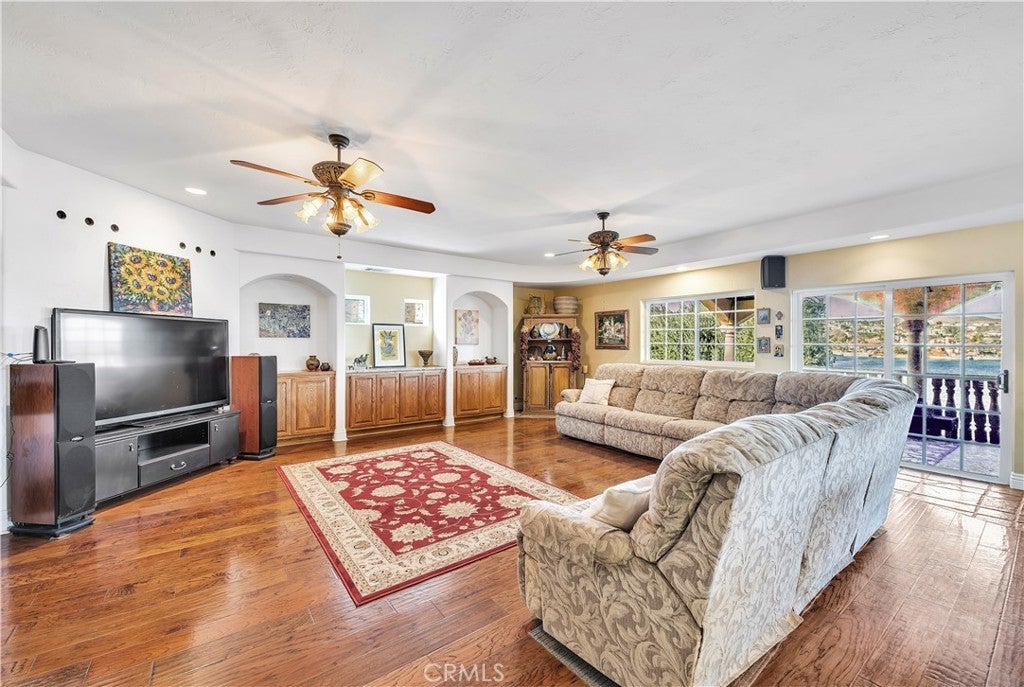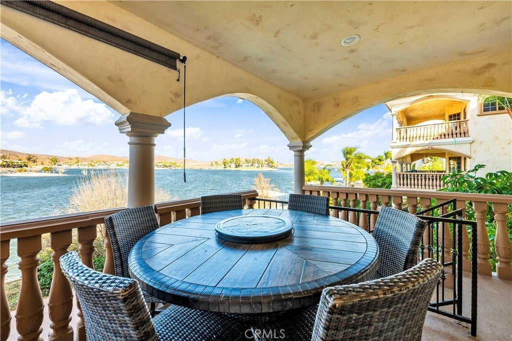The “ICONIC” Canyon Lake Waterfront is now available……….Located on one of the best streets in Canyon Lake, this property sits on well over 1/2 acre set back down a long private driveway with over 170’ of pristine waterfront in the “No Wake Zone”. Immaculate grounds with huge pool and spa overlooking the main lake, RV parking with full hook ups, split 9 car garage, full solar, propane, dock with hydrolift and fully enclosed boat house with winch system and private launch to keep your boat and water toys clean and ready all year around. Enter the home through the custom solid wood double entry doors into the foyer boasting 22’ ceilings with floor to ceiling picture windows and large fountain setting the tone to tranquility. Main level offers 1 full bedroom with private bathroom, den, living room, kitchen, laundry/ Mud room, 1/2 bath and 2 bedroom 2 bathroom apartment with private entrance. Upstairs the estate is split with the Master wing sitting on one side of the home boasting a large sitting area with fireplace , bathroom with soaking tub, steam shower, walk in closet with built ins throughout, and private covered deck to take in the Panoramic views of the entire lake. Located on the opposite wing you will find 3 additional bedrooms with 2 of them having private bathrooms, large game room and full length covered patio as well mirroring the Master. Down on the pool level is a lockout studio apartment with a kitchenette and bathroom and additional finished storage rooms under the home. This house truly is “Canyon Lakes Finest” and would make for and excellent family compound or company retreat.