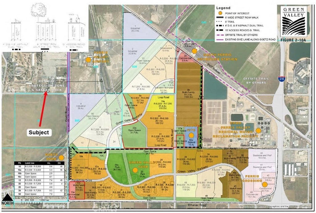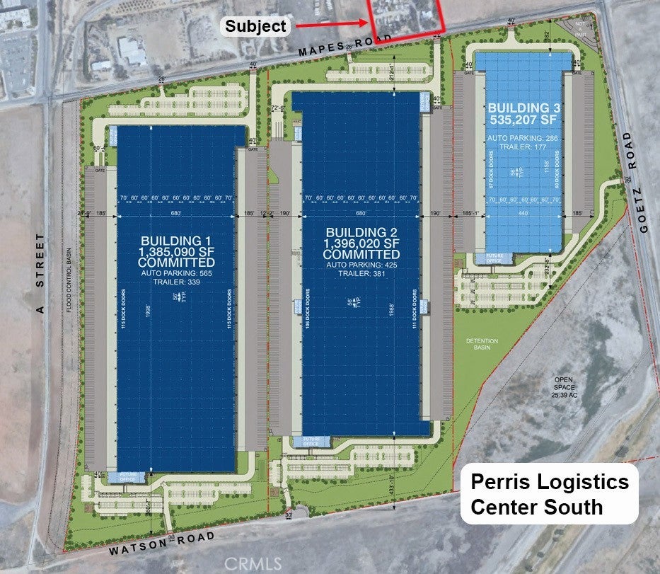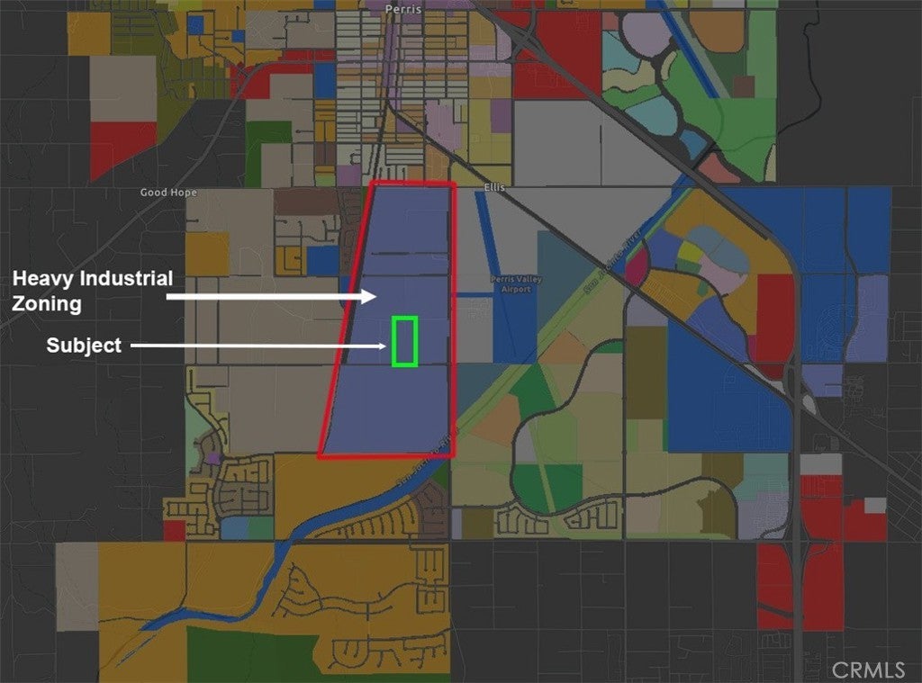 Four parcels totaling 6.73 acres. Heavy Industrial zoning in one of the premier distribution markets in the country. Adjacent to Perris Logistics Center South and near the Menifee Economic Development Corridor employment hub. Currently generating income as a 20-space RV park plus three single-family homes.
