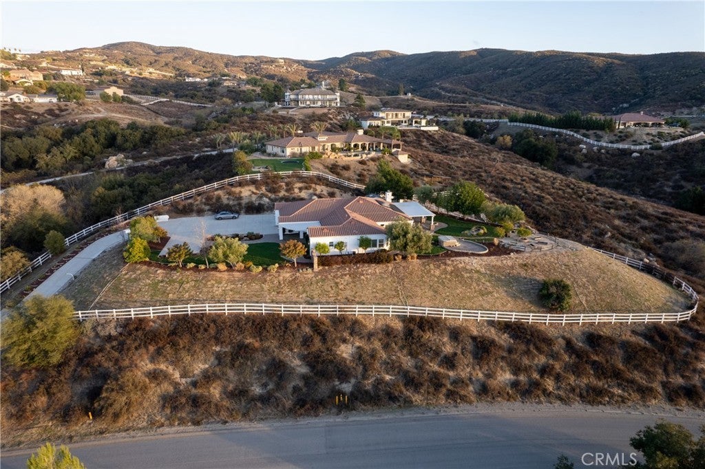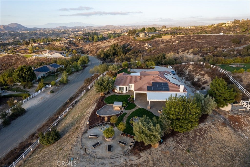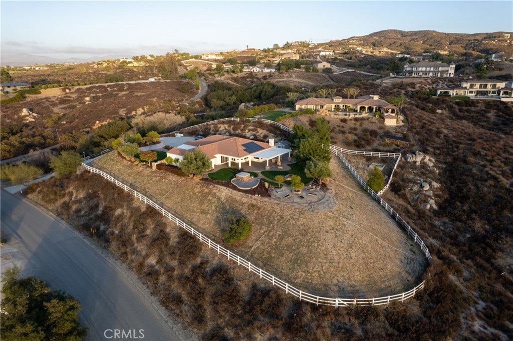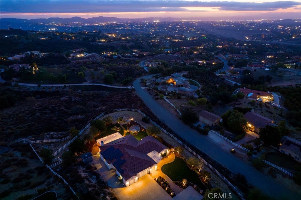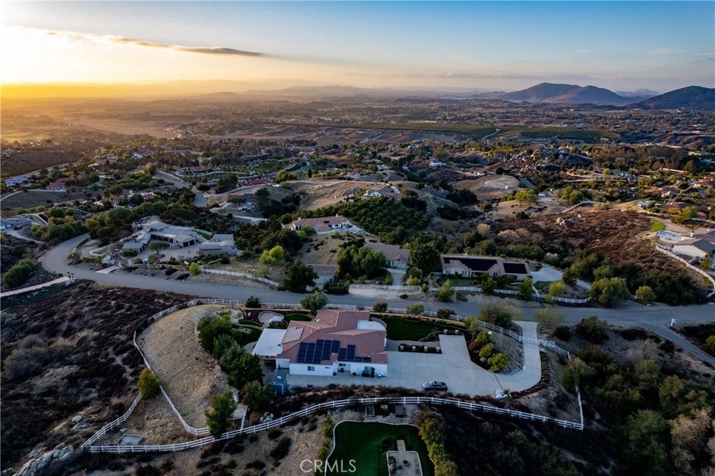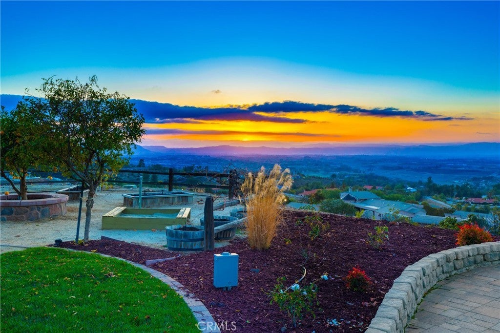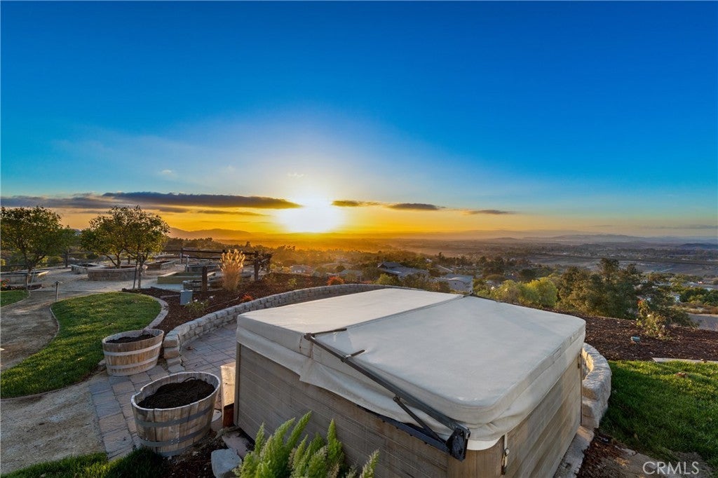 VIEWS, VIEWS, VIEWS! Private gated Temecula home sits on 4.6 acres, offers breathtaking views, a FULLY PAID for SOLAR SYSTEM with 44 panels, and a Tesla charger in the garage, RV PARKING & Located in the prestigious community of Glen Oak Hills in Wine Country. Imagine waking up to panoramic vistas, where hot air balloons drift across the sky, painting a picturesque backdrop. This beautiful property offers more than just stunning scenery. Inside, this spacious home features four bedrooms, three bathrooms, an office with custom-built floating shelves, a full wet bar with lighted shelving, and a three-car garage with separate heating & air, built-in shelving, and a Tesla charger. The open-concept floor plan with hardwood floors seamlessly connects the living, dining, and kitchen areas with granite countertops and stainless steel appliances; perfect for entertaining family and friends. The backyard is an entertainer's dream, featuring a built-in BBQ, jacuzzi, fire pit, aluma wood patio, waterfall feature, outdoor shower, tough shed, veggie garden with five veggie boxes, and RV PARKING! Not to mention the motor court fits 10 cars. Plus, you're just a short drive away from Temecula's renowned wineries, restaurants, and shopping. Don't miss this opportunity to own a piece of paradise.