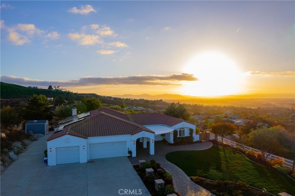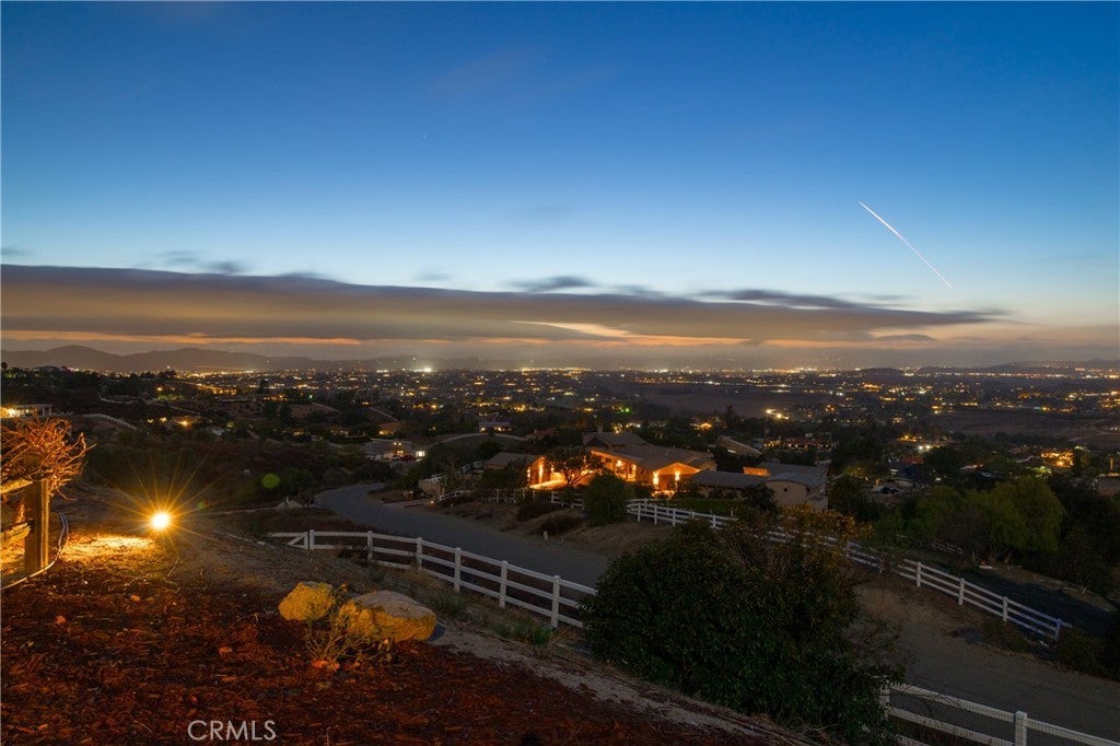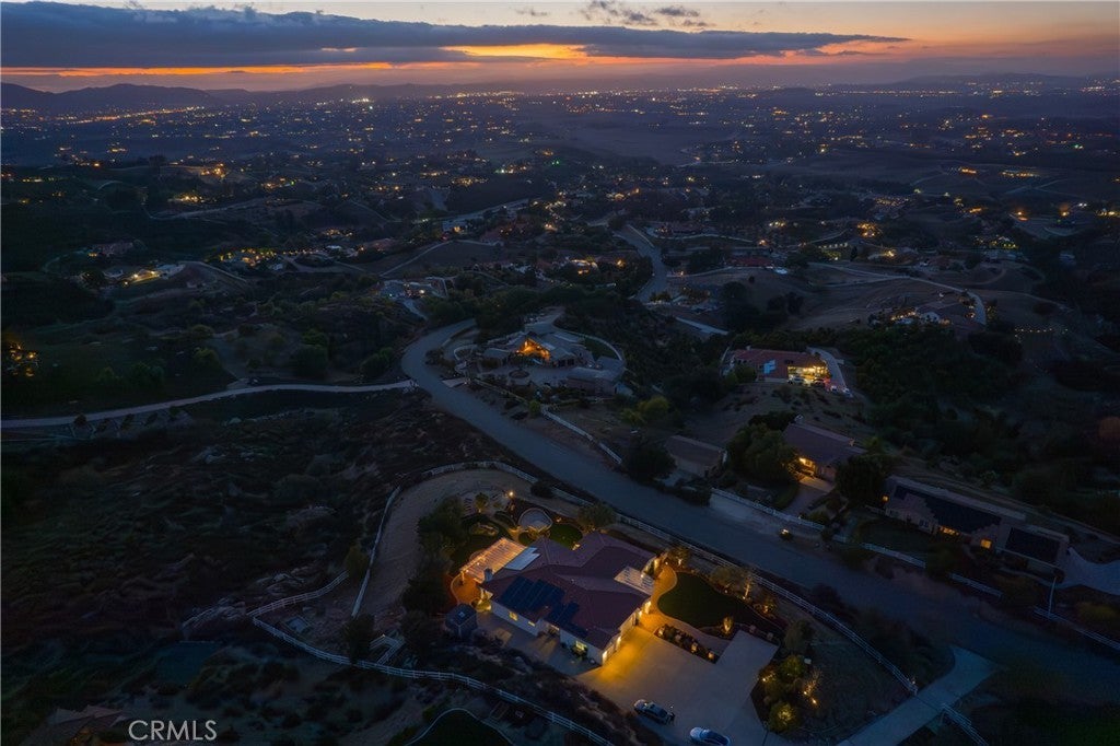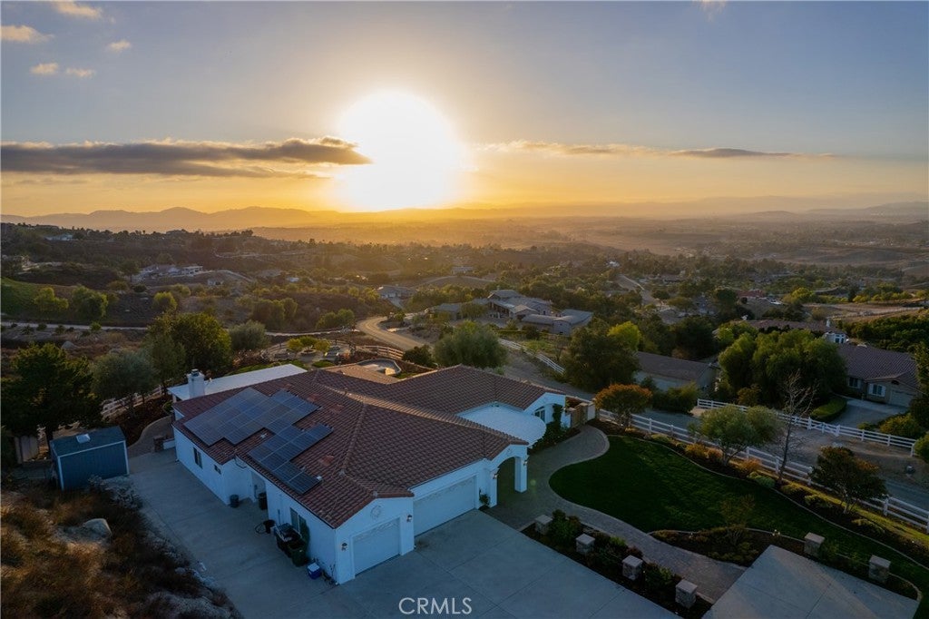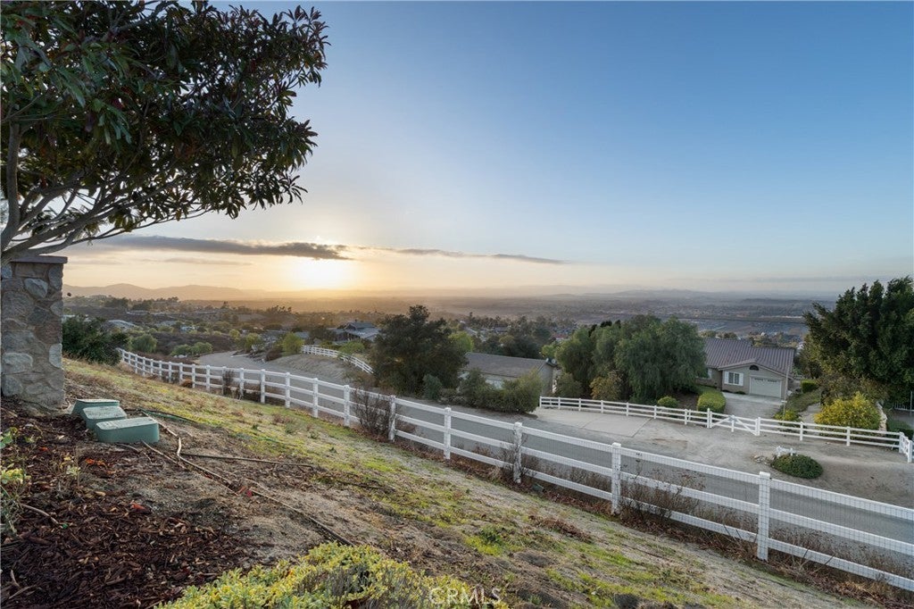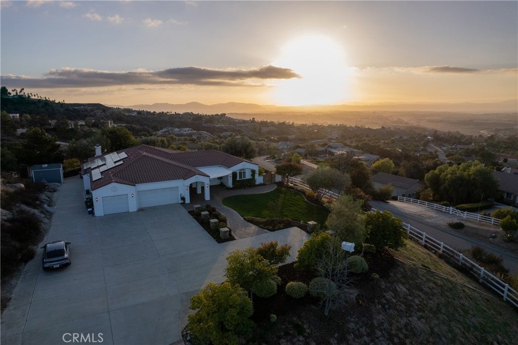 VIEWS, VIEWS, VIEWS! Private gated Temecula home sits on 4.6 acres, offers breathtaking views, a FULLY PAID for SOLAR SYSTEM with 44 panels, and a Tesla charger in the garage, RV PARKING & Located in the prestigious community of Glen Oak Hills in Wine Country. Imagine waking up to panoramic vistas, where hot air balloons drift across the sky, painting a picturesque backdrop. This beautiful property offers more than just stunning scenery. Inside, this spacious home features four bedrooms, three bathrooms, an office with custom-built floating shelves, a full wet bar with lighted shelving, and a three-car garage with separate heating & air, built-in shelving, and a Tesla charger. The open-concept floor plan with hardwood floors seamlessly connects the living, dining, and kitchen areas with granite countertops and stainless steel appliances; perfect for entertaining family and friends. The backyard is an entertainer's dream, featuring a built-in BBQ, jacuzzi, fire pit, aluma wood patio, waterfall feature, outdoor shower, tough shed, veggie garden with five veggie boxes, and RV PARKING! Not to mention the motor court fits 10 cars. Plus, you're just a short drive away from Temecula's renowned wineries, restaurants, and shopping. Don't miss this opportunity to own a piece of paradise.
