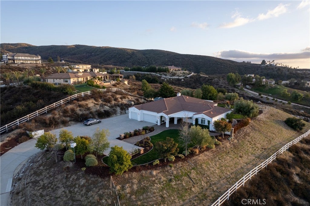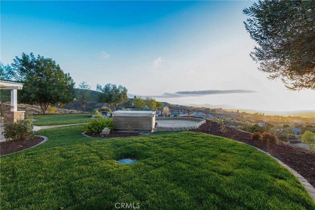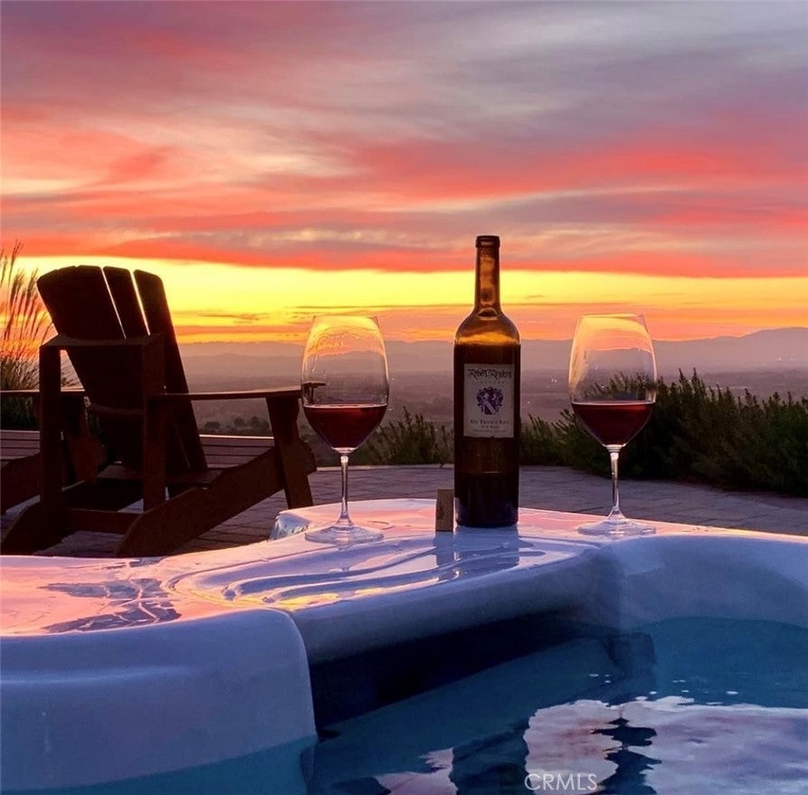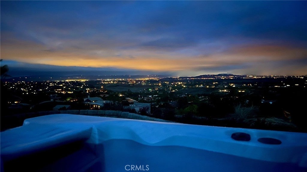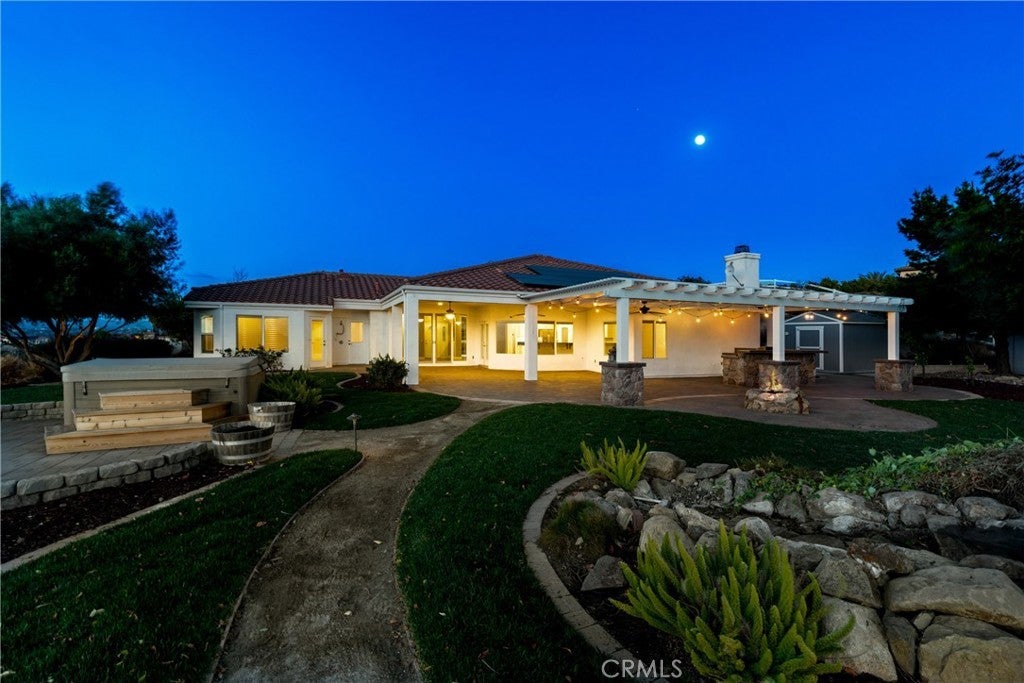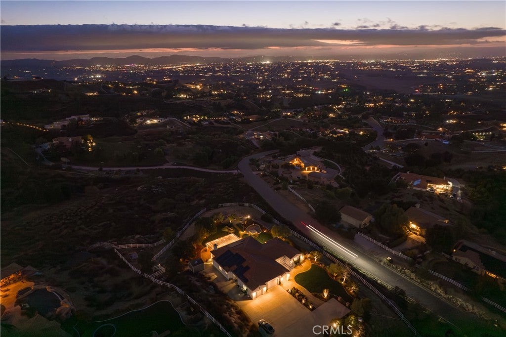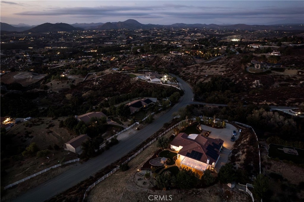 VIEWS, VIEWS, VIEWS! Private gated Temecula home sits on 4.6 acres, offers breathtaking views, a FULLY PAID for SOLAR SYSTEM with 44 panels, and a Tesla charger in the garage, RV PARKING & Located in the prestigious community of Glen Oak Hills in Wine Country. Imagine waking up to panoramic vistas, where hot air balloons drift across the sky, painting a picturesque backdrop. This beautiful property offers more than just stunning scenery. Inside, this spacious home features four bedrooms, three bathrooms, an office with custom-built floating shelves, a full wet bar with lighted shelving, and a three-car garage with separate heating & air, built-in shelving, and a Tesla charger. The open-concept floor plan with hardwood floors seamlessly connects the living, dining, and kitchen areas with granite countertops and stainless steel appliances; perfect for entertaining family and friends. The backyard is an entertainer's dream, featuring a built-in BBQ, jacuzzi, fire pit, aluma wood patio, waterfall feature, outdoor shower, tough shed, veggie garden with five veggie boxes, and RV PARKING! Not to mention the motor court fits 10 cars. Plus, you're just a short drive away from Temecula's renowned wineries, restaurants, and shopping. Don't miss this opportunity to own a piece of paradise.