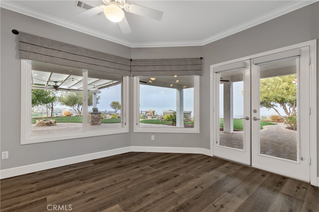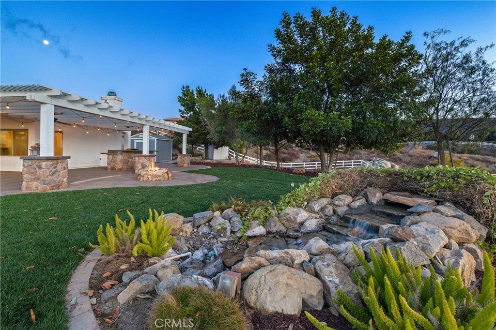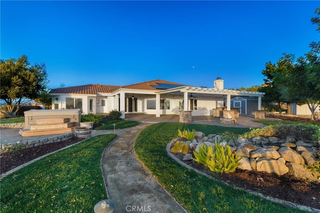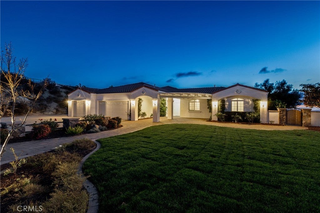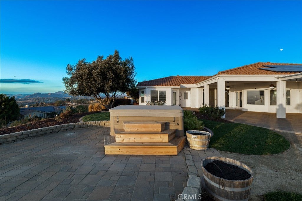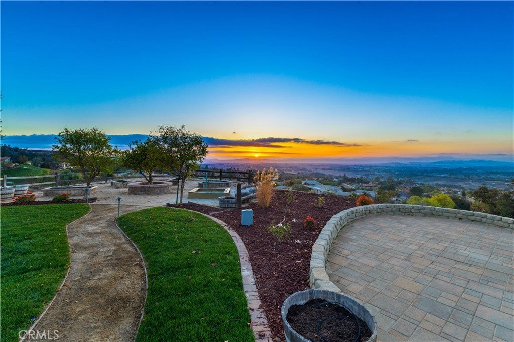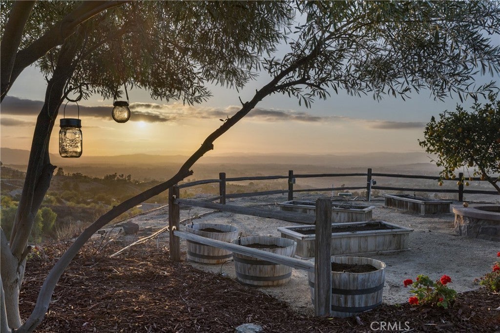 VIEWS, VIEWS, VIEWS! Private gated Temecula home sits on 4.6 acres, offers breathtaking views, a FULLY PAID for SOLAR SYSTEM with 44 panels, and a Tesla charger in the garage, RV PARKING & Located in the prestigious community of Glen Oak Hills in Wine Country. Imagine waking up to panoramic vistas, where hot air balloons drift across the sky, painting a picturesque backdrop. This beautiful property offers more than just stunning scenery. Inside, this spacious home features four bedrooms, three bathrooms, an office with custom-built floating shelves, a full wet bar with lighted shelving, and a three-car garage with separate heating & air, built-in shelving, and a Tesla charger. The open-concept floor plan with hardwood floors seamlessly connects the living, dining, and kitchen areas with granite countertops and stainless steel appliances; perfect for entertaining family and friends. The backyard is an entertainer's dream, featuring a built-in BBQ, jacuzzi, fire pit, aluma wood patio, waterfall feature, outdoor shower, tough shed, veggie garden with five veggie boxes, and RV PARKING! Not to mention the motor court fits 10 cars. Plus, you're just a short drive away from Temecula's renowned wineries, restaurants, and shopping. Don't miss this opportunity to own a piece of paradise.