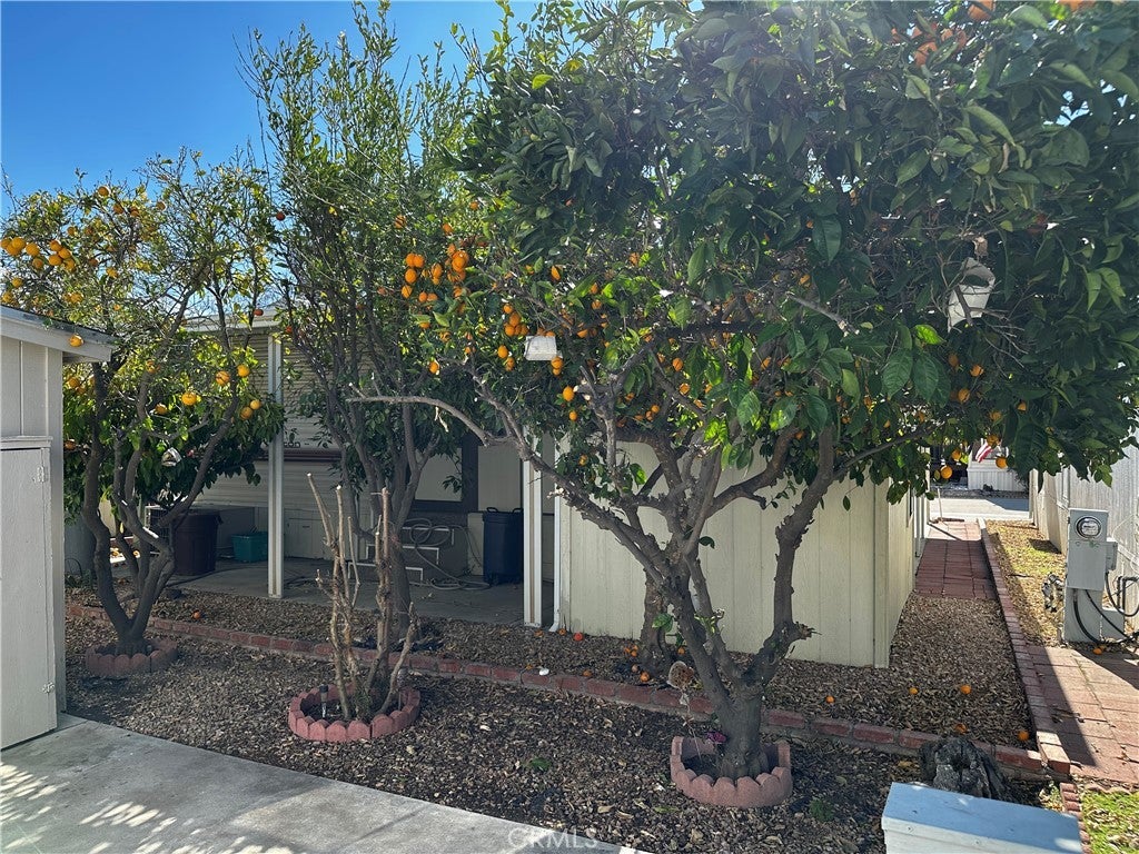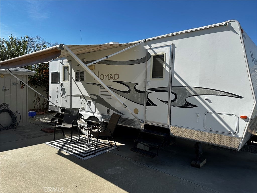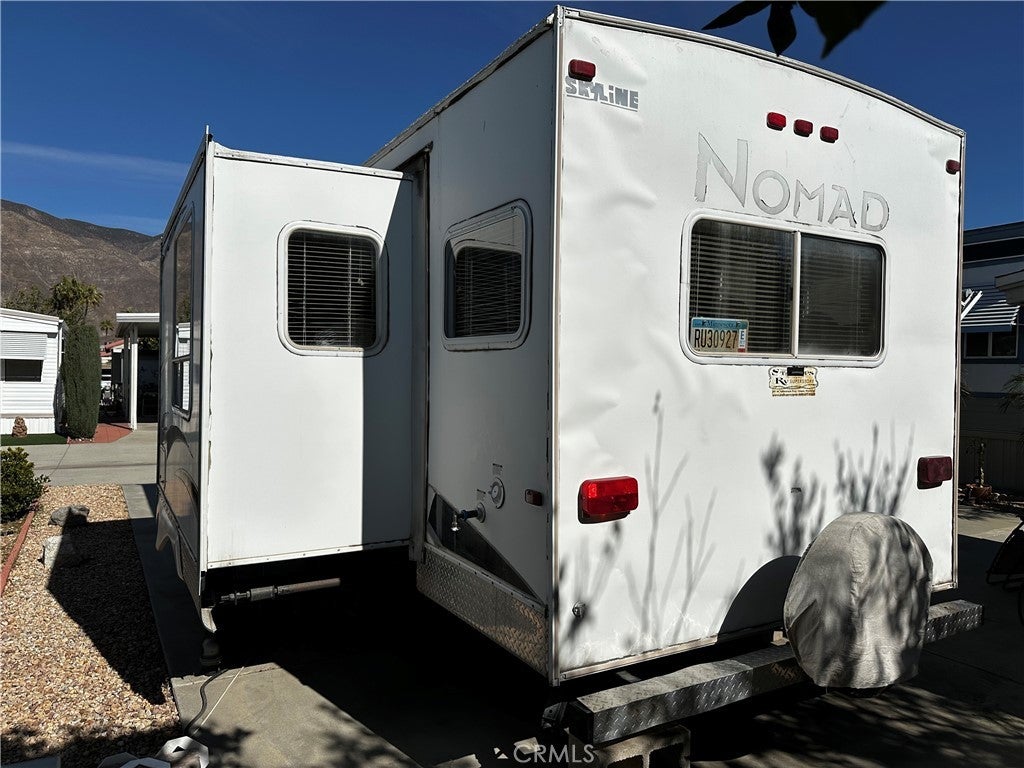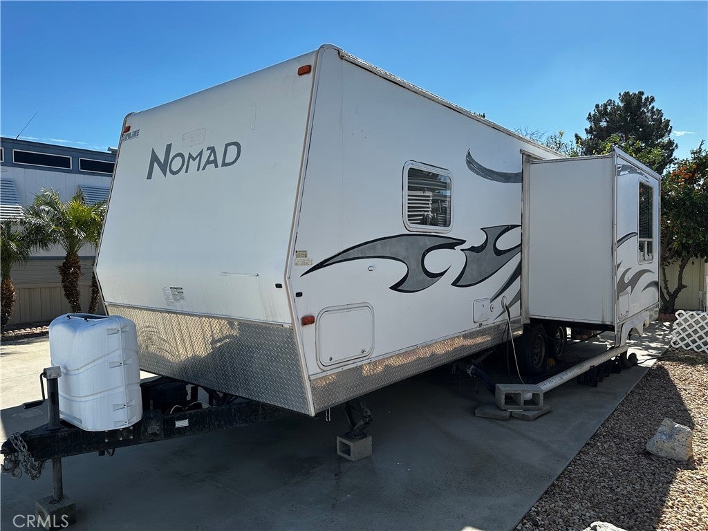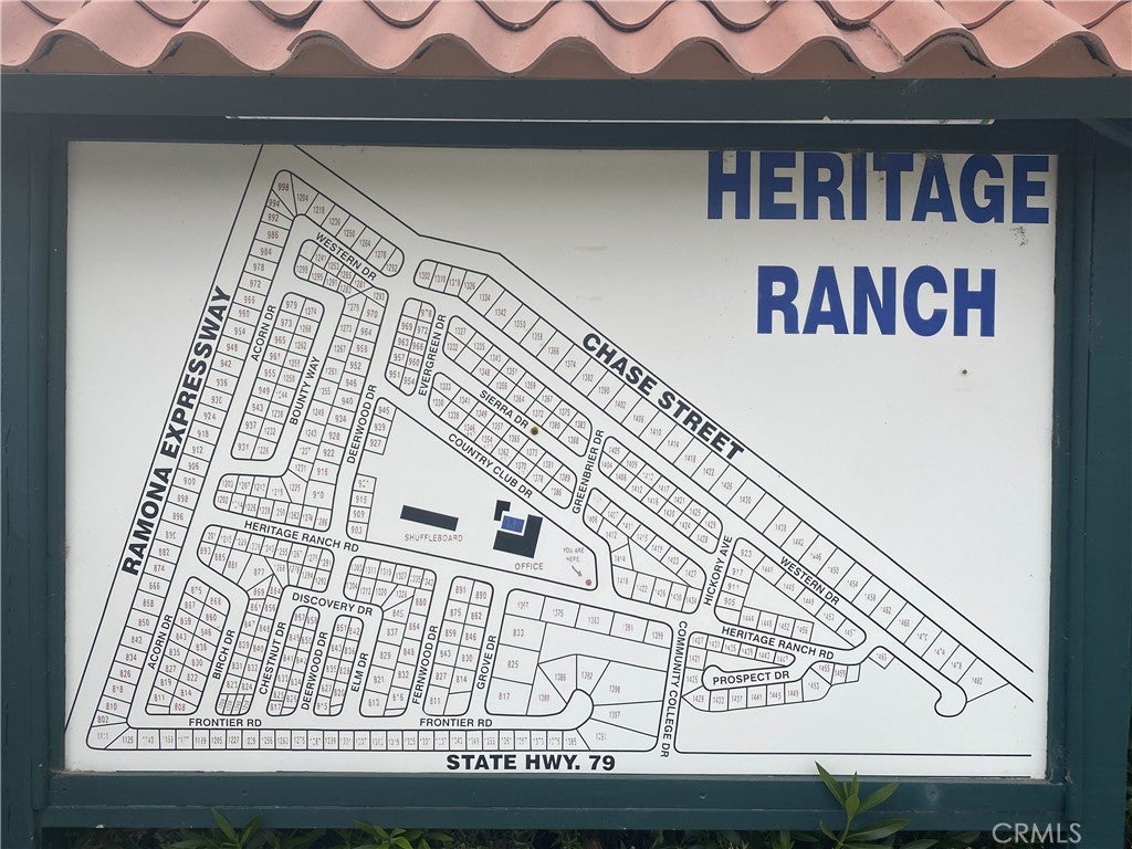 Wonderful opportunity to own a piece of property with an included travel trailer. All at a very reasonable price! Live here year-round, or visit as a Snow Bird. This 2006/2007 Skyline Nomad travel trailer is approx 24' long with a 9' pop-out. Just the right size for a vacation visit or full-time cozy living. This trailer is being sold furnished, so just bring your toothbrush. The shed is approximately 12' x 8' and includes plenty of storage space, a workspace, and laundry hookups. The property is landscaped and you'll enjoy your productive & sweet citrus trees along the back lot line. Heritage Ranch 55+ community is located in the foothills of the scenic San Jacinto mountains. This secure gated community offers many facilities and activities for residents including shuffleboard courts and a clubhouse with a specially constructed floating dance floor. It additionally has a card room, billiard room, arts/crafts room, banquet facilities, library and relaxing lounge with a fireplace and big screen TV. A clean and spacious laundry room, plus ladies' and men's rest rooms, complete with showers, are found by the outdoor pool. Or take a therapeutic soak in the indoor spa. The surrounding cities of San Jacinto & Hemet offer many activities such as golf courses, fishing, shopping and restaurants. Heritage Ranch is conveniently located to highways that will quickly get you to Soboba Casino Resort, the Inland Empire, Palm Springs, and beyond. Just south is easy driving to San Diego. HOA payment includes water, sewer, trash, and basic cable TV. This lot with travel trailer is being sold in AS-IS condition. Don't let this great opportunity pass you by!