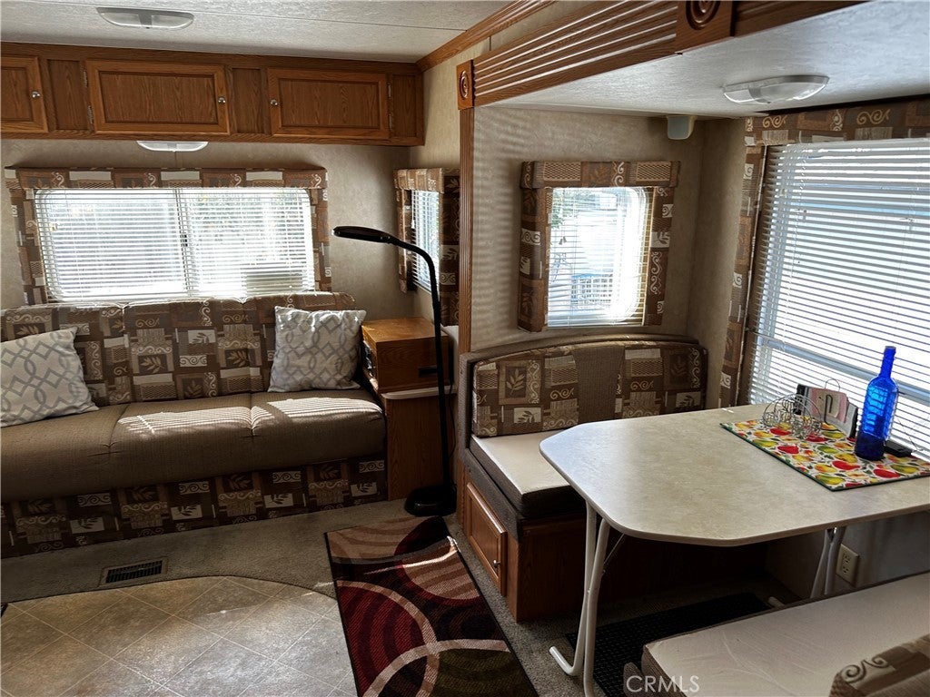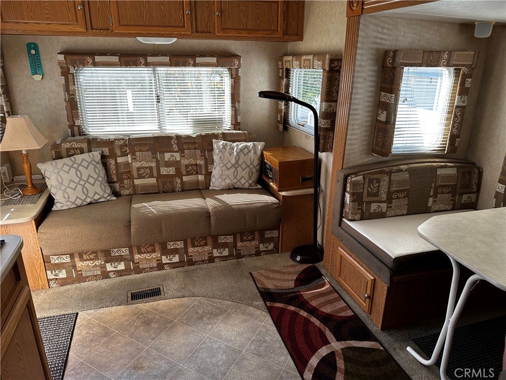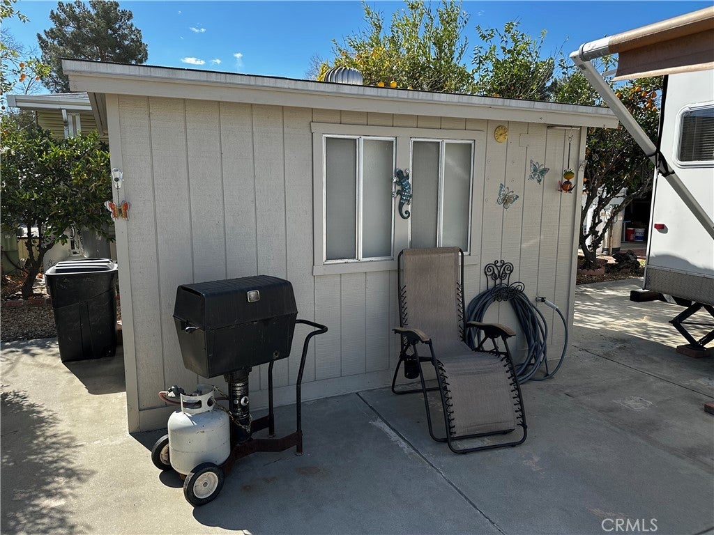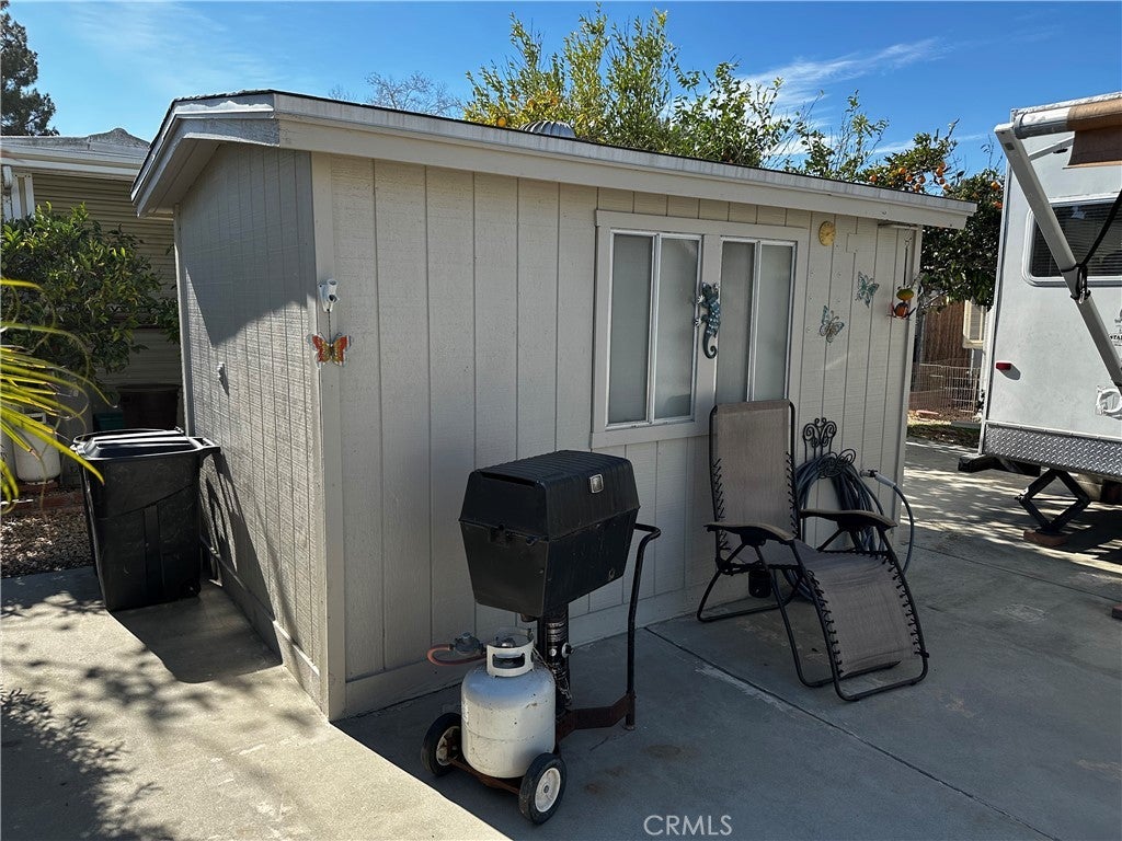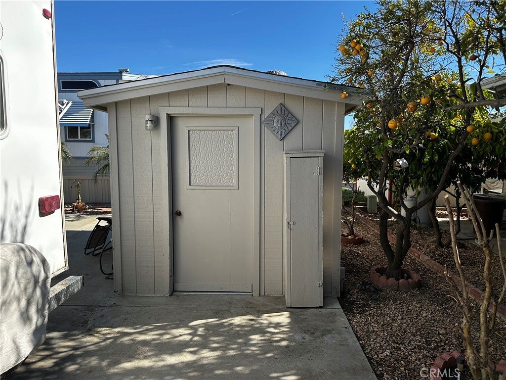 Wonderful opportunity to own a piece of property with an included travel trailer. All at a very reasonable price! Live here year-round, or visit as a Snow Bird. This 2006/2007 Skyline Nomad travel trailer is approx 24' long with a 9' pop-out. Just the right size for a vacation visit or full-time cozy living. This trailer is being sold furnished, so just bring your toothbrush. The shed is approximately 12' x 8' and includes plenty of storage space, a workspace, and laundry hookups. The property is landscaped and you'll enjoy your productive & sweet citrus trees along the back lot line. Heritage Ranch 55+ community is located in the foothills of the scenic San Jacinto mountains. This secure gated community offers many facilities and activities for residents including shuffleboard courts and a clubhouse with a specially constructed floating dance floor. It additionally has a card room, billiard room, arts/crafts room, banquet facilities, library and relaxing lounge with a fireplace and big screen TV. A clean and spacious laundry room, plus ladies' and men's rest rooms, complete with showers, are found by the outdoor pool. Or take a therapeutic soak in the indoor spa. The surrounding cities of San Jacinto & Hemet offer many activities such as golf courses, fishing, shopping and restaurants. Heritage Ranch is conveniently located to highways that will quickly get you to Soboba Casino Resort, the Inland Empire, Palm Springs, and beyond. Just south is easy driving to San Diego. HOA payment includes water, sewer, trash, and basic cable TV. This lot with travel trailer is being sold in AS-IS condition. Don't let this great opportunity pass you by!