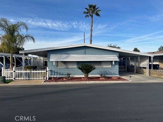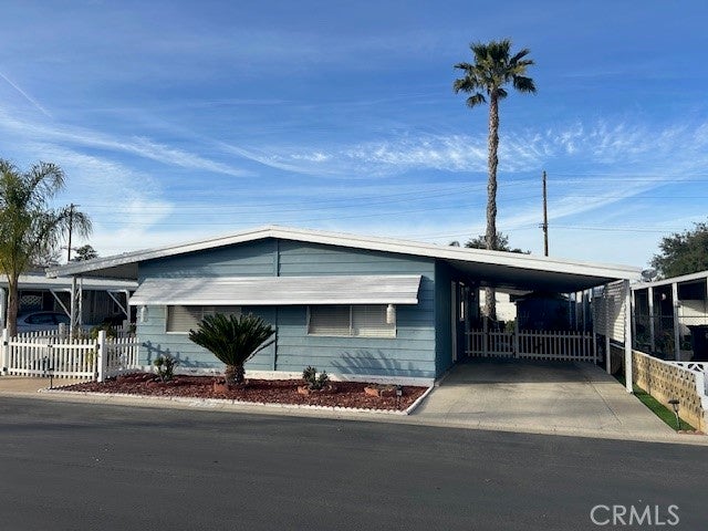 SELLER VERY MOTIVATED!!! PLEASE BRING OFFERS. SELLER TO OFFER $500.00 CREDIT TOWARDS HOME WARRANTY AND $1,039.00 CREDIT TOWARDS FIRST MONTH SPACE LEASE!! Beautifully maintained very Clean Double Wide. Wonderful inviting backyard oasis enclosed by a vinyl privacy fence perfect for entertaining, gardening or pets. Entire exterior is fenced. Open floor plan with dining and living room creates a feeling of additional space. Dining room has built in hutch. Home has laminate flooring and carpeting throughout. 2 Bedrooms and 2 Baths make it the perfect size. No stairs and no skirting which is a very desired feature of this area of the park, which makes the home VERY attractive to 55 and Better and Handicapped accessible. Cozy covered patios offer additional outdoor relaxing spaces. Home includes automatic sprinklers and a shed for storage. The community also features: Year-Round Swimming Pool and Spa, Indoor Shuffleboard Courts, Billiards Room, On-site Hair Salon, Ballroom, Bridge & Misc Cards, Fitness Center, Horseshoe Pits, Pet Friendly