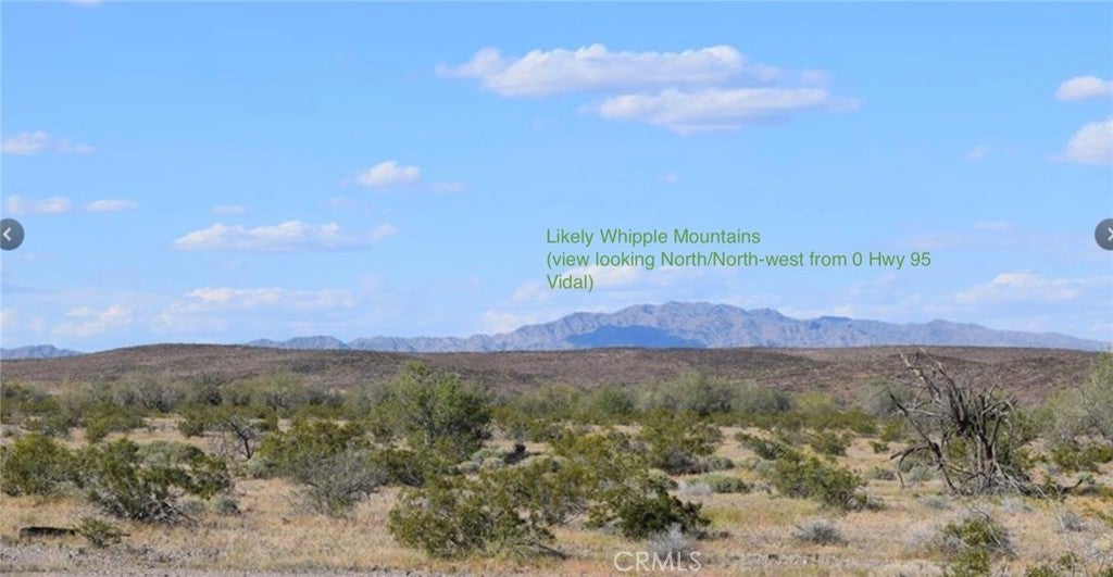 MASSIVE PRICE REDUCTION - FIRE SALE!!! SELLERS SAY "SELL!!!" Where else can you buy 300+ acres in California for under $100k??? VIDAL is where "WYATT EARP spent the last winters of his life, working claims of gold and copper he found nearby" (source: Wikipedia). You can actually WALK or RIDE to Wyatt Earp's Cottage where he and his wife lived, it practically borders this parcel!!! Talk about Wild West provenance. 317 acres, ZONED SD-RES within RC...UNINCORPORATED San Bernardino County. HWY 95 frontage on both sides of the parcel. Potential uses are almost endless with possibilities with plenty of flat usable terrain that can be subdivided into as small as 5 acres each if you wish to add multiple residential homes, agricultural greenhouses, fields of crops, legal HEMP CULTIVATION, campgrounds, churches, dream RANCH, or buy and hold. Multiple power lines running along the parcel. OR Live Off-Grid! Minutes to the Colorado River, Parker, Blythe, Lake Havasu and the CA/Arizona border as well as Vidal Junction for amenities such as fuel. Near the Whipple Mountains Wilderness and BLM land for exploration and hiking, photography and animal sitings. Build a storage facility for the out of town visitors that need to store their boats and RVs. Manufactured homes OK! Business opportunity is knocking...Don't let this one pass you by! Buyers and their agents are encouraged to contact San Bernardino County regarding zoning, allowed uses, and Southern California Edison for power. Minutes from local agriculture and Vidal Junction for fuel. Picturesque Southern California desert, serenity, and the best place to un-plug from everything! There is tenancy in common ownership for 50% of the 317 acres that will need to be assumed with new ownership. Buyers are encouraged to contact the County of San Bernardino Planning Dept regarding zoning within RC which has some conservation restrictions.